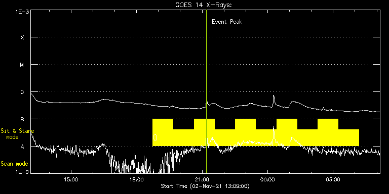 EIS Observation timeline overlay to GOES-Xray curve Code 1" 2" 40" 266" EIS Observations list for this event: STUDY ACRONYM ID DATE OBSERVED DESCRIPTION NOAA# TARGET 0 Flare266_Hunter01 | 79626 | 2021/11/02 18:44:33 | Flare study | | Flare TIMELINE ID DATE OBSERVED FITS FILE XCEN (+W/-E) YCEN (+N/-S) DUR ----------------------------------------------------------------------------------------------------------------- 79626 | 2021/11/02 18:44:33.000 | eis_l0_20211102_184433.fits.gz | 702.60 | -426.59 | 55m48s 79626 | 2021/11/02 19:41:13.000 | eis_l0_20211102_194113.fits.gz | 702.53 | -426.51 | 55m49s 79626 | 2021/11/02 20:37:54.000 | eis_l0_20211102_203754.fits.gz | 702.60 | -426.51 | 55m53s 79626 | 2021/11/02 21:34:38.000 | eis_l0_20211102_213438.fits.gz | 702.60 | -426.43 | 55m50s 79626 | 2021/11/02 22:31:19.000 | eis_l0_20211102_223119.fits.gz | 702.53 | -426.51 | 55m53s 79626 | 2021/11/02 23:28:04.000 | eis_l0_20211102_232804.fits.gz | 702.53 | -426.59 | 55m49s 79626 | 2021/11/03 00:24:45.000 | eis_l0_20211103_002445.fits.gz | 702.53 | -426.66 | 55m50s 79626 | 2021/11/03 01:21:26.000 | eis_l0_20211103_012126.fits.gz | 702.53 | -426.51 | 55m50s 79626 | 2021/11/03 02:18:07.000 | eis_l0_20211103_021807.fits.gz | 702.45 | -426.43 | 55m50s 79626 | 2021/11/03 03:14:48.000 | eis_l0_20211103_031448.fits.gz | 702.53 | -426.59 | 55m57s : Check study information : Download file : View thumbnails For this event, also check for: