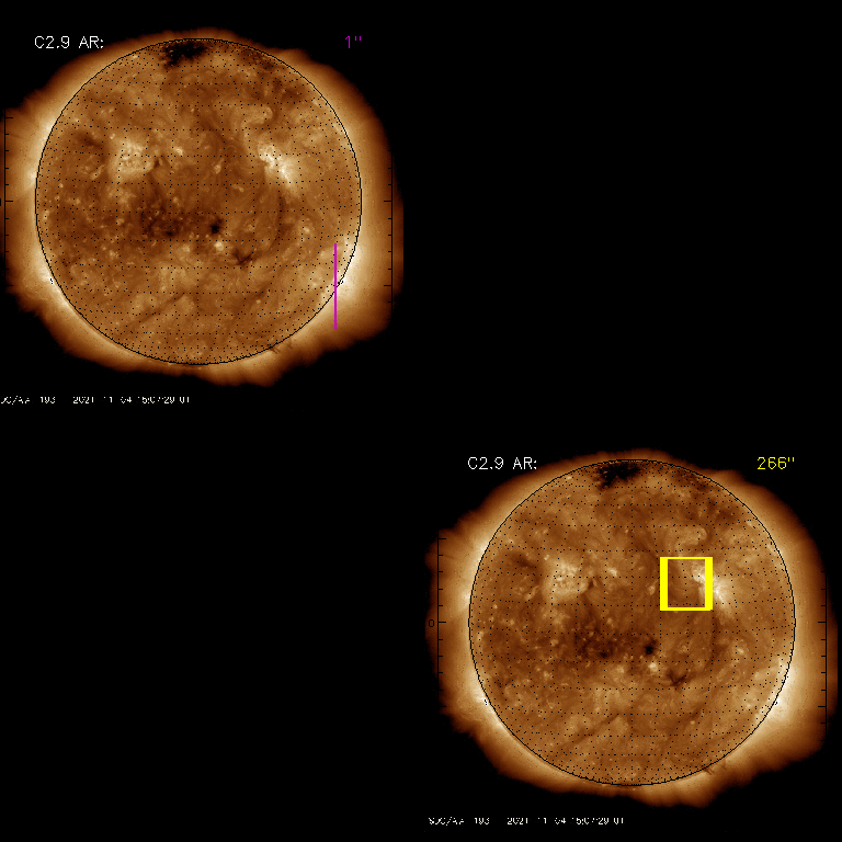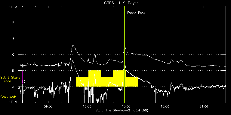 EIS Observation timeline overlay to GOES-Xray curve Code 1" 2" 40" 266" EIS Observations list for this event: STUDY ACRONYM ID DATE OBSERVED DESCRIPTION NOAA# TARGET 0 regcal077 | 79631 | 2021/11/04 07:00:10 | Flatfield, 2 exposures, led 80ms, full | | Engineering TIMELINE ID DATE OBSERVED FITS FILE XCEN (+W/-E) YCEN (+N/-S) DUR ----------------------------------------------------------------------------------------------------------------- 79631 | 2021/11/04 07:00:10.000 | eis_l0_20211104_070010.fits.gz | 814.49 | -510.51 | 4s 1 Flare266_Hunter01 | 79657 | 2021/11/04 11:09:14 | Flare study | | Flare TIMELINE ID DATE OBSERVED FITS FILE XCEN (+W/-E) YCEN (+N/-S) DUR ----------------------------------------------------------------------------------------------------------------- 79657 | 2021/11/04 11:09:14.000 | eis_l0_20211104_110914.fits.gz | 311.52 | 228.16 | 56m22s 79657 | 2021/11/04 12:06:28.000 | eis_l0_20211104_120628.fits.gz | 319.10 | 228.40 | 56m23s 79657 | 2021/11/04 13:03:43.000 | eis_l0_20211104_130343.fits.gz | 326.51 | 228.63 | 56m22s 79657 | 2021/11/04 14:00:57.000 | eis_l0_20211104_140057.fits.gz | 334.08 | 229.09 | 56m22s 79657 | 2021/11/04 14:58:12.000 | eis_l0_20211104_145812.fits.gz | 341.42 | 229.32 | 56m22s : Check study information : Download file : View thumbnails For this event, also check for:
