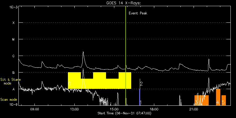 EIS Observation timeline overlay to GOES-Xray curve Code 1" 2" 40" 266" EIS Observations list for this event: STUDY ACRONYM ID DATE OBSERVED DESCRIPTION NOAA# TARGET 0 Flare266_Hunter01 | 79676 | 2021/11/06 11:31:15 | Flare study | | Flare TIMELINE ID DATE OBSERVED FITS FILE XCEN (+W/-E) YCEN (+N/-S) DUR ----------------------------------------------------------------------------------------------------------------- 79676 | 2021/11/06 11:31:15.000 | eis_l0_20211106_113115.fits.gz | 632.72 | 250.33 | 56m22s 79676 | 2021/11/06 12:28:29.000 | eis_l0_20211106_122829.fits.gz | 637.59 | 250.88 | 56m22s 79676 | 2021/11/06 13:25:43.000 | eis_l0_20211106_132543.fits.gz | 642.38 | 251.34 | 56m23s 79676 | 2021/11/06 14:22:58.000 | eis_l0_20211106_142258.fits.gz | 647.17 | 251.88 | 56m22s 79676 | 2021/11/06 15:20:13.000 | eis_l0_20211106_152013.fits.gz | 651.80 | 252.42 | 56m22s 1 PRY_slot_contextLITE | 79658 | 2021/11/06 16:53:28 | Pointing Monitoring | 2893 | Active Region TIMELINE ID DATE OBSERVED FITS FILE XCEN (+W/-E) YCEN (+N/-S) DUR ----------------------------------------------------------------------------------------------------------------- 79658 | 2021/11/06 16:53:28.000 | eis_l0_20211106_165328.fits.gz | -15.29 | -0.50 | 2m56s 2 XRT_synop_AIA | 79659 | 2021/11/06 16:56:43 | Pointing Monitoring | | Quiet Sun TIMELINE ID DATE OBSERVED FITS FILE XCEN (+W/-E) YCEN (+N/-S) DUR ----------------------------------------------------------------------------------------------------------------- 79659 | 2021/11/06 16:56:43.000 | eis_l0_20211106_165643.fits.gz | -132.49 | -0.58 | 10s 3 Atlas_60 | 79672 | 2021/11/06 21:04:50 | HOP428 (Solar Orbiter SPICE and EUI cr | | Quiet Sun TIMELINE ID DATE OBSERVED FITS FILE XCEN (+W/-E) YCEN (+N/-S) DUR ----------------------------------------------------------------------------------------------------------------- 79672 | 2021/11/06 21:04:50.000 | eis_l0_20211106_210450.fits.gz | -49.37 | -71.33 | 1h1m40s 4 fullccd_scan_m106 | 79669 | 2021/11/06 22:41:44 | HOP428 (Solar Orbiter SPICE and EUI cr | | Quiet Sun TIMELINE ID DATE OBSERVED FITS FILE XCEN (+W/-E) YCEN (+N/-S) DUR ----------------------------------------------------------------------------------------------------------------- 79669 | 2021/11/06 22:41:44.000 | eis_l0_20211106_224144.fits.gz | 54.36 | -71.25 | 17m55s 5 fullccd_scan_m106 | 79670 | 2021/11/06 23:07:14 | HOP428 (Solar Orbiter SPICE and EUI cr | | Quiet Sun TIMELINE ID DATE OBSERVED FITS FILE XCEN (+W/-E) YCEN (+N/-S) DUR ----------------------------------------------------------------------------------------------------------------- 79670 | 2021/11/06 23:07:14.000 | eis_l0_20211106_230714.fits.gz | -49.70 | -71.33 | 17m55s : Check study information : Download file : View thumbnails For this event, also check for: