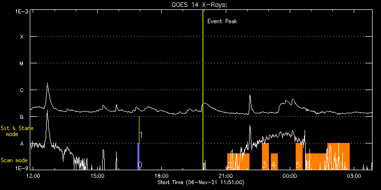 EIS Observation timeline overlay to GOES-Xray curve Code 1" 2" 40" 266" EIS Observations list for this event: STUDY ACRONYM ID DATE OBSERVED DESCRIPTION NOAA# TARGET 0 PRY_slot_contextLITE | 79658 | 2021/11/06 16:53:28 | Pointing Monitoring | 2893 | Active Region TIMELINE ID DATE OBSERVED FITS FILE XCEN (+W/-E) YCEN (+N/-S) DUR ----------------------------------------------------------------------------------------------------------------- 79658 | 2021/11/06 16:53:28.000 | eis_l0_20211106_165328.fits.gz | -15.29 | -0.50 | 2m56s 1 XRT_synop_AIA | 79659 | 2021/11/06 16:56:43 | Pointing Monitoring | | Quiet Sun TIMELINE ID DATE OBSERVED FITS FILE XCEN (+W/-E) YCEN (+N/-S) DUR ----------------------------------------------------------------------------------------------------------------- 79659 | 2021/11/06 16:56:43.000 | eis_l0_20211106_165643.fits.gz | -132.49 | -0.58 | 10s 2 Atlas_60 | 79672 | 2021/11/06 21:04:50 | HOP428 (Solar Orbiter SPICE and EUI cr | | Quiet Sun TIMELINE ID DATE OBSERVED FITS FILE XCEN (+W/-E) YCEN (+N/-S) DUR ----------------------------------------------------------------------------------------------------------------- 79672 | 2021/11/06 21:04:50.000 | eis_l0_20211106_210450.fits.gz | -49.37 | -71.33 | 1h1m40s 3 fullccd_scan_m106 | 79669 | 2021/11/06 22:41:44 | HOP428 (Solar Orbiter SPICE and EUI cr | | Quiet Sun TIMELINE ID DATE OBSERVED FITS FILE XCEN (+W/-E) YCEN (+N/-S) DUR ----------------------------------------------------------------------------------------------------------------- 79669 | 2021/11/06 22:41:44.000 | eis_l0_20211106_224144.fits.gz | 54.36 | -71.25 | 17m55s 4 fullccd_scan_m106 | 79670 | 2021/11/06 23:07:14 | HOP428 (Solar Orbiter SPICE and EUI cr | | Quiet Sun TIMELINE ID DATE OBSERVED FITS FILE XCEN (+W/-E) YCEN (+N/-S) DUR ----------------------------------------------------------------------------------------------------------------- 79670 | 2021/11/06 23:07:14.000 | eis_l0_20211106_230714.fits.gz | -49.70 | -71.33 | 17m55s 5 fullccd_scan_m106 | 79671 | 2021/11/07 00:16:14 | HOP428 (Solar Orbiter SPICE and EUI cr | | Quiet Sun TIMELINE ID DATE OBSERVED FITS FILE XCEN (+W/-E) YCEN (+N/-S) DUR ----------------------------------------------------------------------------------------------------------------- 79671 | 2021/11/07 00:16:14.000 | eis_l0_20211107_001614.fits.gz | -154.75 | -71.33 | 17m55s 6 Large_CH_Map | 79666 | 2021/11/07 00:43:14 | HOP393 - Cycle 24/25 Equatorial Transi | | Quiet Sun TIMELINE ID DATE OBSERVED FITS FILE XCEN (+W/-E) YCEN (+N/-S) DUR ----------------------------------------------------------------------------------------------------------------- 79666 | 2021/11/07 00:43:14.000 | eis_l0_20211107_004314.fits.gz | -26.91 | -64.60 | 1h1m54s 79666 | 2021/11/07 01:45:13.000 | eis_l0_20211107_014513.fits.gz | -27.06 | -64.30 | 1h1m53s : Check study information : Download file : View thumbnails For this event, also check for: