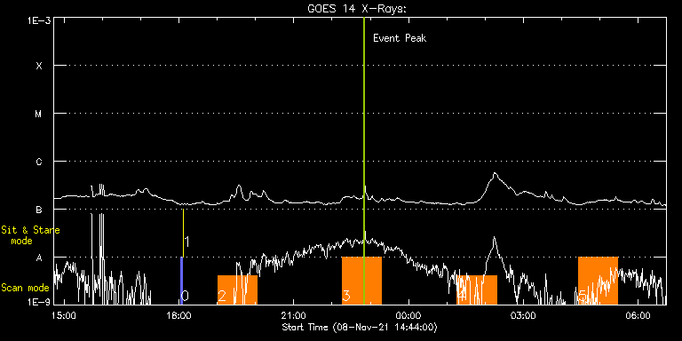 EIS Observation timeline overlay to GOES-Xray curve Code 1" 2" 40" 266" EIS Observations list for this event: STUDY ACRONYM ID DATE OBSERVED DESCRIPTION NOAA# TARGET 0 PRY_slot_contextLITE | 79664 | 2021/11/08 18:03:20 | Pointing Monitoring | | Active Region TIMELINE ID DATE OBSERVED FITS FILE XCEN (+W/-E) YCEN (+N/-S) DUR ----------------------------------------------------------------------------------------------------------------- 79664 | 2021/11/08 18:03:20.000 | eis_l0_20211108_180320.fits.gz | -15.29 | -0.58 | 2m57s 1 XRT_synop_AIA | 79665 | 2021/11/08 18:06:35 | Pointing Monitoring | | Quiet Sun TIMELINE ID DATE OBSERVED FITS FILE XCEN (+W/-E) YCEN (+N/-S) DUR ----------------------------------------------------------------------------------------------------------------- 79665 | 2021/11/08 18:06:35.000 | eis_l0_20211108_180635.fits.gz | -132.49 | -0.42 | 10s 2 HPW021VEL260x512v2 | 79683 | 2021/11/08 19:01:20 | Active Region Studies | 2893 | Active Region TIMELINE ID DATE OBSERVED FITS FILE XCEN (+W/-E) YCEN (+N/-S) DUR ----------------------------------------------------------------------------------------------------------------- 79683 | 2021/11/08 19:01:20.000 | eis_l0_20211108_190120.fits.gz | 455.96 | 215.42 | 1h0m45s 3 Large_CH_Map | 79667 | 2021/11/08 22:15:41 | HOP336 North - Cycle 25 Bright Points | | Quiet Sun TIMELINE ID DATE OBSERVED FITS FILE XCEN (+W/-E) YCEN (+N/-S) DUR ----------------------------------------------------------------------------------------------------------------- 79667 | 2021/11/08 22:15:41.000 | eis_l0_20211108_221541.fits.gz | -26.99 | 505.41 | 1h1m53s 4 Large_CH_Map | 79668 | 2021/11/09 01:15:40 | HOP336 South - Cycle 25 Bright Points | | Quiet Sun TIMELINE ID DATE OBSERVED FITS FILE XCEN (+W/-E) YCEN (+N/-S) DUR ----------------------------------------------------------------------------------------------------------------- 79668 | 2021/11/09 01:15:40.000 | eis_l0_20211109_011540.fits.gz | -27.14 | -670.61 | 1h1m54s 5 HPW021VEL260x512v2 | 79684 | 2021/11/09 04:26:10 | Active Region Studies | | Active Region TIMELINE ID DATE OBSERVED FITS FILE XCEN (+W/-E) YCEN (+N/-S) DUR ----------------------------------------------------------------------------------------------------------------- 79684 | 2021/11/09 04:26:10.000 | eis_l0_20211109_042610.fits.gz | 526.03 | 219.05 | 1h0m44s : Check study information : Download file : View thumbnails For this event, also check for: