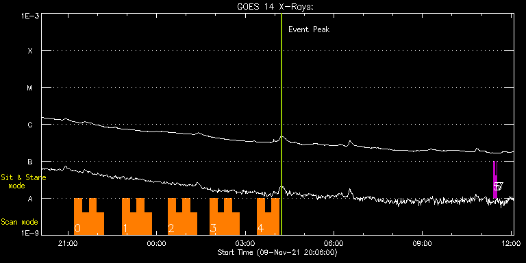 EIS Observation timeline overlay to GOES-Xray curve Code 1" 2" 40" 266" EIS Observations list for this event: STUDY ACRONYM ID DATE OBSERVED DESCRIPTION NOAA# TARGET 0 ar_evolution | 79698 | 2021/11/09 21:13:14 | Active Region Evolution Study | | Active Region TIMELINE ID DATE OBSERVED FITS FILE XCEN (+W/-E) YCEN (+N/-S) DUR ----------------------------------------------------------------------------------------------------------------- 79698 | 2021/11/09 21:13:14.000 | eis_l0_20211109_211314.fits.gz | -309.48 | -499.20 | 14m46s 79698 | 2021/11/09 21:28:03.000 | eis_l0_20211109_212803.fits.gz | -307.62 | -499.43 | 14m47s 79698 | 2021/11/09 21:42:53.000 | eis_l0_20211109_214253.fits.gz | -305.77 | -499.43 | 14m48s 79698 | 2021/11/09 21:57:44.000 | eis_l0_20211109_215744.fits.gz | -303.84 | -499.43 | 14m47s 1 ar_evolution | 79720 | 2021/11/09 22:50:14 | Active Region Evolution Study | | Active Region TIMELINE ID DATE OBSERVED FITS FILE XCEN (+W/-E) YCEN (+N/-S) DUR ----------------------------------------------------------------------------------------------------------------- 79720 | 2021/11/09 22:50:14.000 | eis_l0_20211109_225014.fits.gz | -297.19 | -499.51 | 14m47s 79720 | 2021/11/09 23:05:04.000 | eis_l0_20211109_230504.fits.gz | -295.34 | -499.43 | 14m47s 79720 | 2021/11/09 23:19:54.000 | eis_l0_20211109_231954.fits.gz | -293.41 | -499.43 | 14m47s 79720 | 2021/11/09 23:34:44.000 | eis_l0_20211109_233444.fits.gz | -291.48 | -499.59 | 14m47s 2 ar_evolution | 79700 | 2021/11/10 00:23:14 | Active Region Evolution Study | | Active Region TIMELINE ID DATE OBSERVED FITS FILE XCEN (+W/-E) YCEN (+N/-S) DUR ----------------------------------------------------------------------------------------------------------------- 79700 | 2021/11/10 00:23:14.000 | eis_l0_20211110_002314.fits.gz | -285.30 | -499.59 | 14m47s 79700 | 2021/11/10 00:38:03.000 | eis_l0_20211110_003803.fits.gz | -283.29 | -499.66 | 14m47s 79700 | 2021/11/10 00:52:53.000 | eis_l0_20211110_005253.fits.gz | -281.51 | -499.66 | 14m47s 79700 | 2021/11/10 01:07:43.000 | eis_l0_20211110_010743.fits.gz | -279.58 | -499.66 | 14m47s 3 ar_evolution | 79701 | 2021/11/10 01:48:14 | Active Region Evolution Study | | Active Region TIMELINE ID DATE OBSERVED FITS FILE XCEN (+W/-E) YCEN (+N/-S) DUR ----------------------------------------------------------------------------------------------------------------- 79701 | 2021/11/10 01:48:14.000 | eis_l0_20211110_014814.fits.gz | -274.33 | -499.59 | 14m46s 79701 | 2021/11/10 02:03:03.000 | eis_l0_20211110_020303.fits.gz | -272.63 | -499.66 | 14m47s 79701 | 2021/11/10 02:17:52.000 | eis_l0_20211110_021752.fits.gz | -270.62 | -499.89 | 14m47s 79701 | 2021/11/10 02:32:42.000 | eis_l0_20211110_023242.fits.gz | -268.69 | -499.74 | 14m47s 4 ar_evolution | 79702 | 2021/11/10 03:24:13 | Active Region Evolution Study | | Active Region TIMELINE ID DATE OBSERVED FITS FILE XCEN (+W/-E) YCEN (+N/-S) DUR ----------------------------------------------------------------------------------------------------------------- 79702 | 2021/11/10 03:24:13.000 | eis_l0_20211110_032413.fits.gz | -262.12 | -499.97 | 14m48s 79702 | 2021/11/10 03:39:04.000 | eis_l0_20211110_033904.fits.gz | -260.19 | -499.82 | 14m46s 79702 | 2021/11/10 03:53:53.000 | eis_l0_20211110_035353.fits.gz | -258.34 | -499.97 | 14m47s 5 regcal071 | 79707 | 2021/11/10 11:24:12 | Dark exposures, CCD bottom rows (100s | | Engineering TIMELINE ID DATE OBSERVED FITS FILE XCEN (+W/-E) YCEN (+N/-S) DUR ----------------------------------------------------------------------------------------------------------------- 79707 | 2021/11/10 11:24:12.000 | eis_l0_20211110_112412.fits.gz | -180.08 | -839.28 | 3m21s 6 regcal072 | 79708 | 2021/11/10 11:28:00 | Dark exposures, top CCD rows (100s exp | | Engineering TIMELINE ID DATE OBSERVED FITS FILE XCEN (+W/-E) YCEN (+N/-S) DUR ----------------------------------------------------------------------------------------------------------------- 79708 | 2021/11/10 11:28:00.000 | eis_l0_20211110_112800.fits.gz | -179.46 | -328.36 | 3m22s 7 regcal070 | 79714 | 2021/11/10 11:31:49 | Flat field with overscan pixels (50*8) | | Engineering TIMELINE ID DATE OBSERVED FITS FILE XCEN (+W/-E) YCEN (+N/-S) DUR ----------------------------------------------------------------------------------------------------------------- 79714 | 2021/11/10 11:31:49.000 | eis_l0_20211110_113149.fits.gz | -179.15 | -328.05 | 3s : Check study information : Download file : View thumbnails For this event, also check for:
