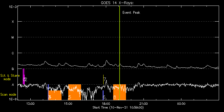 EIS Observation timeline overlay to GOES-Xray curve