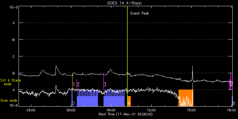 EIS Observation timeline overlay to GOES-Xray curve Code 1" 2" 40" 266" EIS Observations list for this event: STUDY ACRONYM ID DATE OBSERVED DESCRIPTION NOAA# TARGET 0 PRY_slot_contextLITE | 79794 | 2021/11/17 06:02:20 | Change of EIS pointing and alignment w | | Active Region TIMELINE ID DATE OBSERVED FITS FILE XCEN (+W/-E) YCEN (+N/-S) DUR ----------------------------------------------------------------------------------------------------------------- 79794 | 2021/11/17 06:02:20.000 | eis_l0_20211117_060220.fits.gz | -15.37 | -0.50 | 2m56s 1 XRT_synop_AIA | 79795 | 2021/11/17 06:05:34 | Change of EIS pointing and alignment w | | Quiet Sun TIMELINE ID DATE OBSERVED FITS FILE XCEN (+W/-E) YCEN (+N/-S) DUR ----------------------------------------------------------------------------------------------------------------- 79795 | 2021/11/17 06:05:34.000 | eis_l0_20211117_060534.fits.gz | -132.57 | -0.65 | 10s 2 Alignment_modify_v2 | 79790 | 2021/11/17 06:25:34 | Co-alignment progran North | | Quiet Sun TIMELINE ID DATE OBSERVED FITS FILE XCEN (+W/-E) YCEN (+N/-S) DUR ----------------------------------------------------------------------------------------------------------------- 79790 | 2021/11/17 06:25:34.000 | eis_l0_20211117_062534.fits.gz | -0.07 | 944.41 | 1m 79790 | 2021/11/17 06:27:00.000 | eis_l0_20211117_062700.fits.gz | -9.47 | 944.41 | 2m33s 79790 | 2021/11/17 06:30:07.000 | eis_l0_20211117_063007.fits.gz | -9.47 | 944.25 | 2m34s 79790 | 2021/11/17 06:33:14.000 | eis_l0_20211117_063314.fits.gz | -9.47 | 944.41 | 2m34s 79790 | 2021/11/17 06:36:22.000 | eis_l0_20211117_063622.fits.gz | -9.47 | 944.33 | 2m34s 79790 | 2021/11/17 06:39:30.000 | eis_l0_20211117_063930.fits.gz | -9.47 | 944.41 | 2m34s 79790 | 2021/11/17 06:42:37.000 | eis_l0_20211117_064237.fits.gz | -9.47 | 944.33 | 2m34s 79790 | 2021/11/17 06:45:45.000 | eis_l0_20211117_064545.fits.gz | -9.55 | 944.33 | 2m34s 79790 | 2021/11/17 06:48:52.000 | eis_l0_20211117_064852.fits.gz | -9.47 | 944.33 | 2m34s 79790 | 2021/11/17 06:52:00.000 | eis_l0_20211117_065200.fits.gz | -9.47 | 944.41 | 2m34s 79790 | 2021/11/17 06:55:07.000 | eis_l0_20211117_065507.fits.gz | -9.55 | 944.41 | 2m34s 79790 | 2021/11/17 06:58:15.000 | eis_l0_20211117_065815.fits.gz | -9.47 | 944.33 | 2m34s 79790 | 2021/11/17 07:01:22.000 | eis_l0_20211117_070122.fits.gz | -9.55 | 944.33 | 2m34s 79790 | 2021/11/17 07:04:30.000 | eis_l0_20211117_070430.fits.gz | -9.63 | 944.41 | 2m34s 79790 | 2021/11/17 07:07:37.000 | eis_l0_20211117_070737.fits.gz | -9.47 | 944.41 | 2m34s 79790 | 2021/11/17 07:10:45.000 | eis_l0_20211117_071045.fits.gz | -9.47 | 944.33 | 2m34s 79790 | 2021/11/17 07:13:53.000 | eis_l0_20211117_071353.fits.gz | -9.47 | 944.25 | 2m34s 79790 | 2021/11/17 07:17:00.000 | eis_l0_20211117_071700.fits.gz | -9.63 | 944.33 | 2m34s 79790 | 2021/11/17 07:20:08.000 | eis_l0_20211117_072008.fits.gz | -9.55 | 944.33 | 2m34s 79790 | 2021/11/17 07:23:15.000 | eis_l0_20211117_072315.fits.gz | -9.55 | 944.41 | 2m34s 79790 | 2021/11/17 07:26:23.000 | eis_l0_20211117_072623.fits.gz | -9.47 | 944.41 | 2m34s 79790 | 2021/11/17 07:29:31.000 | eis_l0_20211117_072931.fits.gz | -9.55 | 944.48 | 2m33s 79790 | 2021/11/17 07:32:38.000 | eis_l0_20211117_073238.fits.gz | -9.47 | 944.33 | 2m34s 79790 | 2021/11/17 07:35:45.000 | eis_l0_20211117_073545.fits.gz | -9.47 | 944.41 | 2m34s 79790 | 2021/11/17 07:38:53.000 | eis_l0_20211117_073853.fits.gz | -9.55 | 944.33 | 2m34s 79790 | 2021/11/17 07:42:00.000 | eis_l0_20211117_074200.fits.gz | -9.47 | 944.48 | 2m34s 79790 | 2021/11/17 07:45:08.000 | eis_l0_20211117_074508.fits.gz | -9.55 | 944.33 | 2m34s 79790 | 2021/11/17 07:48:15.000 | eis_l0_20211117_074815.fits.gz | -9.47 | 944.48 | 2m34s 79790 | 2021/11/17 07:51:23.000 | eis_l0_20211117_075123.fits.gz | -9.55 | 944.25 | 2m34s 79790 | 2021/11/17 07:54:30.000 | eis_l0_20211117_075430.fits.gz | -9.55 | 944.41 | 2m34s 79790 | 2021/11/17 07:57:38.000 | eis_l0_20211117_075738.fits.gz | -9.55 | 944.41 | 2m34s 3 Alignment_modify_v2 | 79791 | 2021/11/17 08:25:20 | Coalignment program East | | Quiet Sun TIMELINE ID DATE OBSERVED FITS FILE XCEN (+W/-E) YCEN (+N/-S) DUR ----------------------------------------------------------------------------------------------------------------- 79791 | 2021/11/17 08:25:20.000 | eis_l0_20211117_082520.fits.gz | -9829.53 | -9963.20 | 1m 79791 | 2021/11/17 08:26:46.000 | eis_l0_20211117_082646.fits.gz | -9868.96 | -9963.20 | 2m33s 79791 | 2021/11/17 08:29:53.000 | eis_l0_20211117_082953.fits.gz | -9868.96 | -9963.20 | 2m34s 79791 | 2021/11/17 08:33:01.000 | eis_l0_20211117_083301.fits.gz | -9868.96 | -9963.20 | 2m33s 79791 | 2021/11/17 08:36:08.000 | eis_l0_20211117_083608.fits.gz | -9868.96 | -9963.20 | 2m34s 79791 | 2021/11/17 08:39:16.000 | eis_l0_20211117_083916.fits.gz | -9868.96 | -9963.20 | 2m34s 79791 | 2021/11/17 08:42:23.000 | eis_l0_20211117_084223.fits.gz | -9868.96 | -9963.20 | 2m34s 79791 | 2021/11/17 08:45:31.000 | eis_l0_20211117_084531.fits.gz | -9868.96 | -9963.20 | 2m34s 79791 | 2021/11/17 08:48:38.000 | eis_l0_20211117_084838.fits.gz | -9868.96 | -9963.20 | 2m34s 79791 | 2021/11/17 08:51:46.000 | eis_l0_20211117_085146.fits.gz | -9868.96 | -9963.20 | 2m33s 79791 | 2021/11/17 08:54:53.000 | eis_l0_20211117_085453.fits.gz | -9868.96 | -9963.20 | 2m34s 79791 | 2021/11/17 08:58:01.000 | eis_l0_20211117_085801.fits.gz | -9868.96 | -9963.20 | 2m34s 79791 | 2021/11/17 09:01:08.000 | eis_l0_20211117_090108.fits.gz | -9868.96 | -9963.20 | 2m34s 79791 | 2021/11/17 09:04:16.000 | eis_l0_20211117_090416.fits.gz | -9868.96 | -9963.20 | 2m34s 79791 | 2021/11/17 09:07:23.000 | eis_l0_20211117_090723.fits.gz | -9868.96 | -9963.20 | 2m34s 79791 | 2021/11/17 09:10:31.000 | eis_l0_20211117_091031.fits.gz | -9868.96 | -9963.20 | 2m34s 79791 | 2021/11/17 09:13:38.000 | eis_l0_20211117_091338.fits.gz | -9868.96 | -9963.20 | 2m34s 79791 | 2021/11/17 09:16:46.000 | eis_l0_20211117_091646.fits.gz | -9868.96 | -9963.20 | 2m34s 79791 | 2021/11/17 09:19:53.000 | eis_l0