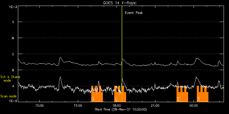 EIS Observation timeline overlay to GOES-Xray curve Code 1" 2" 40" 266" EIS Observations list for this event: STUDY ACRONYM ID DATE OBSERVED DESCRIPTION NOAA# TARGET 0 FlareResponse01 | 79961 | 2021/11/28 16:02:17 | Flare study | | Flare TIMELINE ID DATE OBSERVED FITS FILE XCEN (+W/-E) YCEN (+N/-S) DUR ----------------------------------------------------------------------------------------------------------------- 79961 | 2021/11/28 16:02:17.000 | eis_l0_20211128_160217.fits.gz | 882.26 | 277.28 | 8m52s 79961 | 2021/11/28 16:11:12.000 | eis_l0_20211128_161112.fits.gz | 882.19 | 277.36 | 8m52s 79961 | 2021/11/28 16:20:07.000 | eis_l0_20211128_162007.fits.gz | 882.26 | 277.36 | 8m52s 79961 | 2021/11/28 16:29:02.000 | eis_l0_20211128_162902.fits.gz | 882.26 | 277.28 | 8m52s 79961 | 2021/11/28 16:37:57.000 | eis_l0_20211128_163757.fits.gz | 882.19 | 277.51 | 8m52s 79961 | 2021/11/28 16:46:53.000 | eis_l0_20211128_164653.fits.gz | 882.26 | 277.36 | 8m52s 1 FlareResponse01 | 79962 | 2021/11/28 17:49:38 | Flare study | | Flare TIMELINE ID DATE OBSERVED FITS FILE XCEN (+W/-E) YCEN (+N/-S) DUR ----------------------------------------------------------------------------------------------------------------- 79962 | 2021/11/28 17:49:38.000 | eis_l0_20211128_174938.fits.gz | 882.19 | 277.36 | 8m51s 79962 | 2021/11/28 17:58:32.000 | eis_l0_20211128_175832.fits.gz | 882.19 | 277.43 | 8m52s 79962 | 2021/11/28 18:07:27.000 | eis_l0_20211128_180727.fits.gz | 882.19 | 277.43 | 8m52s 79962 | 2021/11/28 18:16:23.000 | eis_l0_20211128_181623.fits.gz | 882.26 | 277.43 | 8m52s 79962 | 2021/11/28 18:25:18.000 | eis_l0_20211128_182518.fits.gz | 882.26 | 277.36 | 8m52s 79962 | 2021/11/28 18:34:13.000 | eis_l0_20211128_183413.fits.gz | 882.19 | 277.36 | 8m52s 2 FlareResponse01 | 79963 | 2021/11/28 22:40:10 | Flare study | | Flare TIMELINE ID DATE OBSERVED FITS FILE XCEN (+W/-E) YCEN (+N/-S) DUR ----------------------------------------------------------------------------------------------------------------- 79963 | 2021/11/28 22:40:10.000 | eis_l0_20211128_224010.fits.gz | 882.01 | 277.36 | 8m52s 79963 | 2021/11/28 22:49:05.000 | eis_l0_20211128_224905.fits.gz | 882.01 | 277.28 | 8m52s 79963 | 2021/11/28 22:58:00.000 | eis_l0_20211128_225800.fits.gz | 882.01 | 277.36 | 8m52s 79963 | 2021/11/28 23:06:55.000 | eis_l0_20211128_230655.fits.gz | 882.09 | 277.28 | 8m52s 79963 | 2021/11/28 23:15:50.000 | eis_l0_20211128_231550.fits.gz | 881.94 | 277.43 | 8m52s 79963 | 2021/11/28 23:24:45.000 | eis_l0_20211128_232445.fits.gz | 881.94 | 277.36 | 8m52s 3 FlareResponse01 | 79964 | 2021/11/29 00:14:10 | Flare study | | Flare TIMELINE ID DATE OBSERVED FITS FILE XCEN (+W/-E) YCEN (+N/-S) DUR ----------------------------------------------------------------------------------------------------------------- 79964 | 2021/11/29 00:14:10.000 | eis_l0_20211129_001410.fits.gz | 882.01 | 277.43 | 8m52s 79964 | 2021/11/29 00:23:05.000 | eis_l0_20211129_002305.fits.gz | 881.94 | 277.36 | 8m52s 79964 | 2021/11/29 00:32:01.000 | eis_l0_20211129_003201.fits.gz | 882.01 | 277.36 | 8m52s 79964 | 2021/11/29 00:40:56.000 | eis_l0_20211129_004056.fits.gz | 882.01 | 277.43 | 8m52s 79964 | 2021/11/29 00:49:51.000 | eis_l0_20211129_004951.fits.gz | 882.01 | 277.36 | 8m52s 79964 | 2021/11/29 00:58:46.000 | eis_l0_20211129_005846.fits.gz | 882.09 | 277.36 | 8m52s : Check study information : Download file : View thumbnails For this event, also check for: