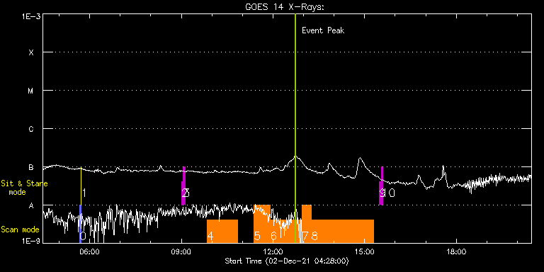 EIS Observation timeline overlay to GOES-Xray curve Code 1" 2" 40" 266" EIS Observations list for this event: STUDY ACRONYM ID DATE OBSERVED DESCRIPTION NOAA# TARGET 0 PRY_slot_contextLITE | 79970 | 2021/12/02 05:40:19 | Pointing Monitoring | | Active Region TIMELINE ID DATE OBSERVED FITS FILE XCEN (+W/-E) YCEN (+N/-S) DUR ----------------------------------------------------------------------------------------------------------------- 79970 | 2021/12/02 05:40:19.000 | eis_l0_20211202_054019.fits.gz | -15.29 | -0.35 | 2m56s 1 XRT_synop_AIA | 79971 | 2021/12/02 05:43:34 | Pointing Monitoring | | Quiet Sun TIMELINE ID DATE OBSERVED FITS FILE XCEN (+W/-E) YCEN (+N/-S) DUR ----------------------------------------------------------------------------------------------------------------- 79971 | 2021/12/02 05:43:34.000 | eis_l0_20211202_054334.fits.gz | -132.64 | -0.42 | 10s 2 regcal071 | 80043 | 2021/12/02 09:00:11 | Dark exposures, CCD bottom rows (100s | | Engineering TIMELINE ID DATE OBSERVED FITS FILE XCEN (+W/-E) YCEN (+N/-S) DUR ----------------------------------------------------------------------------------------------------------------- 80043 | 2021/12/02 09:00:11.000 | eis_l0_20211202_090011.fits.gz | 792.47 | -745.58 | 3m22s 3 regcal072 | 80044 | 2021/12/02 09:04:00 | Dark exposures, top CCD rows (100s exp | | Engineering TIMELINE ID DATE OBSERVED FITS FILE XCEN (+W/-E) YCEN (+N/-S) DUR ----------------------------------------------------------------------------------------------------------------- 80044 | 2021/12/02 09:04:00.000 | eis_l0_20211202_090400.fits.gz | 792.63 | -234.43 | 3m21s 4 HPW021VEL260x512v2 | 80002 | 2021/12/02 09:50:19 | Active Region Studies | 2898 | Active Region TIMELINE ID DATE OBSERVED FITS FILE XCEN (+W/-E) YCEN (+N/-S) DUR ----------------------------------------------------------------------------------------------------------------- 80002 | 2021/12/02 09:50:19.000 | eis_l0_20211202_095019.fits.gz | 772.36 | -403.12 | 1h0m45s 5 Atlas_30 | 79989 | 2021/12/02 11:22:40 | AR Studies + EIS test run | | Quiet Sun TIMELINE ID DATE OBSERVED FITS FILE XCEN (+W/-E) YCEN (+N/-S) DUR ----------------------------------------------------------------------------------------------------------------- 79989 | 2021/12/02 11:22:40.000 | eis_l0_20211202_112240.fits.gz | 778.27 | -403.12 | 31m38s 6 Atlas_60 | 79990 | 2021/12/02 11:54:50 | AR Studies + EIS test run | | Quiet Sun TIMELINE ID DATE OBSERVED FITS FILE XCEN (+W/-E) YCEN (+N/-S) DUR ----------------------------------------------------------------------------------------------------------------- 79990 | 2021/12/02 11:54:50.000 | eis_l0_20211202_115450.fits.gz | 780.04 | -402.96 | 1h1m40s 7 fullccd_scan_m106 | 79991 | 2021/12/02 12:57:01 | AR Studies + EIS test run | | Quiet Sun TIMELINE ID DATE OBSERVED FITS FILE XCEN (+W/-E) YCEN (+N/-S) DUR ----------------------------------------------------------------------------------------------------------------- 79991 | 2021/12/02 12:57:01.000 | eis_l0_20211202_125701.fits.gz | 782.35 | -402.73 | 17m55s 8 Atlas_120 | 79992 | 2021/12/02 13:15:28 | AR Studies + EIS test run | | Quiet Sun TIMELINE ID DATE OBSERVED FITS FILE XCEN (+W/-E) YCEN (+N/-S) DUR ----------------------------------------------------------------------------------------------------------------- 79992 | 2021/12/02 13:15:28.000 | eis_l0_20211202_131528.fits.gz | 784.52 | -402.81 | 2h1m40s 9 regcal071 | 80035 | 2021/12/02 15:29:11 | Dark exposures, CCD bottom rows (100s | | Engineering TIMELINE ID DATE OBSERVED FITS FILE XCEN (+W/-E) YCEN (+N/-S) DUR ----------------------------------------------------------------------------------------------------------------- 80035 | 2021/12/02 15:29:11.000 | eis_l0_20211202_152911.fits.gz | 814.26 | -744.58 | 3m22s 10 regcal072 | 80036 | 2021/12/02 15:33:00 | Dark exposures, top CCD rows (100s exp | | Engineering TIMELINE ID DATE OBSERVED FITS FILE XCEN (+W/-E) YCEN (+N/-S) DUR ----------------------------------------------------------------------------------------------------------------- 80036 | 2021/12/02 15:33:00.000 | eis_l0_20211202_153300.fits.gz | 814.49 | -233.50 | 3m21s : Check study information : Download file : View thumbnails For this event, also check for: