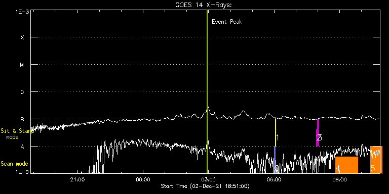 EIS Observation timeline overlay to GOES-Xray curve Code 1" 2" 40" 266" EIS Observations list for this event: STUDY ACRONYM ID DATE OBSERVED DESCRIPTION NOAA# TARGET 0 PRY_slot_contextLITE | 79972 | 2021/12/03 06:00:19 | Pointing Monitoring | | Active Region TIMELINE ID DATE OBSERVED FITS FILE XCEN (+W/-E) YCEN (+N/-S) DUR ----------------------------------------------------------------------------------------------------------------- 79972 | 2021/12/03 06:00:19.000 | eis_l0_20211203_060019.fits.gz | -15.29 | -0.42 | 2m56s 1 XRT_synop_AIA | 79973 | 2021/12/03 06:03:33 | Pointing Monitoring | | Quiet Sun TIMELINE ID DATE OBSERVED FITS FILE XCEN (+W/-E) YCEN (+N/-S) DUR ----------------------------------------------------------------------------------------------------------------- 79973 | 2021/12/03 06:03:33.000 | eis_l0_20211203_060333.fits.gz | -132.57 | -0.42 | 10s 2 regcal071 | 80037 | 2021/12/03 07:55:10 | Dark exposures, CCD bottom rows (100s | | Engineering TIMELINE ID DATE OBSERVED FITS FILE XCEN (+W/-E) YCEN (+N/-S) DUR ----------------------------------------------------------------------------------------------------------------- 80037 | 2021/12/03 07:55:10.000 | eis_l0_20211203_075510.fits.gz | -131.49 | -89.59 | 3m22s 3 regcal072 | 80038 | 2021/12/03 07:58:59 | Dark exposures, top CCD rows (100s exp | | Engineering TIMELINE ID DATE OBSERVED FITS FILE XCEN (+W/-E) YCEN (+N/-S) DUR ----------------------------------------------------------------------------------------------------------------- 80038 | 2021/12/03 07:58:59.000 | eis_l0_20211203_075859.fits.gz | -130.95 | 421.33 | 3m22s 4 HPW021VEL260x512v2 | 80030 | 2021/12/03 08:48:48 | Active Region Studies | | Active Region TIMELINE ID DATE OBSERVED FITS FILE XCEN (+W/-E) YCEN (+N/-S) DUR ----------------------------------------------------------------------------------------------------------------- 80030 | 2021/12/03 08:48:48.000 | eis_l0_20211203_084848.fits.gz | -146.33 | 252.56 | 1h0m45s 5 Atlas_30 | 80024 | 2021/12/03 10:24:42 | AR Studies + EIS test run | | Quiet Sun TIMELINE ID DATE OBSERVED FITS FILE XCEN (+W/-E) YCEN (+N/-S) DUR ----------------------------------------------------------------------------------------------------------------- 80024 | 2021/12/03 10:24:42.000 | eis_l0_20211203_102442.fits.gz | -131.63 | 252.56 | 31m39s : Check study information : Download file : View thumbnails For this event, also check for:
