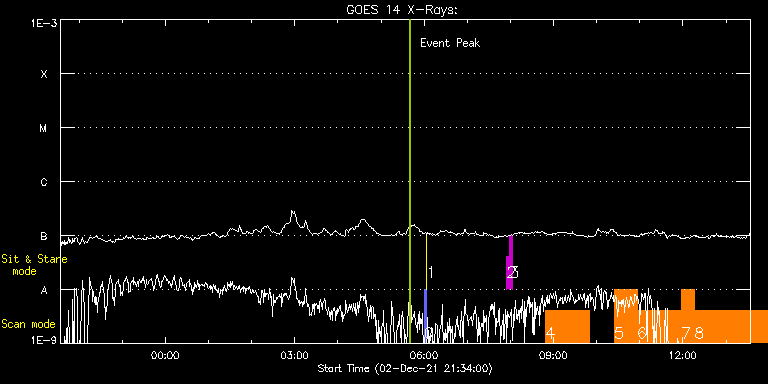 EIS Observation timeline overlay to GOES-Xray curve Code 1" 2" 40" 266" EIS Observations list for this event: STUDY ACRONYM ID DATE OBSERVED DESCRIPTION NOAA# TARGET 0 PRY_slot_contextLITE | 79972 | 2021/12/03 06:00:19 | Pointing Monitoring | | Active Region TIMELINE ID DATE OBSERVED FITS FILE XCEN (+W/-E) YCEN (+N/-S) DUR ----------------------------------------------------------------------------------------------------------------- 79972 | 2021/12/03 06:00:19.000 | eis_l0_20211203_060019.fits.gz | -15.29 | -0.42 | 2m56s 1 XRT_synop_AIA | 79973 | 2021/12/03 06:03:33 | Pointing Monitoring | | Quiet Sun TIMELINE ID DATE OBSERVED FITS FILE XCEN (+W/-E) YCEN (+N/-S) DUR ----------------------------------------------------------------------------------------------------------------- 79973 | 2021/12/03 06:03:33.000 | eis_l0_20211203_060333.fits.gz | -132.57 | -0.42 | 10s 2 regcal071 | 80037 | 2021/12/03 07:55:10 | Dark exposures, CCD bottom rows (100s | | Engineering TIMELINE ID DATE OBSERVED FITS FILE XCEN (+W/-E) YCEN (+N/-S) DUR ----------------------------------------------------------------------------------------------------------------- 80037 | 2021/12/03 07:55:10.000 | eis_l0_20211203_075510.fits.gz | -131.49 | -89.59 | 3m22s 3 regcal072 | 80038 | 2021/12/03 07:58:59 | Dark exposures, top CCD rows (100s exp | | Engineering TIMELINE ID DATE OBSERVED FITS FILE XCEN (+W/-E) YCEN (+N/-S) DUR ----------------------------------------------------------------------------------------------------------------- 80038 | 2021/12/03 07:58:59.000 | eis_l0_20211203_075859.fits.gz | -130.95 | 421.33 | 3m22s 4 HPW021VEL260x512v2 | 80030 | 2021/12/03 08:48:48 | Active Region Studies | | Active Region TIMELINE ID DATE OBSERVED FITS FILE XCEN (+W/-E) YCEN (+N/-S) DUR ----------------------------------------------------------------------------------------------------------------- 80030 | 2021/12/03 08:48:48.000 | eis_l0_20211203_084848.fits.gz | -146.33 | 252.56 | 1h0m45s 5 Atlas_30 | 80024 | 2021/12/03 10:24:42 | AR Studies + EIS test run | | Quiet Sun TIMELINE ID DATE OBSERVED FITS FILE XCEN (+W/-E) YCEN (+N/-S) DUR ----------------------------------------------------------------------------------------------------------------- 80024 | 2021/12/03 10:24:42.000 | eis_l0_20211203_102442.fits.gz | -131.63 | 252.56 | 31m39s 6 Atlas_60 | 80025 | 2021/12/03 10:56:30 | AR Studies + EIS test run | | Quiet Sun TIMELINE ID DATE OBSERVED FITS FILE XCEN (+W/-E) YCEN (+N/-S) DUR ----------------------------------------------------------------------------------------------------------------- 80025 | 2021/12/03 10:56:30.000 | eis_l0_20211203_105630.fits.gz | -126.75 | 252.72 | 1h1m39s 7 fullccd_scan_m106 | 80026 | 2021/12/03 11:58:18 | AR Studies + EIS test run | | Quiet Sun TIMELINE ID DATE OBSERVED FITS FILE XCEN (+W/-E) YCEN (+N/-S) DUR ----------------------------------------------------------------------------------------------------------------- 80026 | 2021/12/03 11:58:18.000 | eis_l0_20211203_115818.fits.gz | -118.73 | 252.87 | 17m55s 8 Atlas_120 | 80027 | 2021/12/03 12:16:22 | AR Studies + EIS test run | | Quiet Sun TIMELINE ID DATE OBSERVED FITS FILE XCEN (+W/-E) YCEN (+N/-S) DUR ----------------------------------------------------------------------------------------------------------------- 80027 | 2021/12/03 12:16:22.000 | eis_l0_20211203_121622.fits.gz | -114.70 | 252.79 | 2h1m40s : Check study information : Download file : View thumbnails For this event, also check for: