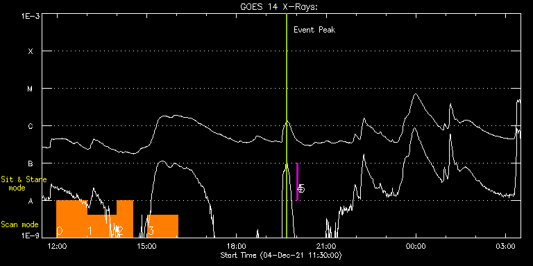 EIS Observation timeline overlay to GOES-Xray curve Code 1" 2" 40" 266" EIS Observations list for this event: STUDY ACRONYM ID DATE OBSERVED DESCRIPTION NOAA# TARGET 0 HPW021VEL260x512v2 | 80006 | 2021/12/04 11:59:03 | Active Region Studies | | Active Region TIMELINE ID DATE OBSERVED FITS FILE XCEN (+W/-E) YCEN (+N/-S) DUR ----------------------------------------------------------------------------------------------------------------- 80006 | 2021/12/04 11:59:03.000 | eis_l0_20211204_115903.fits.gz | 98.72 | 254.88 | 1h0m45s 1 HPW021VEL260x512v2 | 80007 | 2021/12/04 12:59:56 | Active Region Studies | | Active Region TIMELINE ID DATE OBSERVED FITS FILE XCEN (+W/-E) YCEN (+N/-S) DUR ----------------------------------------------------------------------------------------------------------------- 80007 | 2021/12/04 12:59:56.000 | eis_l0_20211204_125956.fits.gz | 107.83 | 255.03 | 1h0m44s 2 Atlas_30 | 80028 | 2021/12/04 14:00:47 | Active Region Studies | | Quiet Sun TIMELINE ID DATE OBSERVED FITS FILE XCEN (+W/-E) YCEN (+N/-S) DUR ----------------------------------------------------------------------------------------------------------------- 80028 | 2021/12/04 14:00:47.000 | eis_l0_20211204_140047.fits.gz | 117.04 | 255.03 | 31m40s 3 Atlas_60 | 80029 | 2021/12/04 15:01:44 | Active Region Studies | | Quiet Sun TIMELINE ID DATE OBSERVED FITS FILE XCEN (+W/-E) YCEN (+N/-S) DUR ----------------------------------------------------------------------------------------------------------------- 80029 | 2021/12/04 15:01:44.000 | eis_l0_20211204_150144.fits.gz | 126.16 | 255.11 | 1h1m39s 4 regcal074 | 80041 | 2021/12/04 20:00:12 | Dark exposures including overscan pixe | | Engineering TIMELINE ID DATE OBSERVED FITS FILE XCEN (+W/-E) YCEN (+N/-S) DUR ----------------------------------------------------------------------------------------------------------------- 80041 | 2021/12/04 20:00:12.000 | eis_l0_20211204_200012.fits.gz | 192.57 | 424.73 | 3m22s 5 regcal076 | 80042 | 2021/12/04 20:04:01 | Flatfield, 1 exposure, led 100ms, ccd | | Engineering TIMELINE ID DATE OBSERVED FITS FILE XCEN (+W/-E) YCEN (+N/-S) DUR ----------------------------------------------------------------------------------------------------------------- 80042 | 2021/12/04 20:04:01.000 | eis_l0_20211204_200401.fits.gz | 193.18 | 168.57 | 1s : Check study information : Download file : View thumbnails For this event, also check for: