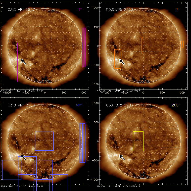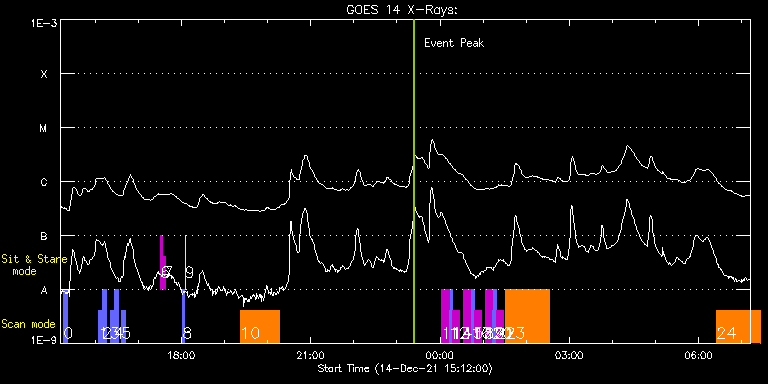 EIS Observation timeline overlay to GOES-Xray curve Code 1" 2" 40" 266" EIS Observations list for this event: STUDY ACRONYM ID DATE OBSERVED DESCRIPTION NOAA# TARGET 0 full_sun_slot_scan_2 | 80116 | 2021/12/14 15:16:16 | HOP 130 - Full Disk Slot Scan | | Quiet Sun TIMELINE ID DATE OBSERVED FITS FILE XCEN (+W/-E) YCEN (+N/-S) DUR ----------------------------------------------------------------------------------------------------------------- 80116 | 2021/12/14 15:16:16.000 | eis_l0_20211214_151616.fits.gz | 363.62 | -1131.60 | 5m27s 1 full_sun_slot_scan_2 | 80117 | 2021/12/14 16:05:13 | HOP 130 - Full Disk Slot Scan | | Quiet Sun TIMELINE ID DATE OBSERVED FITS FILE XCEN (+W/-E) YCEN (+N/-S) DUR ----------------------------------------------------------------------------------------------------------------- 80117 | 2021/12/14 16:05:13.000 | eis_l0_20211214_160513.fits.gz | -47.49 | -753.61 | 5m28s 2 full_sun_slot_scan_2 | 80118 | 2021/12/14 16:10:46 | HOP 130 - Full Disk Slot Scan | | Quiet Sun TIMELINE ID DATE OBSERVED FITS FILE XCEN (+W/-E) YCEN (+N/-S) DUR ----------------------------------------------------------------------------------------------------------------- 80118 | 2021/12/14 16:10:46.000 | eis_l0_20211214_161046.fits.gz | -47.49 | -1225.45 | 5m26s 3 full_sun_slot_scan_2 | 80119 | 2021/12/14 16:21:13 | HOP 130 - Full Disk Slot Scan | 2906 | Quiet Sun TIMELINE ID DATE OBSERVED FITS FILE XCEN (+W/-E) YCEN (+N/-S) DUR ----------------------------------------------------------------------------------------------------------------- 80119 | 2021/12/14 16:21:13.000 | eis_l0_20211214_162113.fits.gz | -458.60 | -659.44 | 5m28s 4 full_sun_slot_scan_2 | 80120 | 2021/12/14 16:26:46 | HOP 130 - Full Disk Slot Scan | | Quiet Sun TIMELINE ID DATE OBSERVED FITS FILE XCEN (+W/-E) YCEN (+N/-S) DUR ----------------------------------------------------------------------------------------------------------------- 80120 | 2021/12/14 16:26:46.000 | eis_l0_20211214_162646.fits.gz | -458.52 | -1131.44 | 5m27s 5 full_sun_slot_scan_2 | 80121 | 2021/12/14 16:37:13 | HOP 130 - Full Disk Slot Scan | | Quiet Sun TIMELINE ID DATE OBSERVED FITS FILE XCEN (+W/-E) YCEN (+N/-S) DUR ----------------------------------------------------------------------------------------------------------------- 80121 | 2021/12/14 16:37:13.000 | eis_l0_20211214_163713.fits.gz | -862.45 | -755.09 | 5m27s 6 regcal071 | 80146 | 2021/12/14 17:31:12 | Dark exposures, CCD bottom rows (100s | | Engineering TIMELINE ID DATE OBSERVED FITS FILE XCEN (+W/-E) YCEN (+N/-S) DUR ----------------------------------------------------------------------------------------------------------------- 80146 | 2021/12/14 17:31:12.000 | eis_l0_20211214_173112.fits.gz | -714.01 | -693.21 | 3m22s 7 regcal072 | 80147 | 2021/12/14 17:35:00 | Dark exposures, top CCD rows (100s exp | | Engineering TIMELINE ID DATE OBSERVED FITS FILE XCEN (+W/-E) YCEN (+N/-S) DUR ----------------------------------------------------------------------------------------------------------------- 80147 | 2021/12/14 17:35:00.000 | eis_l0_20211214_173500.fits.gz | -713.70 | -182.21 | 3m22s 8 PRY_slot_contextLITE | 80140 | 2021/12/14 18:02:14 | Changes in EIS pointing and alignment | | Active Region TIMELINE ID DATE OBSERVED FITS FILE XCEN (+W/-E) YCEN (+N/-S) DUR ----------------------------------------------------------------------------------------------------------------- 80140 | 2021/12/14 18:02:14.000 | eis_l0_20211214_180214.fits.gz | -15.21 | -0.19 | 2m56s 9 XRT_synop_AIA | 80141 | 2021/12/14 18:05:28 | Changes in EIS pointing and alignment | 2905 | Quiet Sun TIMELINE ID DATE OBSERVED FITS FILE XCEN (+W/-E) YCEN (+N/-S) DUR ----------------------------------------------------------------------------------------------------------------- 80141 | 2021/12/14 18:05:28.000 | eis_l0_20211214_180528.fits.gz | -132.57 | -0.35 | 11s 10 synop008 | 80144 | 2021/12/14 19:22:20 | EIS sensitivity study, quiet Sun | | Quiet Sun TIMELINE ID DATE OBSERVED FITS FILE XCEN (+W/-E) YCEN (+N/-S) DUR ----------------------------------------------------------------------------------------------------------------- 80144 | 2021/12/14 19:22:20.000 | eis_l0_20211214_192220.fits.gz | -23.19 | 0.81 | 54m28s 11 SK_DEEP_5x512_SLIT1 | 80124 | 2021/12/15 00:02:27 | EIS slot calibration study (west limb) | | Quiet Sun TIMELINE ID DATE OBSERVED FITS FILE XCEN (+W/-E) YCEN (+N/-S) DUR ----------------------------------------------------------------------------------------------------------------- 80124 | 2021/12/15 00:02:27.000 | eis_l0_20211215_000227.fits.gz | 987.69 | -305.50 | 10m7s 12 dei_qs_80_slot40 | 80125 | 2021/12/15 00:13:00 | EIS Slot Calibration Study (west limb) | | Quiet Sun TIMELINE ID DATE OBSERVED FITS FILE XCEN (+W/-E) YCEN (+N/-S) DUR ----------------------------------------------------------------------------------------------------------------- 80125 | 2021/12/15 00:13:00.000 | eis_l0_20211215_001300.fits.gz | 950.25 | -305.65 | 1m2s 80125 | 2021/12/15 00:14:08.000 | eis_l0_20211215_001408.fits.gz | 950.10 | -305.42 | 1m1s 13 dei_qs_80_slot40 | 80126 | 2021/12/15 00:15:15 | EIS Slot Calibration Study (west limb) | | Quiet Sun TIMELINE ID DATE OBSERVED FITS FILE XCEN (+W/-E) YCEN (+N/-S) DUR ----------------------------------------------------------------------------------------------------------------- 80126 | 2021/12/15 00:15:15.000 | eis_l0_20211215_001515.fits.gz | 950.10 | 205.58 | 1m2s 80126 | 2021/12/15 00:16:23.000 | eis_l0_20211215_001623.fits.gz | 950.17 | 205.58 | 1m2s 14 SK_DEEP_5x512_SLIT1 | 80127 | 2021/12/15 00:17:36 | EIS Slot Calibration Study (west limb) | | Quiet Sun TIMELINE ID DATE OBSERVED FITS FILE XCEN (+W/-E) YCEN (+N/-S) DUR ----------------------------------------------------------------------------------------------------------------- 80127 | 2021/12/15 00:17:36.000 | eis_l0_20211215_001736.fits.gz | 987.69 | 205.50 | 10m8s 15 SK_DEEP_5x512_SLIT1 | 80128 | 2021/12/15 00: