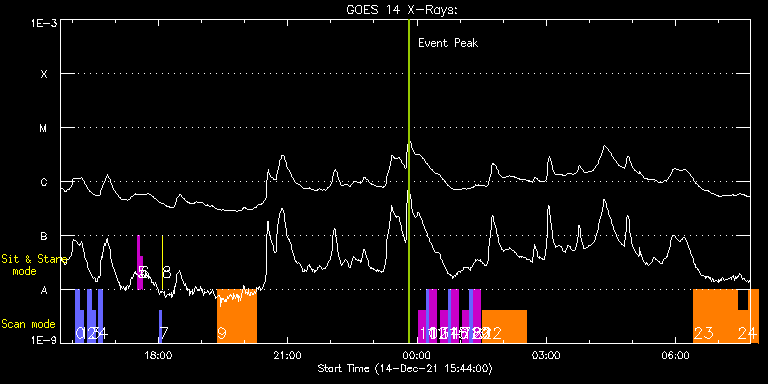 EIS Observation timeline overlay to GOES-Xray curve Code 1" 2" 40" 266" EIS Observations list for this event: STUDY ACRONYM ID DATE OBSERVED DESCRIPTION NOAA# TARGET 0 full_sun_slot_scan_2 | 80117 | 2021/12/14 16:05:13 | HOP 130 - Full Disk Slot Scan | | Quiet Sun TIMELINE ID DATE OBSERVED FITS FILE XCEN (+W/-E) YCEN (+N/-S) DUR ----------------------------------------------------------------------------------------------------------------- 80117 | 2021/12/14 16:05:13.000 | eis_l0_20211214_160513.fits.gz | -47.49 | -753.61 | 5m28s 1 full_sun_slot_scan_2 | 80118 | 2021/12/14 16:10:46 | HOP 130 - Full Disk Slot Scan | | Quiet Sun TIMELINE ID DATE OBSERVED FITS FILE XCEN (+W/-E) YCEN (+N/-S) DUR ----------------------------------------------------------------------------------------------------------------- 80118 | 2021/12/14 16:10:46.000 | eis_l0_20211214_161046.fits.gz | -47.49 | -1225.45 | 5m26s 2 full_sun_slot_scan_2 | 80119 | 2021/12/14 16:21:13 | HOP 130 - Full Disk Slot Scan | 2906 | Quiet Sun TIMELINE ID DATE OBSERVED FITS FILE XCEN (+W/-E) YCEN (+N/-S) DUR ----------------------------------------------------------------------------------------------------------------- 80119 | 2021/12/14 16:21:13.000 | eis_l0_20211214_162113.fits.gz | -458.60 | -659.44 | 5m28s 3 full_sun_slot_scan_2 | 80120 | 2021/12/14 16:26:46 | HOP 130 - Full Disk Slot Scan | | Quiet Sun TIMELINE ID DATE OBSERVED FITS FILE XCEN (+W/-E) YCEN (+N/-S) DUR ----------------------------------------------------------------------------------------------------------------- 80120 | 2021/12/14 16:26:46.000 | eis_l0_20211214_162646.fits.gz | -458.52 | -1131.44 | 5m27s 4 full_sun_slot_scan_2 | 80121 | 2021/12/14 16:37:13 | HOP 130 - Full Disk Slot Scan | | Quiet Sun TIMELINE ID DATE OBSERVED FITS FILE XCEN (+W/-E) YCEN (+N/-S) DUR ----------------------------------------------------------------------------------------------------------------- 80121 | 2021/12/14 16:37:13.000 | eis_l0_20211214_163713.fits.gz | -862.45 | -755.09 | 5m27s 5 regcal071 | 80146 | 2021/12/14 17:31:12 | Dark exposures, CCD bottom rows (100s | | Engineering TIMELINE ID DATE OBSERVED FITS FILE XCEN (+W/-E) YCEN (+N/-S) DUR ----------------------------------------------------------------------------------------------------------------- 80146 | 2021/12/14 17:31:12.000 | eis_l0_20211214_173112.fits.gz | -714.01 | -693.21 | 3m22s 6 regcal072 | 80147 | 2021/12/14 17:35:00 | Dark exposures, top CCD rows (100s exp | | Engineering TIMELINE ID DATE OBSERVED FITS FILE XCEN (+W/-E) YCEN (+N/-S) DUR ----------------------------------------------------------------------------------------------------------------- 80147 | 2021/12/14 17:35:00.000 | eis_l0_20211214_173500.fits.gz | -713.70 | -182.21 | 3m22s 7 PRY_slot_contextLITE | 80140 | 2021/12/14 18:02:14 | Changes in EIS pointing and alignment | | Active Region TIMELINE ID DATE OBSERVED FITS FILE XCEN (+W/-E) YCEN (+N/-S) DUR ----------------------------------------------------------------------------------------------------------------- 80140 | 2021/12/14 18:02:14.000 | eis_l0_20211214_180214.fits.gz | -15.21 | -0.19 | 2m56s 8 XRT_synop_AIA | 80141 | 2021/12/14 18:05:28 | Changes in EIS pointing and alignment | 2905 | Quiet Sun TIMELINE ID DATE OBSERVED FITS FILE XCEN (+W/-E) YCEN (+N/-S) DUR ----------------------------------------------------------------------------------------------------------------- 80141 | 2021/12/14 18:05:28.000 | eis_l0_20211214_180528.fits.gz | -132.57 | -0.35 | 11s 9 synop008 | 80144 | 2021/12/14 19:22:20 | EIS sensitivity study, quiet Sun | | Quiet Sun TIMELINE ID DATE OBSERVED FITS FILE XCEN (+W/-E) YCEN (+N/-S) DUR ----------------------------------------------------------------------------------------------------------------- 80144 | 2021/12/14 19:22:20.000 | eis_l0_20211214_192220.fits.gz | -23.19 | 0.81 | 54m28s 10 SK_DEEP_5x512_SLIT1 | 80124 | 2021/12/15 00:02:27 | EIS slot calibration study (west limb) | | Quiet Sun TIMELINE ID DATE OBSERVED FITS FILE XCEN (+W/-E) YCEN (+N/-S) DUR ----------------------------------------------------------------------------------------------------------------- 80124 | 2021/12/15 00:02:27.000 | eis_l0_20211215_000227.fits.gz | 987.69 | -305.50 | 10m7s 11 dei_qs_80_slot40 | 80125 | 2021/12/15 00:13:00 | EIS Slot Calibration Study (west limb) | | Quiet Sun TIMELINE ID DATE OBSERVED FITS FILE XCEN (+W/-E) YCEN (+N/-S) DUR ----------------------------------------------------------------------------------------------------------------- 80125 | 2021/12/15 00:13:00.000 | eis_l0_20211215_001300.fits.gz | 950.25 | -305.65 | 1m2s 80125 | 2021/12/15 00:14:08.000 | eis_l0_20211215_001408.fits.gz | 950.10 | -305.42 | 1m1s 12 dei_qs_80_slot40 | 80126 | 2021/12/15 00:15:15 | EIS Slot Calibration Study (west limb) | | Quiet Sun TIMELINE ID DATE OBSERVED FITS FILE XCEN (+W/-E) YCEN (+N/-S) DUR ----------------------------------------------------------------------------------------------------------------- 80126 | 2021/12/15 00:15:15.000 | eis_l0_20211215_001515.fits.gz | 950.10 | 205.58 | 1m2s 80126 | 2021/12/15 00:16:23.000 | eis_l0_20211215_001623.fits.gz | 950.17 | 205.58 | 1m2s 13 SK_DEEP_5x512_SLIT1 | 80127 | 2021/12/15 00:17:36 | EIS Slot Calibration Study (west limb) | | Quiet Sun TIMELINE ID DATE OBSERVED FITS FILE XCEN (+W/-E) YCEN (+N/-S) DUR ----------------------------------------------------------------------------------------------------------------- 80127 | 2021/12/15 00:17:36.000 | eis_l0_20211215_001736.fits.gz | 987.69 | 205.50 | 10m8s 14 SK_DEEP_5x512_SLIT1 | 80128 | 2021/12/15 00:32:40 | EIS slot calibration study (west limb) | | Quiet Sun TIMELINE ID DATE OBSERVED FITS FILE XCEN (+W/-E) YCEN (+N/-S) DUR ----------------------------------------------------------------------------------------------------------------- 80128 | 2021/12/15 00:32:40.000 | eis_l0_20211215_003240.fits.gz | 1017.57 | -305.35 | 10m8s 15 dei_qs_80_slot40 | 80129 | 2021/12/1