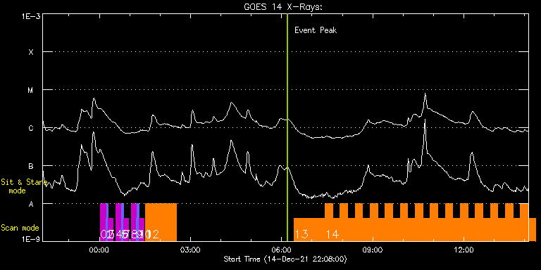 EIS Observation timeline overlay to GOES-Xray curve Code 1" 2" 40" 266" EIS Observations list for this event: STUDY ACRONYM ID DATE OBSERVED DESCRIPTION NOAA# TARGET 0 SK_DEEP_5x512_SLIT1 | 80124 | 2021/12/15 00:02:27 | EIS slot calibration study (west limb) | | Quiet Sun TIMELINE ID DATE OBSERVED FITS FILE XCEN (+W/-E) YCEN (+N/-S) DUR ----------------------------------------------------------------------------------------------------------------- 80124 | 2021/12/15 00:02:27.000 | eis_l0_20211215_000227.fits.gz | 987.69 | -305.50 | 10m7s 1 dei_qs_80_slot40 | 80125 | 2021/12/15 00:13:00 | EIS Slot Calibration Study (west limb) | | Quiet Sun TIMELINE ID DATE OBSERVED FITS FILE XCEN (+W/-E) YCEN (+N/-S) DUR ----------------------------------------------------------------------------------------------------------------- 80125 | 2021/12/15 00:13:00.000 | eis_l0_20211215_001300.fits.gz | 950.25 | -305.65 | 1m2s 80125 | 2021/12/15 00:14:08.000 | eis_l0_20211215_001408.fits.gz | 950.10 | -305.42 | 1m1s 2 dei_qs_80_slot40 | 80126 | 2021/12/15 00:15:15 | EIS Slot Calibration Study (west limb) | | Quiet Sun TIMELINE ID DATE OBSERVED FITS FILE XCEN (+W/-E) YCEN (+N/-S) DUR ----------------------------------------------------------------------------------------------------------------- 80126 | 2021/12/15 00:15:15.000 | eis_l0_20211215_001515.fits.gz | 950.10 | 205.58 | 1m2s 80126 | 2021/12/15 00:16:23.000 | eis_l0_20211215_001623.fits.gz | 950.17 | 205.58 | 1m2s 3 SK_DEEP_5x512_SLIT1 | 80127 | 2021/12/15 00:17:36 | EIS Slot Calibration Study (west limb) | | Quiet Sun TIMELINE ID DATE OBSERVED FITS FILE XCEN (+W/-E) YCEN (+N/-S) DUR ----------------------------------------------------------------------------------------------------------------- 80127 | 2021/12/15 00:17:36.000 | eis_l0_20211215_001736.fits.gz | 987.69 | 205.50 | 10m8s 4 SK_DEEP_5x512_SLIT1 | 80128 | 2021/12/15 00:32:40 | EIS slot calibration study (west limb) | | Quiet Sun TIMELINE ID DATE OBSERVED FITS FILE XCEN (+W/-E) YCEN (+N/-S) DUR ----------------------------------------------------------------------------------------------------------------- 80128 | 2021/12/15 00:32:40.000 | eis_l0_20211215_003240.fits.gz | 1017.57 | -305.35 | 10m8s 5 dei_qs_80_slot40 | 80129 | 2021/12/15 00:43:13 | EIS Slot Calibration Study (west limb) | | Quiet Sun TIMELINE ID DATE OBSERVED FITS FILE XCEN (+W/-E) YCEN (+N/-S) DUR ----------------------------------------------------------------------------------------------------------------- 80129 | 2021/12/15 00:43:13.000 | eis_l0_20211215_004313.fits.gz | 980.21 | -305.50 | 1m2s 80129 | 2021/12/15 00:44:21.000 | eis_l0_20211215_004421.fits.gz | 980.21 | -305.50 | 1m2s 6 dei_qs_80_slot40 | 80130 | 2021/12/15 00:45:29 | EIS Slot Calibration Study (west limb) | | Quiet Sun TIMELINE ID DATE OBSERVED FITS FILE XCEN (+W/-E) YCEN (+N/-S) DUR ----------------------------------------------------------------------------------------------------------------- 80130 | 2021/12/15 00:45:29.000 | eis_l0_20211215_004529.fits.gz | 980.21 | 205.35 | 1m2s 80130 | 2021/12/15 00:46:36.000 | eis_l0_20211215_004636.fits.gz | 980.13 | 205.50 | 1m2s 7 SK_DEEP_5x512_SLIT1 | 80131 | 2021/12/15 00:47:50 | EIS Slot Calibration Study (west limb) | | Quiet Sun TIMELINE ID DATE OBSERVED FITS FILE XCEN (+W/-E) YCEN (+N/-S) DUR ----------------------------------------------------------------------------------------------------------------- 80131 | 2021/12/15 00:47:50.000 | eis_l0_20211215_004750.fits.gz | 1017.57 | 205.50 | 10m8s 8 SK_DEEP_5x512_SLIT1 | 80136 | 2021/12/15 01:02:40 | EIS slot calibration study (west limb) | | Quiet Sun TIMELINE ID DATE OBSERVED FITS FILE XCEN (+W/-E) YCEN (+N/-S) DUR ----------------------------------------------------------------------------------------------------------------- 80136 | 2021/12/15 01:02:40.000 | eis_l0_20211215_010240.fits.gz | 1047.60 | -305.42 | 10m8s 9 dei_qs_80_slot40 | 80137 | 2021/12/15 01:13:14 | EIS Slot Calibration Study (west limb) | | Quiet Sun TIMELINE ID DATE OBSERVED FITS FILE XCEN (+W/-E) YCEN (+N/-S) DUR ----------------------------------------------------------------------------------------------------------------- 80137 | 2021/12/15 01:13:14.000 | eis_l0_20211215_011314.fits.gz | 1010.16 | -305.35 | 1m2s 80137 | 2021/12/15 01:14:21.000 | eis_l0_20211215_011421.fits.gz | 1010.08 | -305.42 | 1m2s 10 dei_qs_80_slot40 | 80138 | 2021/12/15 01:15:56 | EIS Slot Calibration Study (west limb) | | Quiet Sun TIMELINE ID DATE OBSERVED FITS FILE XCEN (+W/-E) YCEN (+N/-S) DUR ----------------------------------------------------------------------------------------------------------------- 80138 | 2021/12/15 01:15:56.000 | eis_l0_20211215_011556.fits.gz | 1010.16 | 205.58 | 1m2s 80138 | 2021/12/15 01:17:03.000 | eis_l0_20211215_011703.fits.gz | 1010.16 | 205.50 | 1m2s 11 SK_DEEP_5x512_SLIT1 | 80139 | 2021/12/15 01:18:17 | EIS Slot Calibration Study (west limb) | | Quiet Sun TIMELINE ID DATE OBSERVED FITS FILE XCEN (+W/-E) YCEN (+N/-S) DUR ----------------------------------------------------------------------------------------------------------------- 80139 | 2021/12/15 01:18:17.000 | eis_l0_20211215_011817.fits.gz | 1047.52 | 205.65 | 10m8s 12 dhb_atlas_120m_30" | 80145 | 2021/12/15 01:31:26 | Spectral atlas (off-limb, quiet Sun) | | Quiet Sun TIMELINE ID DATE OBSERVED FITS FILE XCEN (+W/-E) YCEN (+N/-S) DUR ----------------------------------------------------------------------------------------------------------------- 80145 | 2021/12/15 01:31:26.000 | eis_l0_20211215_013126.fits.gz | 1017.08 | 36.58 | 1h0m49s 13 HPW021VEL260x512v2 | 80148 | 2021/12/15 06:25:13 | Active region studies | 2907 | Active Region TIMELINE ID DATE OBSERVED FITS FILE XCEN (+W/-E) YCEN (+N/-S) DUR ----------------------------------------------------------------------------------------------------------------- 80148 | 2021/12/15 06:25:13.000 | eis_l0_20211215_062513.fits.gz | -670.98 | -349.35 | 1h0m45s 14 ar_evolu