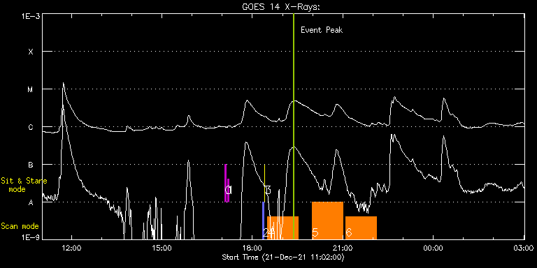 EIS Observation timeline overlay to GOES-Xray curve Code 1" 2" 40" 266" EIS Observations list for this event: STUDY ACRONYM ID DATE OBSERVED DESCRIPTION NOAA# TARGET 0 regcal071 | 80269 | 2021/12/21 17:05:12 | Dark exposures, CCD bottom rows (100s | | Engineering TIMELINE ID DATE OBSERVED FITS FILE XCEN (+W/-E) YCEN (+N/-S) DUR ----------------------------------------------------------------------------------------------------------------- 80269 | 2021/12/21 17:05:12.000 | eis_l0_20211221_170512.fits.gz | 307.98 | -622.52 | 3m22s 1 regcal072 | 80270 | 2021/12/21 17:10:12 | Dark exposures, top CCD rows (100s exp | | Engineering TIMELINE ID DATE OBSERVED FITS FILE XCEN (+W/-E) YCEN (+N/-S) DUR ----------------------------------------------------------------------------------------------------------------- 80270 | 2021/12/21 17:10:12.000 | eis_l0_20211221_171012.fits.gz | 308.52 | -111.45 | 3m22s 2 PRY_slot_contextLITE | 80238 | 2021/12/21 18:20:20 | Change of EIS pointing and alignment w | | Active Region TIMELINE ID DATE OBSERVED FITS FILE XCEN (+W/-E) YCEN (+N/-S) DUR ----------------------------------------------------------------------------------------------------------------- 80238 | 2021/12/21 18:20:20.000 | eis_l0_20211221_182020.fits.gz | -15.29 | -0.42 | 2m57s 3 XRT_synop_AIA | 80239 | 2021/12/21 18:24:27 | Change of EIS pointing and alignment w | | Quiet Sun TIMELINE ID DATE OBSERVED FITS FILE XCEN (+W/-E) YCEN (+N/-S) DUR ----------------------------------------------------------------------------------------------------------------- 80239 | 2021/12/21 18:24:27.000 | eis_l0_20211221_182427.fits.gz | -132.49 | -0.42 | 10s 4 HPW021VEL260x512v2 | 80276 | 2021/12/21 18:30:20 | Active Region Studies | 2908 | Active Region TIMELINE ID DATE OBSERVED FITS FILE XCEN (+W/-E) YCEN (+N/-S) DUR ----------------------------------------------------------------------------------------------------------------- 80276 | 2021/12/21 18:30:20.000 | eis_l0_20211221_183020.fits.gz | 294.67 | -279.45 | 1h0m44s 5 Atlas_60 | 80278 | 2021/12/21 19:58:41 | Active Region Studies | | Quiet Sun TIMELINE ID DATE OBSERVED FITS FILE XCEN (+W/-E) YCEN (+N/-S) DUR ----------------------------------------------------------------------------------------------------------------- 80278 | 2021/12/21 19:58:41.000 | eis_l0_20211221_195841.fits.gz | 307.30 | -279.60 | 1h1m39s 6 HPW021VEL260x512v2 | 80279 | 2021/12/21 21:05:40 | Active Region Studies | 2908 | Active Region TIMELINE ID DATE OBSERVED FITS FILE XCEN (+W/-E) YCEN (+N/-S) DUR ----------------------------------------------------------------------------------------------------------------- 80279 | 2021/12/21 21:05:40.000 | eis_l0_20211221_210540.fits.gz | 315.99 | -279.37 | 1h0m45s : Check study information : Download file : View thumbnails For this event, also check for:
