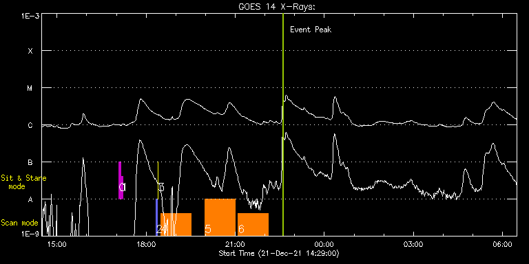 EIS Observation timeline overlay to GOES-Xray curve Code 1" 2" 40" 266" EIS Observations list for this event: STUDY ACRONYM ID DATE OBSERVED DESCRIPTION NOAA# TARGET 0 regcal071 | 80269 | 2021/12/21 17:05:12 | Dark exposures, CCD bottom rows (100s | | Engineering TIMELINE ID DATE OBSERVED FITS FILE XCEN (+W/-E) YCEN (+N/-S) DUR ----------------------------------------------------------------------------------------------------------------- 80269 | 2021/12/21 17:05:12.000 | eis_l0_20211221_170512.fits.gz | 307.98 | -622.52 | 3m22s 1 regcal072 | 80270 | 2021/12/21 17:10:12 | Dark exposures, top CCD rows (100s exp | | Engineering TIMELINE ID DATE OBSERVED FITS FILE XCEN (+W/-E) YCEN (+N/-S) DUR ----------------------------------------------------------------------------------------------------------------- 80270 | 2021/12/21 17:10:12.000 | eis_l0_20211221_171012.fits.gz | 308.52 | -111.45 | 3m22s 2 PRY_slot_contextLITE | 80238 | 2021/12/21 18:20:20 | Change of EIS pointing and alignment w | | Active Region TIMELINE ID DATE OBSERVED FITS FILE XCEN (+W/-E) YCEN (+N/-S) DUR ----------------------------------------------------------------------------------------------------------------- 80238 | 2021/12/21 18:20:20.000 | eis_l0_20211221_182020.fits.gz | -15.29 | -0.42 | 2m57s 3 XRT_synop_AIA | 80239 | 2021/12/21 18:24:27 | Change of EIS pointing and alignment w | | Quiet Sun TIMELINE ID DATE OBSERVED FITS FILE XCEN (+W/-E) YCEN (+N/-S) DUR ----------------------------------------------------------------------------------------------------------------- 80239 | 2021/12/21 18:24:27.000 | eis_l0_20211221_182427.fits.gz | -132.49 | -0.42 | 10s 4 HPW021VEL260x512v2 | 80276 | 2021/12/21 18:30:20 | Active Region Studies | 2908 | Active Region TIMELINE ID DATE OBSERVED FITS FILE XCEN (+W/-E) YCEN (+N/-S) DUR ----------------------------------------------------------------------------------------------------------------- 80276 | 2021/12/21 18:30:20.000 | eis_l0_20211221_183020.fits.gz | 294.67 | -279.45 | 1h0m44s 5 Atlas_60 | 80278 | 2021/12/21 19:58:41 | Active Region Studies | | Quiet Sun TIMELINE ID DATE OBSERVED FITS FILE XCEN (+W/-E) YCEN (+N/-S) DUR ----------------------------------------------------------------------------------------------------------------- 80278 | 2021/12/21 19:58:41.000 | eis_l0_20211221_195841.fits.gz | 307.30 | -279.60 | 1h1m39s 6 HPW021VEL260x512v2 | 80279 | 2021/12/21 21:05:40 | Active Region Studies | 2908 | Active Region TIMELINE ID DATE OBSERVED FITS FILE XCEN (+W/-E) YCEN (+N/-S) DUR ----------------------------------------------------------------------------------------------------------------- 80279 | 2021/12/21 21:05:40.000 | eis_l0_20211221_210540.fits.gz | 315.99 | -279.37 | 1h0m45s : Check study information : Download file : View thumbnails For this event, also check for: