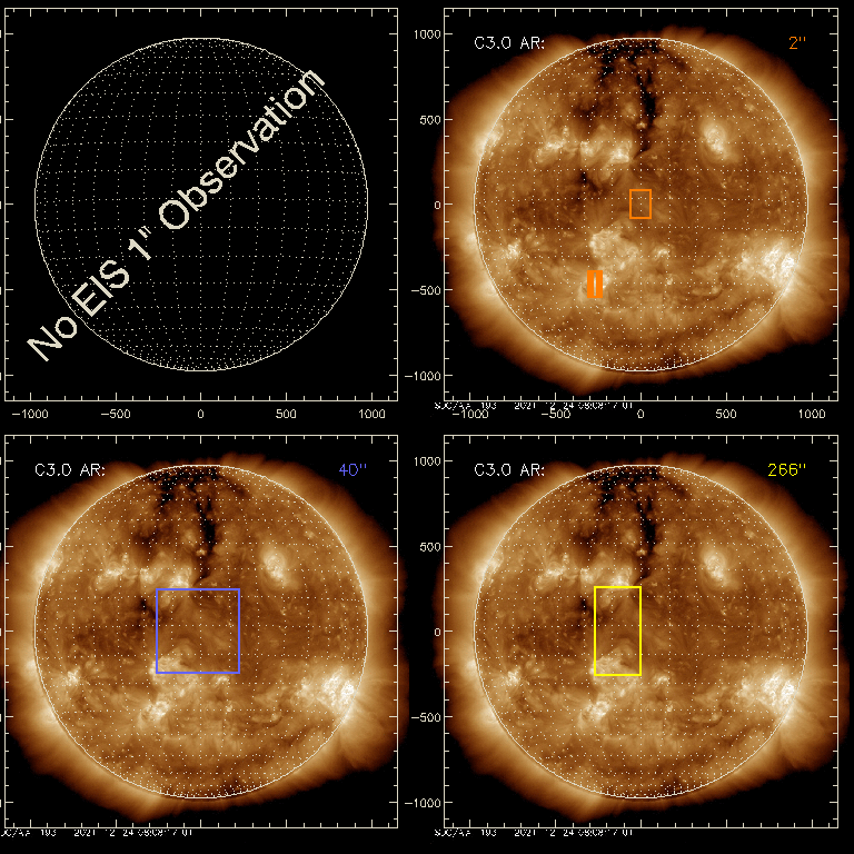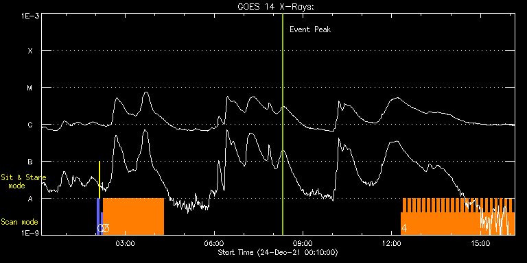 EIS Observation timeline overlay to GOES-Xray curve Code 1" 2" 40" 266" EIS Observations list for this event: STUDY ACRONYM ID DATE OBSERVED DESCRIPTION NOAA# TARGET 0 PRY_slot_contextLITE | 80244 | 2021/12/24 02:03:19 | Change of EIS pointing and alignment w | 2912 | Active Region TIMELINE ID DATE OBSERVED FITS FILE XCEN (+W/-E) YCEN (+N/-S) DUR ----------------------------------------------------------------------------------------------------------------- 80244 | 2021/12/24 02:03:19.000 | eis_l0_20211224_020319.fits.gz | -15.21 | -0.50 | 2m56s 1 XRT_synop_AIA | 80245 | 2021/12/24 02:07:25 | Change of EIS pointing and alignment w | 2912 | Quiet Sun TIMELINE ID DATE OBSERVED FITS FILE XCEN (+W/-E) YCEN (+N/-S) DUR ----------------------------------------------------------------------------------------------------------------- 80245 | 2021/12/24 02:07:25.000 | eis_l0_20211224_020725.fits.gz | -132.57 | -0.42 | 10s 2 PRY_slot_contextLITE | 80273 | 2021/12/24 02:10:25 | EIS Spectral Atlas Synoptic Programme | 2912 | Active Region TIMELINE ID DATE OBSERVED FITS FILE XCEN (+W/-E) YCEN (+N/-S) DUR ----------------------------------------------------------------------------------------------------------------- 80273 | 2021/12/24 02:10:25.000 | eis_l0_20211224_021025.fits.gz | -15.21 | -0.50 | 2m56s 3 Atlas_120 | 80274 | 2021/12/24 02:15:32 | EIS Spectral Atlas Synoptic Programme | | Quiet Sun TIMELINE ID DATE OBSERVED FITS FILE XCEN (+W/-E) YCEN (+N/-S) DUR ----------------------------------------------------------------------------------------------------------------- 80274 | 2021/12/24 02:15:32.000 | eis_l0_20211224_021532.fits.gz | -0.55 | -0.42 | 2h1m39s 4 EL_DHB_01 | 80281 | 2021/12/24 12:18:41 | Coronal Magnetic Field Measurements in | | Flare TIMELINE ID DATE OBSERVED FITS FILE XCEN (+W/-E) YCEN (+N/-S) DUR ----------------------------------------------------------------------------------------------------------------- 80281 | 2021/12/24 12:18:41.000 | eis_l0_20211224_121841.fits.gz | -281.43 | -468.63 | 4m50s 80281 | 2021/12/24 12:23:33.000 | eis_l0_20211224_122333.fits.gz | -280.89 | -468.71 | 4m51s 80281 | 2021/12/24 12:28:27.000 | eis_l0_20211224_122827.fits.gz | -280.19 | -468.71 | 4m50s 80281 | 2021/12/24 12:33:20.000 | eis_l0_20211224_123320.fits.gz | -279.57 | -468.79 | 4m50s 80281 | 2021/12/24 12:38:13.000 | eis_l0_20211224_123813.fits.gz | -279.03 | -468.71 | 4m50s 80281 | 2021/12/24 12:43:06.000 | eis_l0_20211224_124306.fits.gz | -278.26 | -468.71 | 4m50s 80281 | 2021/12/24 12:47:59.000 | eis_l0_20211224_124759.fits.gz | -277.72 | -468.63 | 4m50s 80281 | 2021/12/24 12:52:52.000 | eis_l0_20211224_125252.fits.gz | -277.10 | -468.79 | 4m50s 80281 | 2021/12/24 12:57:45.000 | eis_l0_20211224_125745.fits.gz | -276.48 | -468.56 | 4m50s 80281 | 2021/12/24 13:02:38.000 | eis_l0_20211224_130238.fits.gz | -275.86 | -468.56 | 4m50s 80281 | 2021/12/24 13:07:31.000 | eis_l0_20211224_130731.fits.gz | -275.25 | -468.48 | 4m50s 80281 | 2021/12/24 13:12:24.000 | eis_l0_20211224_131224.fits.gz | -274.63 | -468.40 | 4m49s 80281 | 2021/12/24 13:17:16.000 | eis_l0_20211224_131716.fits.gz | -273.93 | -468.40 | 4m51s 80281 | 2021/12/24 13:22:09.000 | eis_l0_20211224_132209.fits.gz | -273.39 | -468.56 | 4m50s 80281 | 2021/12/24 13:27:02.000 | eis_l0_20211224_132702.fits.gz | -272.70 | -468.48 | 4m50s 80281 | 2021/12/24 13:31:55.000 | eis_l0_20211224_133155.fits.gz | -272.08 | -468.48 | 4m50s 80281 | 2021/12/24 13:36:48.000 | eis_l0_20211224_133648.fits.gz | -271.39 | -468.56 | 4m50s 80281 | 2021/12/24 13:41:41.000 | eis_l0_20211224_134141.fits.gz | -270.77 | -468.40 | 4m50s 80281 | 2021/12/24 13:46:33.000 | eis_l0_20211224_134633.fits.gz | -270.07 | -468.63 | 4m51s 80281 | 2021/12/24 13:51:27.000 | eis_l0_20211224_135127.fits.gz | -269.53 | -468.40 | 4m50s 80281 | 2021/12/24 13:56:19.000 | eis_l0_20211224_135619.fits.gz | -268.91 | -468.56 | 4m50s 80281 | 2021/12/24 14:01:12.000 | eis_l0_20211224_140112.fits.gz | -268.22 | -468.40 | 4m50s 80281 | 2021/12/24 14:06:05.000 | eis_l0_20211224_140605.fits.gz | -267.60 | -468.32 | 4m50s 80281 | 2021/12/24 14:10:58.000 | eis_l0_20211224_141058.fits.gz | -266.98 | -468.48 | 4m51s 80281 | 2021/12/24 14:15:52.000 | eis_l0_20211224_141552.fits.gz | -266.36 | -468.48 | 4m49s 80281 | 2021/12/24 14:20:44.000 | eis_l0_20211224_142044.fits.gz | -265.67 | -468.40 | 4m50s 80281 | 2021/12/24 14:25:37.000 | eis_l0_20211224_142537.fits.gz | -265.05 | -468.32 | 4m50s 80281 | 2021/12/24 14:30:30.000 | eis_l0_20211224_143030.fits.gz | -264.51 | -468.32 | 4m51s 80281 | 2021/12/24 14:35:24.000 | eis_l0_20211224_143524.fits.gz | -263.89 | -468.25 | 4m49s 80281 | 2021/12/24 14:40:16.000 | eis_l0_20211224_144016.fits.gz | -263.27 | -468.25 | 4m51s 80281 | 2021/12/24 14:45:09.000 | eis_l0_20211224_144509.fits.gz | -262.58 | -468.32 | 4m50s 80281 | 2021/12/24 14:50:02.000 | eis_l0_20211224_145002.fits.gz | -261.96 | -468.17 | 4m50s 80281 | 2021/12/24 14:54:55.000 | eis_l0_20211224_145455.fits.gz | -261.34 | -468.32 | 4m50s 80281 | 2021/12/24 14:59:48.000 | eis_l0_20211224_145948.fits.gz | -260.73 | -468.25 | 4m50s 80281 | 2021/12/24 15:04:41.000 | eis_l0_20211224_150441.fits.gz | -260.03 | -468.25 | 4m50s 80281 | 2021/12/24 15:09:34.000 | eis_l0_20211224_150934.fits.gz | -259.33 | -468.40 | 4m50s 80281 | 2021/12/24 15:14:26.000 | eis_l0_20211224_151426.fits.gz | -258.79 | -468.25 | 4m51s 80281 | 2021/12/24 15:19:20.000 | eis_l0_20211224_151920.fits.gz | -258.18 | -468.32 | 4m49s 80281 | 2021/12/24 15:24:12.000 | eis_l0_20211224_152412.fits.gz | -257.56 | -468.25 | 4m50s 80281 | 2021/12/24 15:29:05.000 | eis_l0_20211224_152905.fits.gz | -256.86 | -468.32 | 4m50s 80281 | 2021/12/24 15:33:58.000 | eis_l0_20211224_153358.fits.gz | -256.24 | -468.09 | 4m50s 80281 | 2021/12/24 15:38:51.000 | eis_l0_20211224_153851.fits.gz | -255.70 | -468.17 | 4m50s 80281 | 2021/12/24 15:43:44.000 | eis_l0_20211224_154344.fits.gz | -255.01 | -468.25 | 4m50s 80281 | 2021/12/24 15:48:37.000 | eis_l0_202112