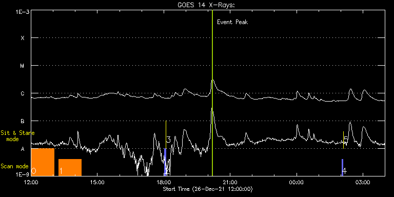 EIS Observation timeline overlay to GOES-Xray curve Code 1" 2" 40" 266" EIS Observations list for this event: STUDY ACRONYM ID DATE OBSERVED DESCRIPTION NOAA# TARGET 0 Atlas_60 | 80295 | 2021/12/26 12:00:39 | Active Region Studies | | Quiet Sun TIMELINE ID DATE OBSERVED FITS FILE XCEN (+W/-E) YCEN (+N/-S) DUR ----------------------------------------------------------------------------------------------------------------- 80295 | 2021/12/26 12:00:39.000 | eis_l0_20211226_120039.fits.gz | 96.87 | -463.54 | 1h1m40s 1 HPW021VEL260x512v2 | 80292 | 2021/12/26 13:15:12 | Active Region Studies | | Active Region TIMELINE ID DATE OBSERVED FITS FILE XCEN (+W/-E) YCEN (+N/-S) DUR ----------------------------------------------------------------------------------------------------------------- 80292 | 2021/12/26 13:15:12.000 | eis_l0_20211226_131512.fits.gz | 106.11 | -463.46 | 1h0m45s 2 PRY_slot_contextLITE | 80254 | 2021/12/26 18:02:19 | Change of EIS pointing and alignment w | | Active Region TIMELINE ID DATE OBSERVED FITS FILE XCEN (+W/-E) YCEN (+N/-S) DUR ----------------------------------------------------------------------------------------------------------------- 80254 | 2021/12/26 18:02:19.000 | eis_l0_20211226_180219.fits.gz | -15.29 | -0.50 | 2m56s 3 XRT_synop_AIA | 80255 | 2021/12/26 18:06:25 | Change of EIS pointing and alignment w | | Quiet Sun TIMELINE ID DATE OBSERVED FITS FILE XCEN (+W/-E) YCEN (+N/-S) DUR ----------------------------------------------------------------------------------------------------------------- 80255 | 2021/12/26 18:06:25.000 | eis_l0_20211226_180625.fits.gz | -132.57 | -0.50 | 11s 4 PRY_slot_contextLITE | 80256 | 2021/12/27 02:03:26 | Change of EIS pointing and alignment w | 2916 | Active Region TIMELINE ID DATE OBSERVED FITS FILE XCEN (+W/-E) YCEN (+N/-S) DUR ----------------------------------------------------------------------------------------------------------------- 80256 | 2021/12/27 02:03:26.000 | eis_l0_20211227_020326.fits.gz | -15.37 | -0.35 | 2m57s 5 XRT_synop_AIA | 80257 | 2021/12/27 02:07:26 | Change of EIS pointing and alignment w | 2916 | Quiet Sun TIMELINE ID DATE OBSERVED FITS FILE XCEN (+W/-E) YCEN (+N/-S) DUR ----------------------------------------------------------------------------------------------------------------- 80257 | 2021/12/27 02:07:26.000 | eis_l0_20211227_020726.fits.gz | -132.57 | -0.50 | 10s : Check study information : Download file : View thumbnails For this event, also check for: