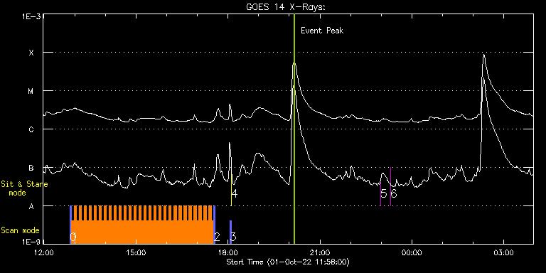 EIS Observation timeline overlay to GOES-Xray curve Code 1" 2" 40" 266" EIS Observations list for this event: STUDY ACRONYM ID DATE OBSERVED DESCRIPTION NOAA# TARGET 0 PRY_slot_context_v3 | 83517 | 2022/10/01 12:50:28 | Coronal Magnetic Field Measurements in | | Active Region TIMELINE ID DATE OBSERVED FITS FILE XCEN (+W/-E) YCEN (+N/-S) DUR ----------------------------------------------------------------------------------------------------------------- 83517 | 2022/10/01 12:50:28.000 | eis_l0_20221001_125028.fits.gz | -888.56 | 36.71 | 2m56s 1 EL_DHB_01 | 83518 | 2022/10/01 12:53:50 | Coronal Magnetic Field Measurements in | | Flare TIMELINE ID DATE OBSERVED FITS FILE XCEN (+W/-E) YCEN (+N/-S) DUR ----------------------------------------------------------------------------------------------------------------- 83518 | 2022/10/01 12:53:50.000 | eis_l0_20221001_125350.fits.gz | -873.59 | 306.55 | 4m50s 83518 | 2022/10/01 12:58:42.000 | eis_l0_20221001_125842.fits.gz | -873.35 | 306.63 | 4m50s 83518 | 2022/10/01 13:03:35.000 | eis_l0_20221001_130335.fits.gz | -873.12 | 306.48 | 4m50s 83518 | 2022/10/01 13:08:28.000 | eis_l0_20221001_130828.fits.gz | -872.81 | 306.40 | 4m50s 83518 | 2022/10/01 13:13:21.000 | eis_l0_20221001_131321.fits.gz | -872.58 | 306.40 | 4m51s 83518 | 2022/10/01 13:18:14.000 | eis_l0_20221001_131814.fits.gz | -872.35 | 306.24 | 4m50s 83518 | 2022/10/01 13:23:07.000 | eis_l0_20221001_132307.fits.gz | -872.12 | 306.09 | 4m51s 83518 | 2022/10/01 13:28:00.000 | eis_l0_20221001_132800.fits.gz | -871.81 | 306.09 | 4m50s 83518 | 2022/10/01 13:32:53.000 | eis_l0_20221001_133253.fits.gz | -871.58 | 305.93 | 4m50s 83518 | 2022/10/01 13:37:46.000 | eis_l0_20221001_133746.fits.gz | -871.35 | 305.93 | 4m50s 83518 | 2022/10/01 13:42:39.000 | eis_l0_20221001_134239.fits.gz | -871.11 | 305.86 | 4m50s 83518 | 2022/10/01 13:47:32.000 | eis_l0_20221001_134732.fits.gz | -870.96 | 305.93 | 4m50s 83518 | 2022/10/01 13:52:25.000 | eis_l0_20221001_135225.fits.gz | -870.65 | 305.78 | 4m50s 83518 | 2022/10/01 13:57:18.000 | eis_l0_20221001_135718.fits.gz | -870.34 | 305.70 | 4m50s 83518 | 2022/10/01 14:02:11.000 | eis_l0_20221001_140211.fits.gz | -870.19 | 305.63 | 4m50s 83518 | 2022/10/01 14:07:04.000 | eis_l0_20221001_140704.fits.gz | -869.88 | 305.55 | 4m50s 83518 | 2022/10/01 14:11:57.000 | eis_l0_20221001_141157.fits.gz | -869.65 | 305.39 | 4m50s 83518 | 2022/10/01 14:16:50.000 | eis_l0_20221001_141650.fits.gz | -869.34 | 305.32 | 4m50s 83518 | 2022/10/01 14:21:42.000 | eis_l0_20221001_142142.fits.gz | -869.11 | 305.16 | 4m51s 83518 | 2022/10/01 14:26:36.000 | eis_l0_20221001_142636.fits.gz | -868.87 | 305.24 | 4m50s 83518 | 2022/10/01 14:31:29.000 | eis_l0_20221001_143129.fits.gz | -868.64 | 305.16 | 4m50s 83518 | 2022/10/01 14:36:22.000 | eis_l0_20221001_143622.fits.gz | -868.33 | 305.01 | 4m50s 83518 | 2022/10/01 14:41:15.000 | eis_l0_20221001_144115.fits.gz | -868.10 | 304.93 | 4m50s 83518 | 2022/10/01 14:46:08.000 | eis_l0_20221001_144608.fits.gz | -867.87 | 304.93 | 4m51s 83518 | 2022/10/01 14:51:02.000 | eis_l0_20221001_145102.fits.gz | -867.56 | 304.85 | 4m50s 83518 | 2022/10/01 14:55:55.000 | eis_l0_20221001_145555.fits.gz | -867.33 | 304.78 | 4m50s 83518 | 2022/10/01 15:00:47.000 | eis_l0_20221001_150047.fits.gz | -867.10 | 304.70 | 4m51s 83518 | 2022/10/01 15:05:40.000 | eis_l0_20221001_150540.fits.gz | -866.87 | 304.70 | 4m51s 83518 | 2022/10/01 15:10:33.000 | eis_l0_20221001_151033.fits.gz | -866.63 | 304.62 | 4m51s 83518 | 2022/10/01 15:15:27.000 | eis_l0_20221001_151527.fits.gz | -866.33 | 304.47 | 4m50s 83518 | 2022/10/01 15:20:20.000 | eis_l0_20221001_152020.fits.gz | -866.09 | 304.39 | 4m50s 83518 | 2022/10/01 15:25:13.000 | eis_l0_20221001_152513.fits.gz | -865.78 | 304.39 | 4m50s 83518 | 2022/10/01 15:30:06.000 | eis_l0_20221001_153006.fits.gz | -865.55 | 304.31 | 4m50s 83518 | 2022/10/01 15:34:59.000 | eis_l0_20221001_153459.fits.gz | -865.32 | 304.24 | 4m50s 83518 | 2022/10/01 15:39:52.000 | eis_l0_20221001_153952.fits.gz | -865.09 | 304.08 | 4m50s 83518 | 2022/10/01 15:44:45.000 | eis_l0_20221001_154445.fits.gz | -864.78 | 304.08 | 4m50s 83518 | 2022/10/01 15:49:38.000 | eis_l0_20221001_154938.fits.gz | -864.55 | 303.93 | 4m50s 83518 | 2022/10/01 15:54:31.000 | eis_l0_20221001_155431.fits.gz | -864.24 | 303.77 | 4m50s 83518 | 2022/10/01 15:59:24.000 | eis_l0_20221001_155924.fits.gz | -864.01 | 303.77 | 4m50s 83518 | 2022/10/01 16:04:17.000 | eis_l0_20221001_160417.fits.gz | -863.70 | 303.70 | 4m50s 83518 | 2022/10/01 16:09:10.000 | eis_l0_20221001_160910.fits.gz | -863.47 | 303.70 | 4m50s 83518 | 2022/10/01 16:14:03.000 | eis_l0_20221001_161403.fits.gz | -863.16 | 303.54 | 4m50s 83518 | 2022/10/01 16:18:56.000 | eis_l0_20221001_161856.fits.gz | -863.00 | 303.46 | 4m50s 83518 | 2022/10/01 16:23:49.000 | eis_l0_20221001_162349.fits.gz | -862.69 | 303.46 | 4m50s 83518 | 2022/10/01 16:28:42.000 | eis_l0_20221001_162842.fits.gz | -862.39 | 303.31 | 4m50s 83518 | 2022/10/01 16:33:34.000 | eis_l0_20221001_163334.fits.gz | -862.15 | 303.23 | 4m51s 83518 | 2022/10/01 16:38:27.000 | eis_l0_20221001_163827.fits.gz | -861.92 | 303.23 | 4m50s 83518 | 2022/10/01 16:43:20.000 | eis_l0_20221001_164320.fits.gz | -861.61 | 303.15 | 4m50s 83518 | 2022/10/01 16:48:13.000 | eis_l0_20221001_164813.fits.gz | -861.38 | 303.08 | 4m50s 83518 | 2022/10/01 16:53:06.000 | eis_l0_20221001_165306.fits.gz | -861.07 | 303.08 | 4m50s 83518 | 2022/10/01 16:57:59.000 | eis_l0_20221001_165759.fits.gz | -860.92 | 303.00 | 4m50s 83518 | 2022/10/01 17:02:52.000 | eis_l0_20221001_170252.fits.gz | -860.61 | 302.92 | 4m50s 83518 | 2022/10/01 17:07:45.000 | eis_l0_20221001_170745.fits.gz | -860.30 | 302.85 | 4m50s 83518 | 2022/10/01 17:12:37.000 | eis_l0_20221001_171237.fits.gz | -859.99 | 302.69 | 4m50s 83518 | 2022/10/01 17:17:30.000 | eis_l0_20221001_171730.fits.gz | -859.76 | 302.61 | 4m50s 83518 | 2022/10/01 17:22:23.000 | eis_l0_20221001_172223.fits.gz | -859.45 | 302.54 | 4m50s 83518 | 2022/10/01 17:27:16