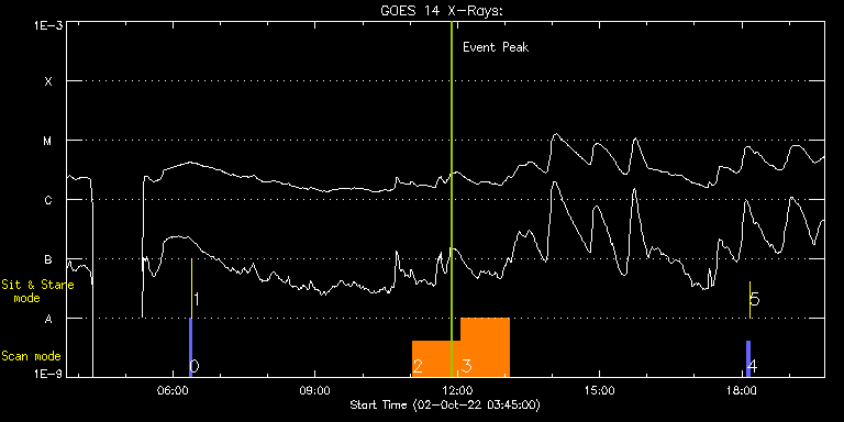 EIS Observation timeline overlay to GOES-Xray curve Code 1" 2" 40" 266" EIS Observations list for this event: STUDY ACRONYM ID DATE OBSERVED DESCRIPTION NOAA# TARGET 0 PRY_slot_contextLITE | 83489 | 2022/10/02 06:20:27 | pointing monitoring | | Active Region TIMELINE ID DATE OBSERVED FITS FILE XCEN (+W/-E) YCEN (+N/-S) DUR ----------------------------------------------------------------------------------------------------------------- 83489 | 2022/10/02 06:20:27.000 | eis_l0_20221002_062027.fits.gz | 0.76 | -195.00 | 2m56s 1 XRT_synop_AIA | 83490 | 2022/10/02 06:23:42 | pointing monitoring | | Quiet Sun TIMELINE ID DATE OBSERVED FITS FILE XCEN (+W/-E) YCEN (+N/-S) DUR ----------------------------------------------------------------------------------------------------------------- 83490 | 2022/10/02 06:23:42.000 | eis_l0_20221002_062342.fits.gz | 0.51 | -207.00 | 10s 2 Atlas_60 | 83509 | 2022/10/02 11:03:20 | AR studies | 3112 | Quiet Sun TIMELINE ID DATE OBSERVED FITS FILE XCEN (+W/-E) YCEN (+N/-S) DUR ----------------------------------------------------------------------------------------------------------------- 83509 | 2022/10/02 11:03:20.000 | eis_l0_20221002_110320.fits.gz | -792.30 | 327.32 | 1h1m39s 3 HPW021VEL260x512v2 | 83510 | 2022/10/02 12:05:08 | AR studies | | Active Region TIMELINE ID DATE OBSERVED FITS FILE XCEN (+W/-E) YCEN (+N/-S) DUR ----------------------------------------------------------------------------------------------------------------- 83510 | 2022/10/02 12:05:08.000 | eis_l0_20221002_120508.fits.gz | -758.56 | -23.61 | 1h0m45s 4 PRY_slot_contextLITE | 83491 | 2022/10/02 18:06:50 | pointing monitoring | | Active Region TIMELINE ID DATE OBSERVED FITS FILE XCEN (+W/-E) YCEN (+N/-S) DUR ----------------------------------------------------------------------------------------------------------------- 83491 | 2022/10/02 18:06:50.000 | eis_l0_20221002_180650.fits.gz | 0.76 | -195.00 | 2m57s 5 XRT_synop_AIA | 83492 | 2022/10/02 18:10:05 | pointing monitoring | | Quiet Sun TIMELINE ID DATE OBSERVED FITS FILE XCEN (+W/-E) YCEN (+N/-S) DUR ----------------------------------------------------------------------------------------------------------------- 83492 | 2022/10/02 18:10:05.000 | eis_l0_20221002_181005.fits.gz | 0.43 | -207.00 | 10s : Check study information : Download file : View thumbnails For this event, also check for: