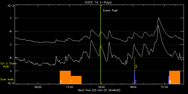 EIS Observation timeline overlay to GOES-Xray curve Code 1" 2" 40" 266" EIS Observations list for this event: STUDY ACRONYM ID DATE OBSERVED DESCRIPTION NOAA# TARGET 0 Atlas_60 | 83509 | 2022/10/02 11:03:20 | AR studies | 3112 | Quiet Sun TIMELINE ID DATE OBSERVED FITS FILE XCEN (+W/-E) YCEN (+N/-S) DUR ----------------------------------------------------------------------------------------------------------------- 83509 | 2022/10/02 11:03:20.000 | eis_l0_20221002_110320.fits.gz | -792.30 | 327.32 | 1h1m39s 1 HPW021VEL260x512v2 | 83510 | 2022/10/02 12:05:08 | AR studies | | Active Region TIMELINE ID DATE OBSERVED FITS FILE XCEN (+W/-E) YCEN (+N/-S) DUR ----------------------------------------------------------------------------------------------------------------- 83510 | 2022/10/02 12:05:08.000 | eis_l0_20221002_120508.fits.gz | -758.56 | -23.61 | 1h0m45s 2 PRY_slot_contextLITE | 83491 | 2022/10/02 18:06:50 | pointing monitoring | | Active Region TIMELINE ID DATE OBSERVED FITS FILE XCEN (+W/-E) YCEN (+N/-S) DUR ----------------------------------------------------------------------------------------------------------------- 83491 | 2022/10/02 18:06:50.000 | eis_l0_20221002_180650.fits.gz | 0.76 | -195.00 | 2m57s 3 XRT_synop_AIA | 83492 | 2022/10/02 18:10:05 | pointing monitoring | | Quiet Sun TIMELINE ID DATE OBSERVED FITS FILE XCEN (+W/-E) YCEN (+N/-S) DUR ----------------------------------------------------------------------------------------------------------------- 83492 | 2022/10/02 18:10:05.000 | eis_l0_20221002_181005.fits.gz | 0.43 | -207.00 | 10s 4 PRY_slot_contextLITE | 83507 | 2022/10/02 21:22:06 | EIS Spectral Atlas | | Active Region TIMELINE ID DATE OBSERVED FITS FILE XCEN (+W/-E) YCEN (+N/-S) DUR ----------------------------------------------------------------------------------------------------------------- 83507 | 2022/10/02 21:22:06.000 | eis_l0_20221002_212206.fits.gz | -752.49 | 9.21 | 2m57s 5 Atlas_60 | 83508 | 2022/10/02 21:25:28 | EIS Spectral Atlas | 3112 | Quiet Sun TIMELINE ID DATE OBSERVED FITS FILE XCEN (+W/-E) YCEN (+N/-S) DUR ----------------------------------------------------------------------------------------------------------------- 83508 | 2022/10/02 21:25:28.000 | eis_l0_20221002_212528.fits.gz | -751.99 | 269.13 | 1h1m40s : Check study information : Download file : View thumbnails For this event, also check for: