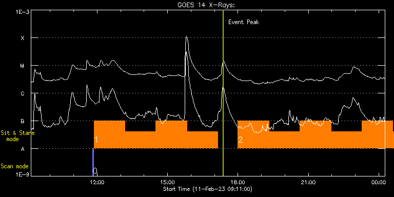 EIS Observation timeline overlay to GOES-Xray curve