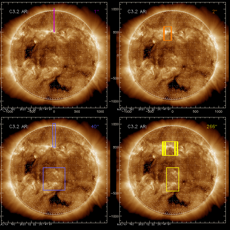EIS Observation timeline overlay to GOES-Xray curve Code 1" 2" 40" 266" EIS Observations list for this event: STUDY ACRONYM ID DATE OBSERVED DESCRIPTION NOAA# TARGET 0 FlareResponse01 | 85241 | 2023/02/22 03:23:50 | Major Flare Watch | | Flare TIMELINE ID DATE OBSERVED FITS FILE XCEN (+W/-E) YCEN (+N/-S) DUR ----------------------------------------------------------------------------------------------------------------- 85241 | 2023/02/22 03:23:50.000 | eis_l0_20230222_032350.fits.gz | -114.89 | 463.76 | 8m52s 85241 | 2023/02/22 03:32:45.000 | eis_l0_20230222_033245.fits.gz | -113.65 | 463.68 | 8m52s 85241 | 2023/02/22 03:41:40.000 | eis_l0_20230222_034140.fits.gz | -112.42 | 463.68 | 8m52s 85241 | 2023/02/22 03:50:35.000 | eis_l0_20230222_035035.fits.gz | -111.26 | 463.68 | 8m52s 85241 | 2023/02/22 03:59:30.000 | eis_l0_20230222_035930.fits.gz | -110.02 | 463.68 | 8m52s 85241 | 2023/02/22 04:08:25.000 | eis_l0_20230222_040825.fits.gz | -108.79 | 463.61 | 8m52s 1 FlareResponse01 | 85242 | 2023/02/22 05:00:13 | Major Flare Watch | | Flare TIMELINE ID DATE OBSERVED FITS FILE XCEN (+W/-E) YCEN (+N/-S) DUR ----------------------------------------------------------------------------------------------------------------- 85242 | 2023/02/22 05:00:13.000 | eis_l0_20230222_050013.fits.gz | -101.83 | 463.92 | 8m52s 85242 | 2023/02/22 05:09:08.000 | eis_l0_20230222_050908.fits.gz | -100.60 | 463.84 | 8m52s 85242 | 2023/02/22 05:18:04.000 | eis_l0_20230222_051804.fits.gz | -99.36 | 463.92 | 8m51s 85242 | 2023/02/22 05:26:59.000 | eis_l0_20230222_052659.fits.gz | -98.13 | 463.84 | 8m52s 2 PRY_slot_contextLITE | 85226 | 2023/02/22 05:42:20 | Pointing Monitoring | 3230 | Active Region TIMELINE ID DATE OBSERVED FITS FILE XCEN (+W/-E) YCEN (+N/-S) DUR ----------------------------------------------------------------------------------------------------------------- 85226 | 2023/02/22 05:42:20.000 | eis_l0_20230222_054220.fits.gz | 0.84 | -195.08 | 2m57s 3 XRT_synop_AIA | 85227 | 2023/02/22 05:45:36 | Pointing Monitoring | 3230 | Quiet Sun TIMELINE ID DATE OBSERVED FITS FILE XCEN (+W/-E) YCEN (+N/-S) DUR ----------------------------------------------------------------------------------------------------------------- 85227 | 2023/02/22 05:45:36.000 | eis_l0_20230222_054536.fits.gz | 0.59 | -207.08 | 10s 4 Flare266_Hunter01 | 85245 | 2023/02/22 06:38:40 | Major Flare Watch | | Flare TIMELINE ID DATE OBSERVED FITS FILE XCEN (+W/-E) YCEN (+N/-S) DUR ----------------------------------------------------------------------------------------------------------------- 85245 | 2023/02/22 06:38:40.000 | eis_l0_20230222_063840.fits.gz | -88.66 | 463.99 | 56m22s 85245 | 2023/02/22 07:35:54.000 | eis_l0_20230222_073554.fits.gz | -80.85 | 464.07 | 56m23s 85245 | 2023/02/22 08:33:09.000 | eis_l0_20230222_083309.fits.gz | -73.05 | 464.23 | 56m22s 85245 | 2023/02/22 09:30:24.000 | eis_l0_20230222_093024.fits.gz | -65.33 | 464.23 | 56m22s 5 Flare266_Hunter01 | 85246 | 2023/02/22 12:53:14 | Major Flare Watch | 3235 | Flare TIMELINE ID DATE OBSERVED FITS FILE XCEN (+W/-E) YCEN (+N/-S) DUR ----------------------------------------------------------------------------------------------------------------- 85246 | 2023/02/22 12:53:14.000 | eis_l0_20230222_125314.fits.gz | -37.67 | 464.38 | 56m23s 85246 | 2023/02/22 13:50:29.000 | eis_l0_20230222_135029.fits.gz | -29.72 | 464.30 | 56m22s 85246 | 2023/02/22 14:47:43.000 | eis_l0_20230222_144743.fits.gz | -21.99 | 464.46 | 56m22s 85246 | 2023/02/22 15:44:58.000 | eis_l0_20230222_154458.fits.gz | -14.19 | 464.38 | 56m22s 6 Alignment_modify_v2 | 85221 | 2023/02/22 17:54:34 | Co-alignment N-Limb | | Quiet Sun TIMELINE ID DATE OBSERVED FITS FILE XCEN (+W/-E) YCEN (+N/-S) DUR ----------------------------------------------------------------------------------------------------------------- 85221 | 2023/02/22 17:54:34.000 | eis_l0_20230222_175434.fits.gz | 0.43 | 752.98 | 1m 85221 | 2023/02/22 17:56:00.000 | eis_l0_20230222_175600.fits.gz | 0.43 | 752.91 | 2m34s 85221 | 2023/02/22 17:59:08.000 | eis_l0_20230222_175908.fits.gz | 0.43 | 752.83 | 2m33s 85221 | 2023/02/22 18:02:15.000 | eis_l0_20230222_180215.fits.gz | 0.43 | 752.83 | 2m34s 85221 | 2023/02/22 18:05:23.000 | eis_l0_20230222_180523.fits.gz | 0.51 | 752.91 | 2m33s 85221 | 2023/02/22 18:08:30.000 | eis_l0_20230222_180830.fits.gz | 0.43 | 752.91 | 2m34s 85221 | 2023/02/22 18:11:38.000 | eis_l0_20230222_181138.fits.gz | 0.51 | 752.91 | 2m34s 85221 | 2023/02/22 18:14:45.000 | eis_l0_20230222_181445.fits.gz | 0.43 | 752.91 | 2m34s 85221 | 2023/02/22 18:17:53.000 | eis_l0_20230222_181753.fits.gz | 0.51 | 752.83 | 2m34s 85221 | 2023/02/22 18:21:00.000 | eis_l0_20230222_182100.fits.gz | 0.43 | 752.83 | 2m34s 85221 | 2023/02/22 18:24:08.000 | eis_l0_20230222_182408.fits.gz | 0.51 | 752.83 | 2m34s 85221 | 2023/02/22 18:27:16.000 | eis_l0_20230222_182716.fits.gz | 0.51 | 752.91 | 2m34s 85221 | 2023/02/22 18:30:23.000 | eis_l0_20230222_183023.fits.gz | 0.51 | 752.91 | 2m34s 85221 | 2023/02/22 18:33:31.000 | eis_l0_20230222_183331.fits.gz | 0.43 | 752.91 | 2m34s 85221 | 2023/02/22 18:36:38.000 | eis_l0_20230222_183638.fits.gz | 0.43 | 752.91 | 2m34s 85221 | 2023/02/22 18:39:46.000 | eis_l0_20230222_183946.fits.gz | 0.43 | 752.83 | 2m34s 85221 | 2023/02/22 18:42:54.000 | eis_l0_20230222_184254.fits.gz | 0.43 | 752.91 | 2m33s 85221 | 2023/02/22 18:46:01.000 | eis_l0_20230222_184601.fits.gz | 0.51 | 752.83 | 2m34s 85221 | 2023/02/22 18:49:09.000 | eis_l0_20230222_184909.fits.gz | 0.43 | 752.91 | 2m34s 85221 | 2023/02/22 18:52:16.000 | eis_l0_20230222_185216.fits.gz | 0.43 | 752.91 | 2m34s 85221 | 2023/02/22 18:55:24.000 | eis_l0_20230222_185524.fits.gz | 0.51 | 752.83 | 2m34s 85221 | 2023/02/22 18:58:31.000 | eis_l0_20230222_185831.fits.gz | 0.51 | 752.91 | 2m34s 85221 | 2023/02/22 19:01:39.000 | eis_l0_20230222_190139.fits.gz | 0.51 | 752.83 | 2m34s 85221 | 2023/02/22 19:04:46.000 | eis_l0_20230222_190446.fits.gz | 0.51 | 752.83 | 2m34s 85221 | 2023/02