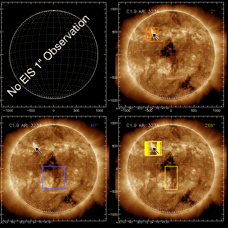EIS Observation timeline overlay to GOES-Xray curve Code 1" 2" 40" 266" EIS Observations list for this event: STUDY ACRONYM ID DATE OBSERVED DESCRIPTION NOAA# TARGET 0 FlareResponse01 | 85257 | 2023/02/24 04:32:48 | Major Flare Watch | | Flare TIMELINE ID DATE OBSERVED FITS FILE XCEN (+W/-E) YCEN (+N/-S) DUR ----------------------------------------------------------------------------------------------------------------- 85257 | 2023/02/24 04:32:48.000 | eis_l0_20230224_043248.fits.gz | -454.76 | 432.87 | 8m52s 85257 | 2023/02/24 04:41:44.000 | eis_l0_20230224_044144.fits.gz | -453.68 | 432.95 | 8m51s 85257 | 2023/02/24 04:50:38.000 | eis_l0_20230224_045038.fits.gz | -452.60 | 433.03 | 8m52s 85257 | 2023/02/24 04:59:34.000 | eis_l0_20230224_045934.fits.gz | -451.52 | 433.03 | 8m51s 85257 | 2023/02/24 05:08:29.000 | eis_l0_20230224_050829.fits.gz | -450.51 | 433.18 | 8m52s 85257 | 2023/02/24 05:17:24.000 | eis_l0_20230224_051724.fits.gz | -449.43 | 433.26 | 8m51s 1 PRY_slot_contextLITE | 85260 | 2023/02/24 06:17:49 | Pointing Monitoring | 3230 | Active Region TIMELINE ID DATE OBSERVED FITS FILE XCEN (+W/-E) YCEN (+N/-S) DUR ----------------------------------------------------------------------------------------------------------------- 85260 | 2023/02/24 06:17:49.000 | eis_l0_20230224_061749.fits.gz | 0.84 | -195.00 | 2m56s 2 XRT_synop_AIA | 85261 | 2023/02/24 06:21:04 | Pointing Monitoring | 3230 | Quiet Sun TIMELINE ID DATE OBSERVED FITS FILE XCEN (+W/-E) YCEN (+N/-S) DUR ----------------------------------------------------------------------------------------------------------------- 85261 | 2023/02/24 06:21:04.000 | eis_l0_20230224_062104.fits.gz | 0.51 | -207.00 | 10s 3 Flare266_Hunter01 | 85253 | 2023/02/24 06:26:04 | Major Flare Watch | | Flare TIMELINE ID DATE OBSERVED FITS FILE XCEN (+W/-E) YCEN (+N/-S) DUR ----------------------------------------------------------------------------------------------------------------- 85253 | 2023/02/24 06:26:04.000 | eis_l0_20230224_062604.fits.gz | -441.43 | 433.95 | 56m22s 85253 | 2023/02/24 07:23:18.000 | eis_l0_20230224_072318.fits.gz | -434.40 | 434.34 | 56m22s 85253 | 2023/02/24 08:20:33.000 | eis_l0_20230224_082033.fits.gz | -427.37 | 434.80 | 56m22s 85253 | 2023/02/24 09:17:47.000 | eis_l0_20230224_091747.fits.gz | -420.34 | 435.34 | 56m22s 4 Flare266_Hunter01 | 85255 | 2023/02/24 11:25:12 | Flare Watch | 3234 | Flare TIMELINE ID DATE OBSERVED FITS FILE XCEN (+W/-E) YCEN (+N/-S) DUR ----------------------------------------------------------------------------------------------------------------- 85255 | 2023/02/24 11:25:12.000 | eis_l0_20230224_112512.fits.gz | -404.58 | 436.27 | 56m22s 85255 | 2023/02/24 12:22:26.000 | eis_l0_20230224_122226.fits.gz | -397.47 | 436.66 | 56m22s 85255 | 2023/02/24 13:19:40.000 | eis_l0_20230224_131940.fits.gz | -390.21 | 437.12 | 56m23s 85255 | 2023/02/24 14:16:55.000 | eis_l0_20230224_141655.fits.gz | -383.11 | 437.58 | 56m22s 5 FlareResponse01 | 85258 | 2023/02/24 16:20:18 | Major Flare Watch | 3234 | Flare TIMELINE ID DATE OBSERVED FITS FILE XCEN (+W/-E) YCEN (+N/-S) DUR ----------------------------------------------------------------------------------------------------------------- 85258 | 2023/02/24 16:20:18.000 | eis_l0_20230224_162018.fits.gz | -367.24 | 438.51 | 8m52s 85258 | 2023/02/24 16:29:13.000 | eis_l0_20230224_162913.fits.gz | -366.08 | 438.51 | 8m52s 85258 | 2023/02/24 16:38:08.000 | eis_l0_20230224_163808.fits.gz | -364.92 | 438.51 | 8m52s 85258 | 2023/02/24 16:47:04.000 | eis_l0_20230224_164704.fits.gz | -363.84 | 438.59 | 8m52s 85258 | 2023/02/24 16:55:59.000 | eis_l0_20230224_165559.fits.gz | -362.68 | 438.74 | 8m52s 85258 | 2023/02/24 17:04:54.000 | eis_l0_20230224_170454.fits.gz | -361.52 | 438.74 | 8m52s 85258 | 2023/02/24 17:13:49.000 | eis_l0_20230224_171349.fits.gz | -360.36 | 438.74 | 8m52s 6 Flare266_Hunter01 | 85256 | 2023/02/24 18:14:33 | Flare Watch | 3234 | Flare TIMELINE ID DATE OBSERVED FITS FILE XCEN (+W/-E) YCEN (+N/-S) DUR ----------------------------------------------------------------------------------------------------------------- 85256 | 2023/02/24 18:14:33.000 | eis_l0_20230224_181433.fits.gz | -352.98 | 439.21 | 56m22s 85256 | 2023/02/24 19:11:47.000 | eis_l0_20230224_191147.fits.gz | -345.56 | 439.59 | 56m23s 85256 | 2023/02/24 20:09:02.000 | eis_l0_20230224_200902.fits.gz | -338.15 | 439.90 | 56m22s 85256 | 2023/02/24 21:06:16.000 | eis_l0_20230224_210616.fits.gz | -330.81 | 440.36 | 56m23s : Check study information : Download file : View thumbnails For this event, also check for: