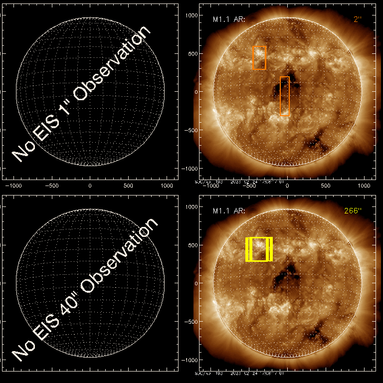 EIS Observation timeline overlay to GOES-Xray curve Code 1" 2" 40" 266" EIS Observations list for this event: STUDY ACRONYM ID DATE OBSERVED DESCRIPTION NOAA# TARGET 0 Flare266_Hunter01 | 85255 | 2023/02/24 11:25:12 | Flare Watch | 3234 | Flare TIMELINE ID DATE OBSERVED FITS FILE XCEN (+W/-E) YCEN (+N/-S) DUR ----------------------------------------------------------------------------------------------------------------- 85255 | 2023/02/24 11:25:12.000 | eis_l0_20230224_112512.fits.gz | -404.58 | 436.27 | 56m22s 85255 | 2023/02/24 12:22:26.000 | eis_l0_20230224_122226.fits.gz | -397.47 | 436.66 | 56m22s 85255 | 2023/02/24 13:19:40.000 | eis_l0_20230224_131940.fits.gz | -390.21 | 437.12 | 56m23s 85255 | 2023/02/24 14:16:55.000 | eis_l0_20230224_141655.fits.gz | -383.11 | 437.58 | 56m22s 1 FlareResponse01 | 85258 | 2023/02/24 16:20:18 | Major Flare Watch | 3234 | Flare TIMELINE ID DATE OBSERVED FITS FILE XCEN (+W/-E) YCEN (+N/-S) DUR ----------------------------------------------------------------------------------------------------------------- 85258 | 2023/02/24 16:20:18.000 | eis_l0_20230224_162018.fits.gz | -367.24 | 438.51 | 8m52s 85258 | 2023/02/24 16:29:13.000 | eis_l0_20230224_162913.fits.gz | -366.08 | 438.51 | 8m52s 85258 | 2023/02/24 16:38:08.000 | eis_l0_20230224_163808.fits.gz | -364.92 | 438.51 | 8m52s 85258 | 2023/02/24 16:47:04.000 | eis_l0_20230224_164704.fits.gz | -363.84 | 438.59 | 8m52s 85258 | 2023/02/24 16:55:59.000 | eis_l0_20230224_165559.fits.gz | -362.68 | 438.74 | 8m52s 85258 | 2023/02/24 17:04:54.000 | eis_l0_20230224_170454.fits.gz | -361.52 | 438.74 | 8m52s 85258 | 2023/02/24 17:13:49.000 | eis_l0_20230224_171349.fits.gz | -360.36 | 438.74 | 8m52s 2 Flare266_Hunter01 | 85256 | 2023/02/24 18:14:33 | Flare Watch | 3234 | Flare TIMELINE ID DATE OBSERVED FITS FILE XCEN (+W/-E) YCEN (+N/-S) DUR ----------------------------------------------------------------------------------------------------------------- 85256 | 2023/02/24 18:14:33.000 | eis_l0_20230224_181433.fits.gz | -352.98 | 439.21 | 56m22s 85256 | 2023/02/24 19:11:47.000 | eis_l0_20230224_191147.fits.gz | -345.56 | 439.59 | 56m23s 85256 | 2023/02/24 20:09:02.000 | eis_l0_20230224_200902.fits.gz | -338.15 | 439.90 | 56m22s 85256 | 2023/02/24 21:06:16.000 | eis_l0_20230224_210616.fits.gz | -330.81 | 440.36 | 56m23s 3 Large_CH_Map | 85249 | 2023/02/25 00:28:48 | HOP 393 (Cycle 24/25 equatorial transi | | Quiet Sun TIMELINE ID DATE OBSERVED FITS FILE XCEN (+W/-E) YCEN (+N/-S) DUR ----------------------------------------------------------------------------------------------------------------- 85249 | 2023/02/25 00:28:48.000 | eis_l0_20230225_002848.fits.gz | -33.38 | -62.23 | 1h1m53s : Check study information : Download file : View thumbnails For this event, also check for: