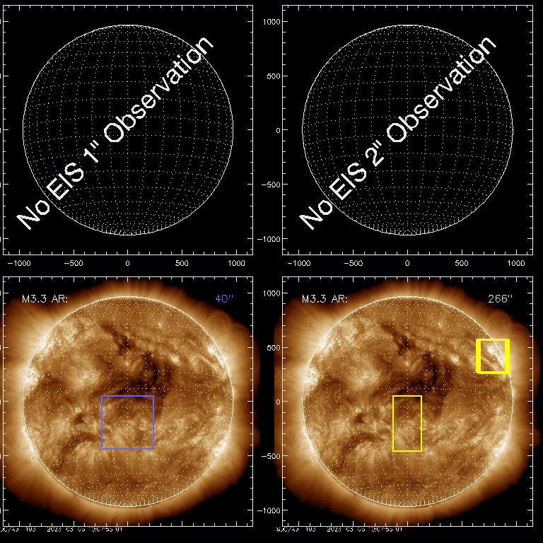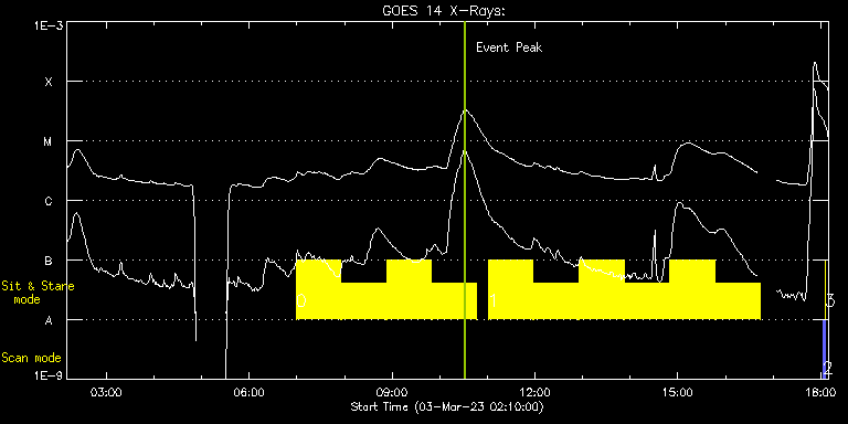 EIS Observation timeline overlay to GOES-Xray curve Code 1" 2" 40" 266" EIS Observations list for this event: STUDY ACRONYM ID DATE OBSERVED DESCRIPTION NOAA# TARGET 0 Flare266_Hunter01 | 85337 | 2023/03/03 06:58:42 | Flare hunt on AR13234 | 3234 | Flare TIMELINE ID DATE OBSERVED FITS FILE XCEN (+W/-E) YCEN (+N/-S) DUR ----------------------------------------------------------------------------------------------------------------- 85337 | 2023/03/03 06:58:42.000 | eis_l0_20230303_065842.fits.gz | 771.43 | 419.09 | 56m23s 85337 | 2023/03/03 07:55:57.000 | eis_l0_20230303_075557.fits.gz | 774.98 | 418.09 | 56m22s 85337 | 2023/03/03 08:53:11.000 | eis_l0_20230303_085311.fits.gz | 778.38 | 417.24 | 56m23s 85337 | 2023/03/03 09:50:26.000 | eis_l0_20230303_095026.fits.gz | 781.85 | 416.23 | 56m22s 1 Flare266_Hunter01 | 85338 | 2023/03/03 11:01:12 | Flare hunt on AR13234 | 3234 | Flare TIMELINE ID DATE OBSERVED FITS FILE XCEN (+W/-E) YCEN (+N/-S) DUR ----------------------------------------------------------------------------------------------------------------- 85338 | 2023/03/03 11:01:12.000 | eis_l0_20230303_110112.fits.gz | 785.87 | 415.15 | 56m23s 85338 | 2023/03/03 11:58:27.000 | eis_l0_20230303_115827.fits.gz | 789.19 | 414.15 | 56m22s 85338 | 2023/03/03 12:55:41.000 | eis_l0_20230303_125541.fits.gz | 792.36 | 413.22 | 56m23s 85338 | 2023/03/03 13:52:56.000 | eis_l0_20230303_135256.fits.gz | 795.53 | 412.29 | 56m22s 85338 | 2023/03/03 14:50:10.000 | eis_l0_20230303_145010.fits.gz | 798.62 | 411.29 | 56m23s 85338 | 2023/03/03 15:47:25.000 | eis_l0_20230303_154725.fits.gz | 801.47 | 410.44 | 56m22s 2 PRY_slot_contextLITE | 85333 | 2023/03/03 18:02:26 | Pointing monitoring | | Active Region TIMELINE ID DATE OBSERVED FITS FILE XCEN (+W/-E) YCEN (+N/-S) DUR ----------------------------------------------------------------------------------------------------------------- 85333 | 2023/03/03 18:02:26.000 | eis_l0_20230303_180226.fits.gz | 0.61 | -194.92 | 2m57s 3 XRT_synop_AIA | 85334 | 2023/03/03 18:05:41 | Pointing monitoring | | Quiet Sun TIMELINE ID DATE OBSERVED FITS FILE XCEN (+W/-E) YCEN (+N/-S) DUR ----------------------------------------------------------------------------------------------------------------- 85334 | 2023/03/03 18:05:41.000 | eis_l0_20230303_180541.fits.gz | 0.43 | -207.00 | 10s : Check study information : Download file : View thumbnails For this event, also check for: