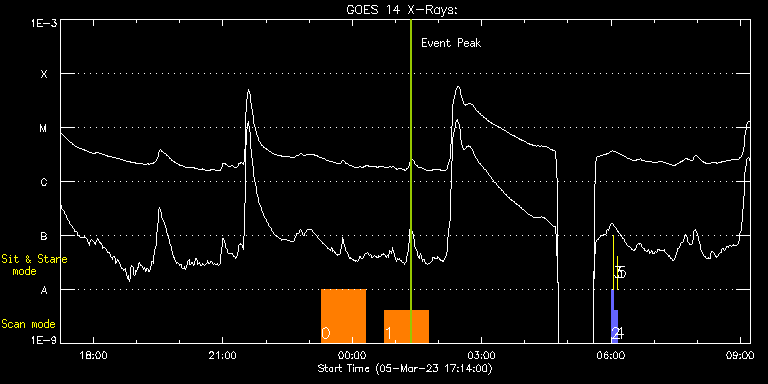EIS Observation timeline overlay to GOES-Xray curve Code 1" 2" 40" 266" EIS Observations list for this event: STUDY ACRONYM ID DATE OBSERVED DESCRIPTION NOAA# TARGET 0 Atlas_60 | 85362 | 2023/03/05 23:16:43 | HOP 451 (Plasma composition evolution | | Quiet Sun TIMELINE ID DATE OBSERVED FITS FILE XCEN (+W/-E) YCEN (+N/-S) DUR ----------------------------------------------------------------------------------------------------------------- 85362 | 2023/03/05 23:16:43.000 | eis_l0_20230305_231643.fits.gz | -405.75 | 331.50 | 1h1m39s 1 Atlas_60 | 85363 | 2023/03/06 00:44:43 | HOP 451 (Plasma composition evolution | | Quiet Sun TIMELINE ID DATE OBSERVED FITS FILE XCEN (+W/-E) YCEN (+N/-S) DUR ----------------------------------------------------------------------------------------------------------------- 85363 | 2023/03/06 00:44:43.000 | eis_l0_20230306_004443.fits.gz | -503.37 | 272.19 | 1h1m39s 2 PRY_slot_contextLITE | 85355 | 2023/03/06 06:00:19 | Pointing Monitoring | 3240 | Active Region TIMELINE ID DATE OBSERVED FITS FILE XCEN (+W/-E) YCEN (+N/-S) DUR ----------------------------------------------------------------------------------------------------------------- 85355 | 2023/03/06 06:00:19.000 | eis_l0_20230306_060019.fits.gz | 0.68 | -195.00 | 2m56s 3 XRT_synop_AIA | 85356 | 2023/03/06 06:03:34 | Pointing Monitoring | | Quiet Sun TIMELINE ID DATE OBSERVED FITS FILE XCEN (+W/-E) YCEN (+N/-S) DUR ----------------------------------------------------------------------------------------------------------------- 85356 | 2023/03/06 06:03:34.000 | eis_l0_20230306_060334.fits.gz | 0.51 | -207.00 | 10s 4 PRY_slot_contextLITE | 85357 | 2023/03/06 06:05:26 | Pointing Monitoring | 3240 | Active Region TIMELINE ID DATE OBSERVED FITS FILE XCEN (+W/-E) YCEN (+N/-S) DUR ----------------------------------------------------------------------------------------------------------------- 85357 | 2023/03/06 06:05:26.000 | eis_l0_20230306_060526.fits.gz | 0.76 | -195.00 | 2m56s 5 XRT_synop_AIA | 85358 | 2023/03/06 06:08:41 | Pointing Monitoring | | Quiet Sun TIMELINE ID DATE OBSERVED FITS FILE XCEN (+W/-E) YCEN (+N/-S) DUR ----------------------------------------------------------------------------------------------------------------- 85358 | 2023/03/06 06:08:41.000 | eis_l0_20230306_060841.fits.gz | 0.51 | -207.00 | 10s : Check study information : Download file : View thumbnails For this event, also check for: