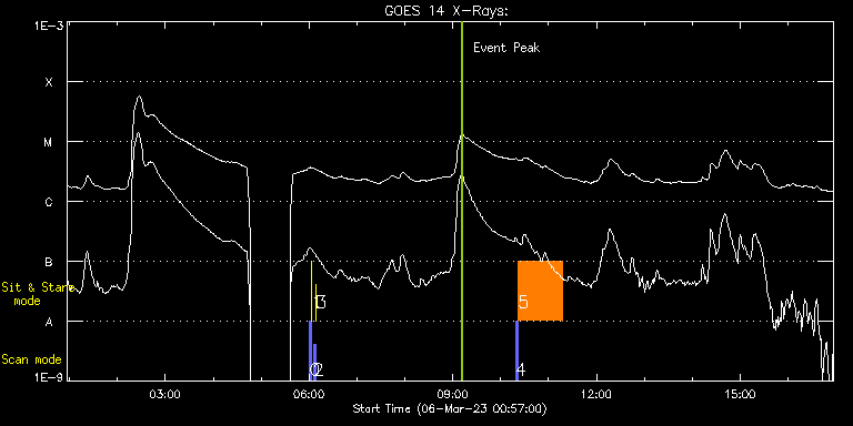 EIS Observation timeline overlay to GOES-Xray curve Code 1" 2" 40" 266" EIS Observations list for this event: STUDY ACRONYM ID DATE OBSERVED DESCRIPTION NOAA# TARGET 0 PRY_slot_contextLITE | 85355 | 2023/03/06 06:00:19 | Pointing Monitoring | 3240 | Active Region TIMELINE ID DATE OBSERVED FITS FILE XCEN (+W/-E) YCEN (+N/-S) DUR ----------------------------------------------------------------------------------------------------------------- 85355 | 2023/03/06 06:00:19.000 | eis_l0_20230306_060019.fits.gz | 0.68 | -195.00 | 2m56s 1 XRT_synop_AIA | 85356 | 2023/03/06 06:03:34 | Pointing Monitoring | | Quiet Sun TIMELINE ID DATE OBSERVED FITS FILE XCEN (+W/-E) YCEN (+N/-S) DUR ----------------------------------------------------------------------------------------------------------------- 85356 | 2023/03/06 06:03:34.000 | eis_l0_20230306_060334.fits.gz | 0.51 | -207.00 | 10s 2 PRY_slot_contextLITE | 85357 | 2023/03/06 06:05:26 | Pointing Monitoring | 3240 | Active Region TIMELINE ID DATE OBSERVED FITS FILE XCEN (+W/-E) YCEN (+N/-S) DUR ----------------------------------------------------------------------------------------------------------------- 85357 | 2023/03/06 06:05:26.000 | eis_l0_20230306_060526.fits.gz | 0.76 | -195.00 | 2m56s 3 XRT_synop_AIA | 85358 | 2023/03/06 06:08:41 | Pointing Monitoring | | Quiet Sun TIMELINE ID DATE OBSERVED FITS FILE XCEN (+W/-E) YCEN (+N/-S) DUR ----------------------------------------------------------------------------------------------------------------- 85358 | 2023/03/06 06:08:41.000 | eis_l0_20230306_060841.fits.gz | 0.51 | -207.00 | 10s 4 PRY_slot_context_v3 | 85351 | 2023/03/06 10:18:56 | Evolution of abundance in AR core loop | 3240 | Active Region TIMELINE ID DATE OBSERVED FITS FILE XCEN (+W/-E) YCEN (+N/-S) DUR ----------------------------------------------------------------------------------------------------------------- 85351 | 2023/03/06 10:18:56.000 | eis_l0_20230306_101856.fits.gz | -361.66 | 70.60 | 2m56s 5 HPW021VEL001x512v2 | 85352 | 2023/03/06 10:22:18 | Evolution of abundance in AR core loop | | Active Region TIMELINE ID DATE OBSERVED FITS FILE XCEN (+W/-E) YCEN (+N/-S) DUR ----------------------------------------------------------------------------------------------------------------- 85352 | 2023/03/06 10:22:18.000 | eis_l0_20230306_102218.fits.gz | -361.35 | 58.67 | 55m49s : Check study information : Download file : View thumbnails For this event, also check for: