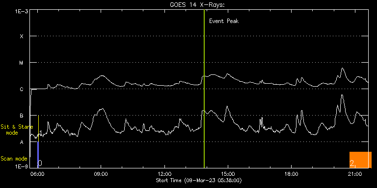 EIS Observation timeline overlay to GOES-Xray curve Code 1" 2" 40" 266" EIS Observations list for this event: STUDY ACRONYM ID DATE OBSERVED DESCRIPTION NOAA# TARGET 0 PRY_slot_contextLITE | 85373 | 2023/03/09 06:00:19 | Pointing Monitoring | 3240 | Active Region TIMELINE ID DATE OBSERVED FITS FILE XCEN (+W/-E) YCEN (+N/-S) DUR ----------------------------------------------------------------------------------------------------------------- 85373 | 2023/03/09 06:00:19.000 | eis_l0_20230309_060019.fits.gz | 0.68 | -194.92 | 2m56s 1 XRT_synop_AIA | 85374 | 2023/03/09 06:03:34 | Pointing Monitoring | | Quiet Sun TIMELINE ID DATE OBSERVED FITS FILE XCEN (+W/-E) YCEN (+N/-S) DUR ----------------------------------------------------------------------------------------------------------------- 85374 | 2023/03/09 06:03:34.000 | eis_l0_20230309_060334.fits.gz | 0.51 | -207.00 | 10s 2 Atlas_60 | 85380 | 2023/03/09 20:44:49 | HOP 451 (Plasma composition evolution | | Quiet Sun TIMELINE ID DATE OBSERVED FITS FILE XCEN (+W/-E) YCEN (+N/-S) DUR ----------------------------------------------------------------------------------------------------------------- 85380 | 2023/03/09 20:44:49.000 | eis_l0_20230309_204449.fits.gz | 441.88 | 269.27 | 1h1m39s : Check study information : Download file : View thumbnails For this event, also check for: