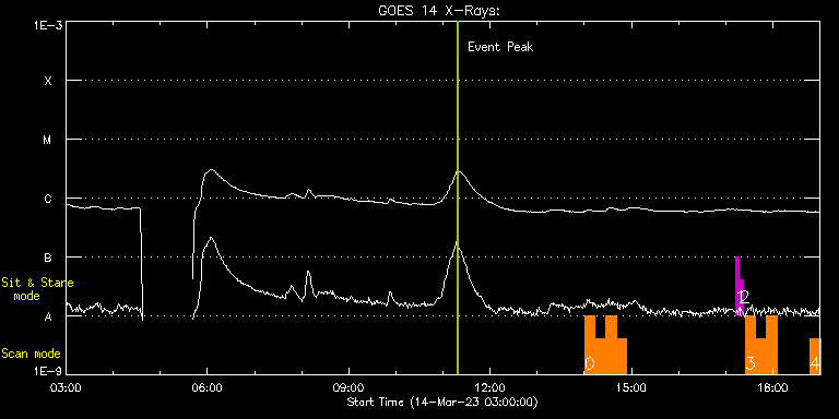 EIS Observation timeline overlay to GOES-Xray curve Code 1" 2" 40" 266" EIS Observations list for this event: STUDY ACRONYM ID DATE OBSERVED DESCRIPTION NOAA# TARGET 0 HH_AR+FLR_RAS_N03 | 85430 | 2023/03/14 14:00:19 | HOP 409 | | Active Region TIMELINE ID DATE OBSERVED FITS FILE XCEN (+W/-E) YCEN (+N/-S) DUR ----------------------------------------------------------------------------------------------------------------- 85430 | 2023/03/14 14:00:19.000 | eis_l0_20230314_140019.fits.gz | -491.19 | 376.94 | 13m19s 85430 | 2023/03/14 14:13:41.000 | eis_l0_20230314_141341.fits.gz | -489.64 | 377.10 | 13m30s 85430 | 2023/03/14 14:27:14.000 | eis_l0_20230314_142714.fits.gz | -488.02 | 377.25 | 13m18s 85430 | 2023/03/14 14:40:35.000 | eis_l0_20230314_144035.fits.gz | -486.40 | 377.33 | 13m19s 1 regcal081 | 85444 | 2023/03/14 17:12:11 | Dark exposures, CCD bottom rows (150s | | Engineering TIMELINE ID DATE OBSERVED FITS FILE XCEN (+W/-E) YCEN (+N/-S) DUR ----------------------------------------------------------------------------------------------------------------- 85444 | 2023/03/14 17:12:11.000 | eis_l0_20230314_171211.fits.gz | -445.69 | -371.36 | 5m2s 2 regcal082 | 85445 | 2023/03/14 17:17:40 | Dark exposures, top CCD rows (150s exp | | Engineering TIMELINE ID DATE OBSERVED FITS FILE XCEN (+W/-E) YCEN (+N/-S) DUR ----------------------------------------------------------------------------------------------------------------- 85445 | 2023/03/14 17:17:40.000 | eis_l0_20230314_171740.fits.gz | -445.08 | 650.72 | 5m2s 3 HH_AR+FLR_RAS_N03 | 85432 | 2023/03/14 17:25:13 | HOP 409 | | Active Region TIMELINE ID DATE OBSERVED FITS FILE XCEN (+W/-E) YCEN (+N/-S) DUR ----------------------------------------------------------------------------------------------------------------- 85432 | 2023/03/14 17:25:13.000 | eis_l0_20230314_172513.fits.gz | -466.70 | 378.80 | 13m19s 85432 | 2023/03/14 17:38:35.000 | eis_l0_20230314_173835.fits.gz | -465.08 | 378.87 | 13m23s 85432 | 2023/03/14 17:52:01.000 | eis_l0_20230314_175201.fits.gz | -463.45 | 379.03 | 13m19s 4 HH_AR+FLR_RAS_N03 | 85433 | 2023/03/14 18:47:40 | HOP 409 | | Active Region TIMELINE ID DATE OBSERVED FITS FILE XCEN (+W/-E) YCEN (+N/-S) DUR ----------------------------------------------------------------------------------------------------------------- 85433 | 2023/03/14 18:47:40.000 | eis_l0_20230314_184740.fits.gz | -456.66 | 379.49 | 13m19s 85433 | 2023/03/14 19:01:02.000 | eis_l0_20230314_190102.fits.gz | -455.11 | 379.57 | 13m19s 85433 | 2023/03/14 19:14:24.000 | eis_l0_20230314_191424.fits.gz | -453.49 | 379.72 | 13m30s 85433 | 2023/03/14 19:27:57.000 | eis_l0_20230314_192757.fits.gz | -451.71 | 379.80 | 13m19s : Check study information : Download file : View thumbnails For this event, also check for: