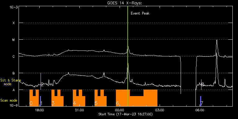 EIS Observation timeline overlay to GOES-Xray curve Code 1" 2" 40" 266" EIS Observations list for this event: STUDY ACRONYM ID DATE OBSERVED DESCRIPTION NOAA# TARGET 0 HH_AR+FLR_RAS_N03 | 85470 | 2023/03/17 17:16:11 | HOP 409 | | Active Region TIMELINE ID DATE OBSERVED FITS FILE XCEN (+W/-E) YCEN (+N/-S) DUR ----------------------------------------------------------------------------------------------------------------- 85470 | 2023/03/17 17:16:11.000 | eis_l0_20230317_171611.fits.gz | -740.39 | 484.52 | 13m19s 85470 | 2023/03/17 17:29:33.000 | eis_l0_20230317_172933.fits.gz | -739.31 | 484.76 | 13m19s 85470 | 2023/03/17 17:42:55.000 | eis_l0_20230317_174255.fits.gz | -738.15 | 484.91 | 13m18s 1 PRY_slot_contextLITE | 85451 | 2023/03/17 18:02:18 | Pointing Monitoring | | Active Region TIMELINE ID DATE OBSERVED FITS FILE XCEN (+W/-E) YCEN (+N/-S) DUR ----------------------------------------------------------------------------------------------------------------- 85451 | 2023/03/17 18:02:18.000 | eis_l0_20230317_180218.fits.gz | 0.76 | -195.00 | 2m56s 2 XRT_synop_AIA | 85452 | 2023/03/17 18:05:56 | Pointing Monitoring | | Quiet Sun TIMELINE ID DATE OBSERVED FITS FILE XCEN (+W/-E) YCEN (+N/-S) DUR ----------------------------------------------------------------------------------------------------------------- 85452 | 2023/03/17 18:05:56.000 | eis_l0_20230317_180556.fits.gz | 0.43 | -206.85 | 10s 3 HH_AR+FLR_RAS_N03 | 85467 | 2023/03/17 18:53:48 | HOP 409 | | Active Region TIMELINE ID DATE OBSERVED FITS FILE XCEN (+W/-E) YCEN (+N/-S) DUR ----------------------------------------------------------------------------------------------------------------- 85467 | 2023/03/17 18:53:48.000 | eis_l0_20230317_185348.fits.gz | -732.05 | 485.84 | 13m19s 85467 | 2023/03/17 19:07:10.000 | eis_l0_20230317_190710.fits.gz | -730.89 | 485.99 | 13m18s 85467 | 2023/03/17 19:20:31.000 | eis_l0_20230317_192031.fits.gz | -729.81 | 486.30 | 13m19s 85467 | 2023/03/17 19:33:53.000 | eis_l0_20230317_193353.fits.gz | -728.57 | 486.38 | 13m19s 4 HH_AR+FLR_RAS_N03 | 85468 | 2023/03/17 20:30:38 | HOP 409 | | Active Region TIMELINE ID DATE OBSERVED FITS FILE XCEN (+W/-E) YCEN (+N/-S) DUR ----------------------------------------------------------------------------------------------------------------- 85468 | 2023/03/17 20:30:38.000 | eis_l0_20230317_203038.fits.gz | -723.70 | 487.23 | 13m19s 85468 | 2023/03/17 20:44:00.000 | eis_l0_20230317_204400.fits.gz | -722.47 | 487.30 | 13m19s 85468 | 2023/03/17 20:57:22.000 | eis_l0_20230317_205722.fits.gz | -721.23 | 487.54 | 13m19s 85468 | 2023/03/17 21:10:44.000 | eis_l0_20230317_211044.fits.gz | -720.07 | 487.69 | 13m19s 5 HH_AR+FLR_RAS_N03 | 85469 | 2023/03/17 22:07:41 | HOP 409 | | Active Region TIMELINE ID DATE OBSERVED FITS FILE XCEN (+W/-E) YCEN (+N/-S) DUR ----------------------------------------------------------------------------------------------------------------- 85469 | 2023/03/17 22:07:41.000 | eis_l0_20230317_220741.fits.gz | -715.05 | 488.39 | 13m19s 85469 | 2023/03/17 22:21:03.000 | eis_l0_20230317_222103.fits.gz | -713.82 | 488.62 | 13m19s 85469 | 2023/03/17 22:34:25.000 | eis_l0_20230317_223425.fits.gz | -712.66 | 488.85 | 13m19s 85469 | 2023/03/17 22:47:47.000 | eis_l0_20230317_224747.fits.gz | -711.42 | 489.08 | 13m19s 6 Large_CH_Map | 85456 | 2023/03/17 23:43:11 | HOP 393 | | Quiet Sun TIMELINE ID DATE OBSERVED FITS FILE XCEN (+W/-E) YCEN (+N/-S) DUR ----------------------------------------------------------------------------------------------------------------- 85456 | 2023/03/17 23:43:11.000 | eis_l0_20230317_234311.fits.gz | -35.52 | -57.12 | 1h1m53s 85456 | 2023/03/18 00:45:09.000 | eis_l0_20230318_004509.fits.gz | -25.86 | -57.19 | 1h1m53s 85456 | 2023/03/18 01:47:07.000 | eis_l0_20230318_014707.fits.gz | -16.13 | -57.19 | 1h1m54s 7 PRY_slot_contextLITE | 85453 | 2023/03/18 06:02:18 | Pointing Monitoring | | Active Region TIMELINE ID DATE OBSERVED FITS FILE XCEN (+W/-E) YCEN (+N/-S) DUR ----------------------------------------------------------------------------------------------------------------- 85453 | 2023/03/18 06:02:18.000 | eis_l0_20230318_060218.fits.gz | 0.68 | -195.00 | 2m56s 8 XRT_synop_AIA | 85454 | 2023/03/18 06:05:55 | Pointing Monitoring | | Quiet Sun TIMELINE ID DATE OBSERVED FITS FILE XCEN (+W/-E) YCEN (+N/-S) DUR ----------------------------------------------------------------------------------------------------------------- 85454 | 2023/03/18 06:05:55.000 | eis_l0_20230318_060555.fits.gz | 0.43 | -206.92 | 10s : Check study information : Download file : View thumbnails For this event, also check for: