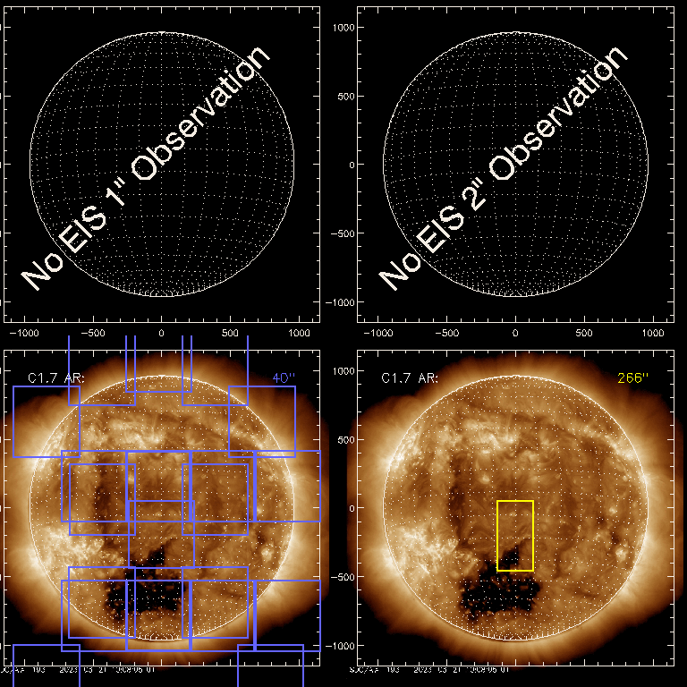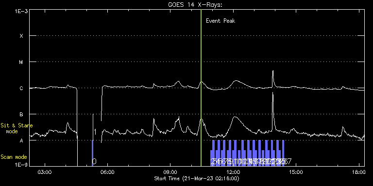 EIS Observation timeline overlay to GOES-Xray curve Code 1" 2" 40" 266" EIS Observations list for this event: STUDY ACRONYM ID DATE OBSERVED DESCRIPTION NOAA# TARGET 0 PRY_slot_contextLITE | 85490 | 2023/03/21 05:15:25 | Pointing Monitoring | | Active Region TIMELINE ID DATE OBSERVED FITS FILE XCEN (+W/-E) YCEN (+N/-S) DUR ----------------------------------------------------------------------------------------------------------------- 85490 | 2023/03/21 05:15:25.000 | eis_l0_20230321_051525.fits.gz | 0.68 | -194.92 | 2m56s 1 XRT_synop_AIA | 85491 | 2023/03/21 05:18:40 | Pointing Monitoring | | Quiet Sun TIMELINE ID DATE OBSERVED FITS FILE XCEN (+W/-E) YCEN (+N/-S) DUR ----------------------------------------------------------------------------------------------------------------- 85491 | 2023/03/21 05:18:40.000 | eis_l0_20230321_051840.fits.gz | 0.43 | -206.92 | 10s 2 full_sun_slot_scan_2 | 85502 | 2023/03/21 10:54:27 | HOP130 01T/15 | | Quiet Sun TIMELINE ID DATE OBSERVED FITS FILE XCEN (+W/-E) YCEN (+N/-S) DUR ----------------------------------------------------------------------------------------------------------------- 85502 | 2023/03/21 10:54:27.000 | eis_l0_20230321_105427.fits.gz | 916.05 | 155.08 | 5m27s 3 full_sun_slot_scan_2 | 85503 | 2023/03/21 11:00:26 | HOP130 01B/15 | | Quiet Sun TIMELINE ID DATE OBSERVED FITS FILE XCEN (+W/-E) YCEN (+N/-S) DUR ----------------------------------------------------------------------------------------------------------------- 85503 | 2023/03/21 11:00:26.000 | eis_l0_20230321_110026.fits.gz | 915.98 | -789.00 | 5m27s 4 full_sun_slot_scan_2 | 85504 | 2023/03/21 11:10:13 | HOP130 02T/15 | | Quiet Sun TIMELINE ID DATE OBSERVED FITS FILE XCEN (+W/-E) YCEN (+N/-S) DUR ----------------------------------------------------------------------------------------------------------------- 85504 | 2023/03/21 11:10:13.000 | eis_l0_20230321_111013.fits.gz | 447.93 | 155.08 | 5m27s 5 full_sun_slot_scan_2 | 85505 | 2023/03/21 11:15:46 | HOP130 02B/15 | | Quiet Sun TIMELINE ID DATE OBSERVED FITS FILE XCEN (+W/-E) YCEN (+N/-S) DUR ----------------------------------------------------------------------------------------------------------------- 85505 | 2023/03/21 11:15:46.000 | eis_l0_20230321_111546.fits.gz | 448.01 | -789.00 | 5m26s 6 full_sun_slot_scan_2 | 85506 | 2023/03/21 11:26:13 | HOP130 03T/15 | | Quiet Sun TIMELINE ID DATE OBSERVED FITS FILE XCEN (+W/-E) YCEN (+N/-S) DUR ----------------------------------------------------------------------------------------------------------------- 85506 | 2023/03/21 11:26:13.000 | eis_l0_20230321_112613.fits.gz | -20.03 | 155.00 | 5m27s 7 full_sun_slot_scan_2 | 85507 | 2023/03/21 11:31:45 | HOP130 03B/15 | | Quiet Sun TIMELINE ID DATE OBSERVED FITS FILE XCEN (+W/-E) YCEN (+N/-S) DUR ----------------------------------------------------------------------------------------------------------------- 85507 | 2023/03/21 11:31:45.000 | eis_l0_20230321_113145.fits.gz | -20.03 | -789.00 | 5m27s 8 full_sun_slot_scan_2 | 85508 | 2023/03/21 11:42:13 | HOP130 04T/15 | 3258 | Quiet Sun TIMELINE ID DATE OBSERVED FITS FILE XCEN (+W/-E) YCEN (+N/-S) DUR ----------------------------------------------------------------------------------------------------------------- 85508 | 2023/03/21 11:42:13.000 | eis_l0_20230321_114213.fits.gz | -488.00 | 155.00 | 5m28s 9 full_sun_slot_scan_2 | 85509 | 2023/03/21 11:47:46 | HOP130 04B/15 | | Quiet Sun TIMELINE ID DATE OBSERVED FITS FILE XCEN (+W/-E) YCEN (+N/-S) DUR ----------------------------------------------------------------------------------------------------------------- 85509 | 2023/03/21 11:47:46.000 | eis_l0_20230321_114746.fits.gz | -488.00 | -789.00 | 5m27s 10 full_sun_slot_scan_2 | 85510 | 2023/03/21 11:58:13 | HOP130 05T/15 | | Quiet Sun TIMELINE ID DATE OBSERVED FITS FILE XCEN (+W/-E) YCEN (+N/-S) DUR ----------------------------------------------------------------------------------------------------------------- 85510 | 2023/03/21 11:58:13.000 | eis_l0_20230321_115813.fits.gz | -9889.43 | -9807.70 | 5m27s 11 full_sun_slot_scan_2 | 85511 | 2023/03/21 12:03:45 | HOP130 05B/15 | | Quiet Sun TIMELINE ID DATE OBSERVED FITS FILE XCEN (+W/-E) YCEN (+N/-S) DUR ----------------------------------------------------------------------------------------------------------------- 85511 | 2023/03/21 12:03:45.000 | eis_l0_20230321_120345.fits.gz | -9889.43 | -10751.70 | 5m27s 12 full_sun_slot_scan_2 | 85512 | 2023/03/21 12:14:13 | HOP130 06T/15 | | Quiet Sun TIMELINE ID DATE OBSERVED FITS FILE XCEN (+W/-E) YCEN (+N/-S) DUR ----------------------------------------------------------------------------------------------------------------- 85512 | 2023/03/21 12:14:13.000 | eis_l0_20230321_121413.fits.gz | 732.44 | 625.05 | 5m28s 13 full_sun_slot_scan_2 | 85513 | 2023/03/21 12:24:13 | HOP130 07T/15 | | Quiet Sun TIMELINE ID DATE OBSERVED FITS FILE XCEN (+W/-E) YCEN (+N/-S) DUR ----------------------------------------------------------------------------------------------------------------- 85513 | 2023/03/21 12:24:13.000 | eis_l0_20230321_122413.fits.gz | 391.08 | 1002.25 | 5m27s 14 full_sun_slot_scan_2 | 85514 | 2023/03/21 12:29:46 | HOP130 07B/15 | | Quiet Sun TIMELINE ID DATE OBSERVED FITS FILE XCEN (+W/-E) YCEN (+N/-S) DUR ----------------------------------------------------------------------------------------------------------------- 85514 | 2023/03/21 12:29:46.000 | eis_l0_20230321_122946.fits.gz | 391.08 | 58.02 | 5m26s 15 full_sun_slot_scan_2 | 85515 | 2023/03/21 12:40:13 | HOP130 08T/15 | | Quiet Sun TIMELINE ID DATE OBSERVED FITS FILE XCEN (+W/-E) YCEN (+N/-S) DUR ----------------------------------------------------------------------------------------------------------------- 85515 | 2023/03/21 12:40:13.000 | eis_l0_20230321_124013.fits.gz | -20.03 | 1096.03 | 5m27s 16 full_sun_slot_scan_2 | 85516 | 2023/03/21 12:45:46 | HOP130 08B/15 | | Quiet Sun TIMELINE ID DATE OBSERVED FITS FILE XCEN (+W/-E) YCEN 