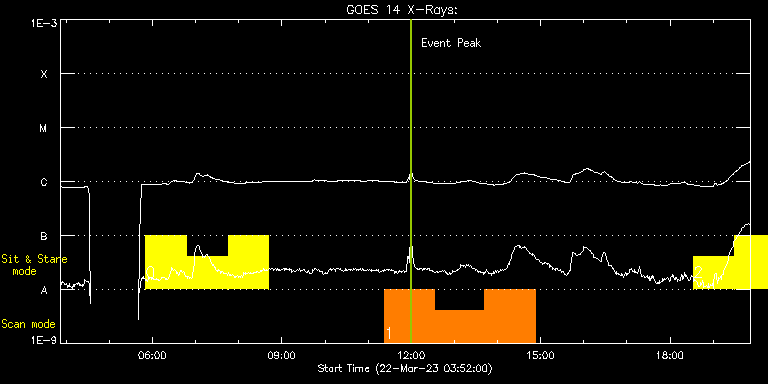 EIS Observation timeline overlay to GOES-Xray curve Code 1" 2" 40" 266" EIS Observations list for this event: STUDY ACRONYM ID DATE OBSERVED DESCRIPTION NOAA# TARGET 0 Flare266_Hunter01 | 85542 | 2023/03/22 05:50:40 | Flare watch | | Flare TIMELINE ID DATE OBSERVED FITS FILE XCEN (+W/-E) YCEN (+N/-S) DUR ----------------------------------------------------------------------------------------------------------------- 85542 | 2023/03/22 05:50:40.000 | eis_l0_20230322_055040.fits.gz | -323.37 | -336.27 | 56m23s 85542 | 2023/03/22 06:47:55.000 | eis_l0_20230322_064755.fits.gz | -315.80 | -335.73 | 56m22s 85542 | 2023/03/22 07:45:09.000 | eis_l0_20230322_074509.fits.gz | -308.23 | -335.49 | 56m22s 1 HOP81_new_study | 85529 | 2023/03/22 11:22:49 | HOP206 Polar Panorama Map for understa | | Coronal Hole TIMELINE ID DATE OBSERVED FITS FILE XCEN (+W/-E) YCEN (+N/-S) DUR ----------------------------------------------------------------------------------------------------------------- 85529 | 2023/03/22 11:22:49.000 | eis_l0_20230322_112249.fits.gz | -19.58 | -1033.95 | 1h9m45s 85529 | 2023/03/22 12:32:39.000 | eis_l0_20230322_123239.fits.gz | -19.58 | -1033.95 | 1h9m45s 85529 | 2023/03/22 13:42:29.000 | eis_l0_20230322_134229.fits.gz | -19.66 | -1033.95 | 1h9m45s 2 Flare266_Hunter01 | 85550 | 2023/03/22 18:33:03 | Flare watch | | Flare TIMELINE ID DATE OBSERVED FITS FILE XCEN (+W/-E) YCEN (+N/-S) DUR ----------------------------------------------------------------------------------------------------------------- 85550 | 2023/03/22 18:33:03.000 | eis_l0_20230322_183303.fits.gz | -220.48 | -332.64 | 56m22s 85550 | 2023/03/22 19:30:18.000 | eis_l0_20230322_193018.fits.gz | -212.52 | -332.40 | 56m22s 85550 | 2023/03/22 20:27:32.000 | eis_l0_20230322_202732.fits.gz | -204.72 | -332.25 | 56m22s : Check study information : Download file : View thumbnails For this event, also check for: