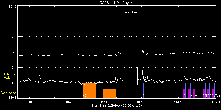 EIS Observation timeline overlay to GOES-Xray curve Code 1" 2" 40" 266" EIS Observations list for this event: STUDY ACRONYM ID DATE OBSERVED DESCRIPTION NOAA# TARGET 0 HPW021VEL260x512v2 | 85604 | 2023/03/24 01:20:12 | Active Region Studies | 3256 | Active Region TIMELINE ID DATE OBSERVED FITS FILE XCEN (+W/-E) YCEN (+N/-S) DUR ----------------------------------------------------------------------------------------------------------------- 85604 | 2023/03/24 01:20:12.000 | eis_l0_20230324_012012.fits.gz | 52.64 | -433.00 | 1h0m45s 1 Atlas_60 | 85605 | 2023/03/24 02:54:42 | Active Region Studies | 3256 | Quiet Sun TIMELINE ID DATE OBSERVED FITS FILE XCEN (+W/-E) YCEN (+N/-S) DUR ----------------------------------------------------------------------------------------------------------------- 85605 | 2023/03/24 02:54:42.000 | eis_l0_20230324_025442.fits.gz | 65.85 | -257.23 | 1h1m40s 2 PRY_slot_contextLITE | 85592 | 2023/03/24 06:08:49 | Pointing Moniter | 3256 | Active Region TIMELINE ID DATE OBSERVED FITS FILE XCEN (+W/-E) YCEN (+N/-S) DUR ----------------------------------------------------------------------------------------------------------------- 85592 | 2023/03/24 06:08:49.000 | eis_l0_20230324_060849.fits.gz | 0.68 | -194.92 | 2m56s 3 XRT_synop_AIA | 85593 | 2023/03/24 06:12:03 | Pointing Moniter | 3256 | Quiet Sun TIMELINE ID DATE OBSERVED FITS FILE XCEN (+W/-E) YCEN (+N/-S) DUR ----------------------------------------------------------------------------------------------------------------- 85593 | 2023/03/24 06:12:03.000 | eis_l0_20230324_061203.fits.gz | 0.51 | -207.00 | 10s 4 SK_DEEP_5x512_SLIT1 | 85552 | 2023/03/24 09:23:03 | HOP412 01/20 | | Quiet Sun TIMELINE ID DATE OBSERVED FITS FILE XCEN (+W/-E) YCEN (+N/-S) DUR ----------------------------------------------------------------------------------------------------------------- 85552 | 2023/03/24 09:23:03.000 | eis_l0_20230324_092303.fits.gz | -9868.22 | -10103.70 | 10m8s 5 PRY_slot_contextLITE | 85553 | 2023/03/24 09:33:36 | HOP412 01/20 | | Active Region TIMELINE ID DATE OBSERVED FITS FILE XCEN (+W/-E) YCEN (+N/-S) DUR ----------------------------------------------------------------------------------------------------------------- 85553 | 2023/03/24 09:33:36.000 | eis_l0_20230324_093336.fits.gz | -9867.97 | -10091.70 | 2m56s 6 SK_DEEP_5x512_SLIT1 | 85554 | 2023/03/24 09:44:49 | HOP412 02/20 | | Quiet Sun TIMELINE ID DATE OBSERVED FITS FILE XCEN (+W/-E) YCEN (+N/-S) DUR ----------------------------------------------------------------------------------------------------------------- 85554 | 2023/03/24 09:44:49.000 | eis_l0_20230324_094449.fits.gz | -19.67 | -1025.02 | 10m8s 7 PRY_slot_contextLITE | 85555 | 2023/03/24 09:55:23 | HOP412 02/20 | | Active Region TIMELINE ID DATE OBSERVED FITS FILE XCEN (+W/-E) YCEN (+N/-S) DUR ----------------------------------------------------------------------------------------------------------------- 85555 | 2023/03/24 09:55:23.000 | eis_l0_20230324_095523.fits.gz | -19.42 | -1013.10 | 2m56s 8 SK_DEEP_5x512_SLIT1 | 85556 | 2023/03/24 10:07:49 | HOP412 03/20 | | Quiet Sun TIMELINE ID DATE OBSERVED FITS FILE XCEN (+W/-E) YCEN (+N/-S) DUR ----------------------------------------------------------------------------------------------------------------- 85556 | 2023/03/24 10:07:49.000 | eis_l0_20230324_100749.fits.gz | -19.67 | -924.99 | 10m8s 9 PRY_slot_contextLITE | 85557 | 2023/03/24 10:18:23 | HOP412 03/20 | | Active Region TIMELINE ID DATE OBSERVED FITS FILE XCEN (+W/-E) YCEN (+N/-S) DUR ----------------------------------------------------------------------------------------------------------------- 85557 | 2023/03/24 10:18:23.000 | eis_l0_20230324_101823.fits.gz | -19.42 | -912.99 | 2m56s 10 SK_DEEP_5x512_SLIT1 | 85558 | 2023/03/24 10:57:20 | HOP412 04/20 | | Quiet Sun TIMELINE ID DATE OBSERVED FITS FILE XCEN (+W/-E) YCEN (+N/-S) DUR ----------------------------------------------------------------------------------------------------------------- 85558 | 2023/03/24 10:57:20.000 | eis_l0_20230324_105720.fits.gz | -19.67 | -824.95 | 10m7s 11 PRY_slot_contextLITE | 85559 | 2023/03/24 11:07:53 | HOP412 04/20 | | Active Region TIMELINE ID DATE OBSERVED FITS FILE XCEN (+W/-E) YCEN (+N/-S) DUR ----------------------------------------------------------------------------------------------------------------- 85559 | 2023/03/24 11:07:53.000 | eis_l0_20230324_110753.fits.gz | -19.42 | -812.95 | 2m56s 12 SK_DEEP_5x512_SLIT1 | 85560 | 2023/03/24 11:19:19 | HOP412 05/20 | | Quiet Sun TIMELINE ID DATE OBSERVED FITS FILE XCEN (+W/-E) YCEN (+N/-S) DUR ----------------------------------------------------------------------------------------------------------------- 85560 | 2023/03/24 11:19:19.000 | eis_l0_20230324_111919.fits.gz | -19.67 | -724.76 | 10m8s 13 PRY_slot_contextLITE | 85561 | 2023/03/24 11:29:52 | HOP412 05/20 | | Active Region TIMELINE ID DATE OBSERVED FITS FILE XCEN (+W/-E) YCEN (+N/-S) DUR ----------------------------------------------------------------------------------------------------------------- 85561 | 2023/03/24 11:29:52.000 | eis_l0_20230324_112952.fits.gz | -19.35 | -712.91 | 2m57s 14 SK_DEEP_5x512_SLIT1 | 85562 | 2023/03/24 11:42:19 | HOP412 06/20 | | Quiet Sun TIMELINE ID DATE OBSERVED FITS FILE XCEN (+W/-E) YCEN (+N/-S) DUR ----------------------------------------------------------------------------------------------------------------- 85562 | 2023/03/24 11:42:19.000 | eis_l0_20230324_114219.fits.gz | -19.75 | -624.72 | 10m8s 15 PRY_slot_contextLITE | 85563 | 2023/03/24 11:52:53 | HOP412 06/20 | | Active Region TIMELINE ID DATE OBSERVED FITS FILE XCEN (+W/-E) YCEN (+N/-S) DUR ----------------------------------------------------------------------------------------------------------------- 85563 | 2023/03/24 11:52:53.000 | eis_l0_20230324_115253.fits.gz | -19.42 | -612.80 | 2m56s : Check study information : Download file : View thumbnails For this event, also check for: