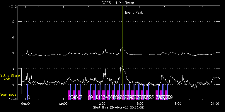 EIS Observation timeline overlay to GOES-Xray curve Code 1" 2" 40" 266" EIS Observations list for this event: STUDY ACRONYM ID DATE OBSERVED DESCRIPTION NOAA# TARGET 0 PRY_slot_contextLITE | 85592 | 2023/03/24 06:08:49 | Pointing Moniter | 3256 | Active Region TIMELINE ID DATE OBSERVED FITS FILE XCEN (+W/-E) YCEN (+N/-S) DUR ----------------------------------------------------------------------------------------------------------------- 85592 | 2023/03/24 06:08:49.000 | eis_l0_20230324_060849.fits.gz | 0.68 | -194.92 | 2m56s 1 XRT_synop_AIA | 85593 | 2023/03/24 06:12:03 | Pointing Moniter | 3256 | Quiet Sun TIMELINE ID DATE OBSERVED FITS FILE XCEN (+W/-E) YCEN (+N/-S) DUR ----------------------------------------------------------------------------------------------------------------- 85593 | 2023/03/24 06:12:03.000 | eis_l0_20230324_061203.fits.gz | 0.51 | -207.00 | 10s 2 SK_DEEP_5x512_SLIT1 | 85552 | 2023/03/24 09:23:03 | HOP412 01/20 | | Quiet Sun TIMELINE ID DATE OBSERVED FITS FILE XCEN (+W/-E) YCEN (+N/-S) DUR ----------------------------------------------------------------------------------------------------------------- 85552 | 2023/03/24 09:23:03.000 | eis_l0_20230324_092303.fits.gz | -9868.22 | -10103.70 | 10m8s 3 PRY_slot_contextLITE | 85553 | 2023/03/24 09:33:36 | HOP412 01/20 | | Active Region TIMELINE ID DATE OBSERVED FITS FILE XCEN (+W/-E) YCEN (+N/-S) DUR ----------------------------------------------------------------------------------------------------------------- 85553 | 2023/03/24 09:33:36.000 | eis_l0_20230324_093336.fits.gz | -9867.97 | -10091.70 | 2m56s 4 SK_DEEP_5x512_SLIT1 | 85554 | 2023/03/24 09:44:49 | HOP412 02/20 | | Quiet Sun TIMELINE ID DATE OBSERVED FITS FILE XCEN (+W/-E) YCEN (+N/-S) DUR ----------------------------------------------------------------------------------------------------------------- 85554 | 2023/03/24 09:44:49.000 | eis_l0_20230324_094449.fits.gz | -19.67 | -1025.02 | 10m8s 5 PRY_slot_contextLITE | 85555 | 2023/03/24 09:55:23 | HOP412 02/20 | | Active Region TIMELINE ID DATE OBSERVED FITS FILE XCEN (+W/-E) YCEN (+N/-S) DUR ----------------------------------------------------------------------------------------------------------------- 85555 | 2023/03/24 09:55:23.000 | eis_l0_20230324_095523.fits.gz | -19.42 | -1013.10 | 2m56s 6 SK_DEEP_5x512_SLIT1 | 85556 | 2023/03/24 10:07:49 | HOP412 03/20 | | Quiet Sun TIMELINE ID DATE OBSERVED FITS FILE XCEN (+W/-E) YCEN (+N/-S) DUR ----------------------------------------------------------------------------------------------------------------- 85556 | 2023/03/24 10:07:49.000 | eis_l0_20230324_100749.fits.gz | -19.67 | -924.99 | 10m8s 7 PRY_slot_contextLITE | 85557 | 2023/03/24 10:18:23 | HOP412 03/20 | | Active Region TIMELINE ID DATE OBSERVED FITS FILE XCEN (+W/-E) YCEN (+N/-S) DUR ----------------------------------------------------------------------------------------------------------------- 85557 | 2023/03/24 10:18:23.000 | eis_l0_20230324_101823.fits.gz | -19.42 | -912.99 | 2m56s 8 SK_DEEP_5x512_SLIT1 | 85558 | 2023/03/24 10:57:20 | HOP412 04/20 | | Quiet Sun TIMELINE ID DATE OBSERVED FITS FILE XCEN (+W/-E) YCEN (+N/-S) DUR ----------------------------------------------------------------------------------------------------------------- 85558 | 2023/03/24 10:57:20.000 | eis_l0_20230324_105720.fits.gz | -19.67 | -824.95 | 10m7s 9 PRY_slot_contextLITE | 85559 | 2023/03/24 11:07:53 | HOP412 04/20 | | Active Region TIMELINE ID DATE OBSERVED FITS FILE XCEN (+W/-E) YCEN (+N/-S) DUR ----------------------------------------------------------------------------------------------------------------- 85559 | 2023/03/24 11:07:53.000 | eis_l0_20230324_110753.fits.gz | -19.42 | -812.95 | 2m56s 10 SK_DEEP_5x512_SLIT1 | 85560 | 2023/03/24 11:19:19 | HOP412 05/20 | | Quiet Sun TIMELINE ID DATE OBSERVED FITS FILE XCEN (+W/-E) YCEN (+N/-S) DUR ----------------------------------------------------------------------------------------------------------------- 85560 | 2023/03/24 11:19:19.000 | eis_l0_20230324_111919.fits.gz | -19.67 | -724.76 | 10m8s 11 PRY_slot_contextLITE | 85561 | 2023/03/24 11:29:52 | HOP412 05/20 | | Active Region TIMELINE ID DATE OBSERVED FITS FILE XCEN (+W/-E) YCEN (+N/-S) DUR ----------------------------------------------------------------------------------------------------------------- 85561 | 2023/03/24 11:29:52.000 | eis_l0_20230324_112952.fits.gz | -19.35 | -712.91 | 2m57s 12 SK_DEEP_5x512_SLIT1 | 85562 | 2023/03/24 11:42:19 | HOP412 06/20 | | Quiet Sun TIMELINE ID DATE OBSERVED FITS FILE XCEN (+W/-E) YCEN (+N/-S) DUR ----------------------------------------------------------------------------------------------------------------- 85562 | 2023/03/24 11:42:19.000 | eis_l0_20230324_114219.fits.gz | -19.75 | -624.72 | 10m8s 13 PRY_slot_contextLITE | 85563 | 2023/03/24 11:52:53 | HOP412 06/20 | | Active Region TIMELINE ID DATE OBSERVED FITS FILE XCEN (+W/-E) YCEN (+N/-S) DUR ----------------------------------------------------------------------------------------------------------------- 85563 | 2023/03/24 11:52:53.000 | eis_l0_20230324_115253.fits.gz | -19.42 | -612.80 | 2m56s 14 SK_DEEP_5x512_SLIT1 | 85564 | 2023/03/24 12:05:19 | HOP412 07/20 | | Quiet Sun TIMELINE ID DATE OBSERVED FITS FILE XCEN (+W/-E) YCEN (+N/-S) DUR ----------------------------------------------------------------------------------------------------------------- 85564 | 2023/03/24 12:05:19.000 | eis_l0_20230324_120519.fits.gz | -19.60 | -525.00 | 10m8s 15 PRY_slot_contextLITE | 85565 | 2023/03/24 12:15:53 | HOP412 07/20 | 3257 | Active Region TIMELINE ID DATE OBSERVED FITS FILE XCEN (+W/-E) YCEN (+N/-S) DUR ----------------------------------------------------------------------------------------------------------------- 85565 | 2023/03/24 12:15:53.000 | eis_l0_20230324_121553.fits.gz | -19.35 | -513.08 | 2m56s 16 SK_DEEP_5x512_SLIT1 | 85566 | 2023/03/24 12:28:19 | HOP412 08/20 | | Quiet Sun TIMELINE ID DATE OBSERVED FITS FILE X