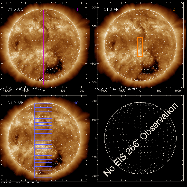 EIS Observation timeline overlay to GOES-Xray curve Code 1" 2" 40" 266" EIS Observations list for this event: STUDY ACRONYM ID DATE OBSERVED DESCRIPTION NOAA# TARGET 0 SK_DEEP_5x512_SLIT1 | 85558 | 2023/03/24 10:57:20 | HOP412 04/20 | | Quiet Sun TIMELINE ID DATE OBSERVED FITS FILE XCEN (+W/-E) YCEN (+N/-S) DUR ----------------------------------------------------------------------------------------------------------------- 85558 | 2023/03/24 10:57:20.000 | eis_l0_20230324_105720.fits.gz | -19.67 | -824.95 | 10m7s 1 PRY_slot_contextLITE | 85559 | 2023/03/24 11:07:53 | HOP412 04/20 | | Active Region TIMELINE ID DATE OBSERVED FITS FILE XCEN (+W/-E) YCEN (+N/-S) DUR ----------------------------------------------------------------------------------------------------------------- 85559 | 2023/03/24 11:07:53.000 | eis_l0_20230324_110753.fits.gz | -19.42 | -812.95 | 2m56s 2 SK_DEEP_5x512_SLIT1 | 85560 | 2023/03/24 11:19:19 | HOP412 05/20 | | Quiet Sun TIMELINE ID DATE OBSERVED FITS FILE XCEN (+W/-E) YCEN (+N/-S) DUR ----------------------------------------------------------------------------------------------------------------- 85560 | 2023/03/24 11:19:19.000 | eis_l0_20230324_111919.fits.gz | -19.67 | -724.76 | 10m8s 3 PRY_slot_contextLITE | 85561 | 2023/03/24 11:29:52 | HOP412 05/20 | | Active Region TIMELINE ID DATE OBSERVED FITS FILE XCEN (+W/-E) YCEN (+N/-S) DUR ----------------------------------------------------------------------------------------------------------------- 85561 | 2023/03/24 11:29:52.000 | eis_l0_20230324_112952.fits.gz | -19.35 | -712.91 | 2m57s 4 SK_DEEP_5x512_SLIT1 | 85562 | 2023/03/24 11:42:19 | HOP412 06/20 | | Quiet Sun TIMELINE ID DATE OBSERVED FITS FILE XCEN (+W/-E) YCEN (+N/-S) DUR ----------------------------------------------------------------------------------------------------------------- 85562 | 2023/03/24 11:42:19.000 | eis_l0_20230324_114219.fits.gz | -19.75 | -624.72 | 10m8s 5 PRY_slot_contextLITE | 85563 | 2023/03/24 11:52:53 | HOP412 06/20 | | Active Region TIMELINE ID DATE OBSERVED FITS FILE XCEN (+W/-E) YCEN (+N/-S) DUR ----------------------------------------------------------------------------------------------------------------- 85563 | 2023/03/24 11:52:53.000 | eis_l0_20230324_115253.fits.gz | -19.42 | -612.80 | 2m56s 6 SK_DEEP_5x512_SLIT1 | 85564 | 2023/03/24 12:05:19 | HOP412 07/20 | | Quiet Sun TIMELINE ID DATE OBSERVED FITS FILE XCEN (+W/-E) YCEN (+N/-S) DUR ----------------------------------------------------------------------------------------------------------------- 85564 | 2023/03/24 12:05:19.000 | eis_l0_20230324_120519.fits.gz | -19.60 | -525.00 | 10m8s 7 PRY_slot_contextLITE | 85565 | 2023/03/24 12:15:53 | HOP412 07/20 | 3257 | Active Region TIMELINE ID DATE OBSERVED FITS FILE XCEN (+W/-E) YCEN (+N/-S) DUR ----------------------------------------------------------------------------------------------------------------- 85565 | 2023/03/24 12:15:53.000 | eis_l0_20230324_121553.fits.gz | -19.35 | -513.08 | 2m56s 8 SK_DEEP_5x512_SLIT1 | 85566 | 2023/03/24 12:28:19 | HOP412 08/20 | | Quiet Sun TIMELINE ID DATE OBSERVED FITS FILE XCEN (+W/-E) YCEN (+N/-S) DUR ----------------------------------------------------------------------------------------------------------------- 85566 | 2023/03/24 12:28:19.000 | eis_l0_20230324_122819.fits.gz | -19.67 | -424.81 | 10m8s 9 PRY_slot_contextLITE | 85567 | 2023/03/24 12:38:53 | HOP412 08/20 | 3256 | Active Region TIMELINE ID DATE OBSERVED FITS FILE XCEN (+W/-E) YCEN (+N/-S) DUR ----------------------------------------------------------------------------------------------------------------- 85567 | 2023/03/24 12:38:53.000 | eis_l0_20230324_123853.fits.gz | -19.35 | -413.04 | 2m56s 10 SK_DEEP_5x512_SLIT1 | 85568 | 2023/03/24 12:51:19 | HOP412 09/20 | | Quiet Sun TIMELINE ID DATE OBSERVED FITS FILE XCEN (+W/-E) YCEN (+N/-S) DUR ----------------------------------------------------------------------------------------------------------------- 85568 | 2023/03/24 12:51:19.000 | eis_l0_20230324_125119.fits.gz | -19.67 | -324.85 | 10m8s 11 PRY_slot_contextLITE | 85569 | 2023/03/24 13:01:53 | HOP412 09/20 | 3256 | Active Region TIMELINE ID DATE OBSERVED FITS FILE XCEN (+W/-E) YCEN (+N/-S) DUR ----------------------------------------------------------------------------------------------------------------- 85569 | 2023/03/24 13:01:53.000 | eis_l0_20230324_130153.fits.gz | -19.35 | -312.93 | 2m56s 12 SK_DEEP_5x512_SLIT1 | 85570 | 2023/03/24 13:14:19 | HOP412 10/20 | | Quiet Sun TIMELINE ID DATE OBSERVED FITS FILE XCEN (+W/-E) YCEN (+N/-S) DUR ----------------------------------------------------------------------------------------------------------------- 85570 | 2023/03/24 13:14:19.000 | eis_l0_20230324_131419.fits.gz | -19.67 | -224.74 | 10m8s 13 PRY_slot_contextLITE | 85571 | 2023/03/24 13:24:53 | HOP412 10/20 | 3256 | Active Region TIMELINE ID DATE OBSERVED FITS FILE XCEN (+W/-E) YCEN (+N/-S) DUR ----------------------------------------------------------------------------------------------------------------- 85571 | 2023/03/24 13:24:53.000 | eis_l0_20230324_132453.fits.gz | -19.42 | -212.74 | 2m56s 14 SK_DEEP_5x512_SLIT1 | 85572 | 2023/03/24 13:37:19 | HOP412 11/20 | | Quiet Sun TIMELINE ID DATE OBSERVED FITS FILE XCEN (+W/-E) YCEN (+N/-S) DUR ----------------------------------------------------------------------------------------------------------------- 85572 | 2023/03/24 13:37:19.000 | eis_l0_20230324_133719.fits.gz | -19.75 | -134.67 | 10m8s 15 PRY_slot_contextLITE | 85573 | 2023/03/24 13:47:53 | HOP412 11/20 | 3256 | Active Region TIMELINE ID DATE OBSERVED FITS FILE XCEN (+W/-E) YCEN (+N/-S) DUR ----------------------------------------------------------------------------------------------------------------- 85573 | 2023/03/24 13:47:53.000 | eis_l0_20230324_134753.fits.gz | -19.42 | -122.82 | 2m56s 16 SK_DEEP_5x512_SLIT1 | 85574 | 2023/03/24 14:00:19 | HOP412 12/20 | | Quiet Sun TIMELINE ID DATE OBSERVED FITS FI