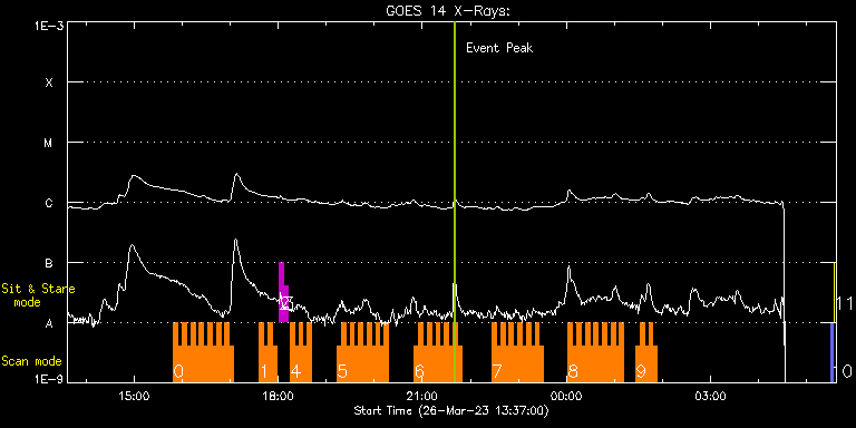 EIS Observation timeline overlay to GOES-Xray curve Code 1" 2" 40" 266" EIS Observations list for this event: STUDY ACRONYM ID DATE OBSERVED DESCRIPTION NOAA# TARGET 0 HH_Flare+AR_180x152 | 85628 | 2023/03/26 15:49:39 | HOP449 Hot onset flare precursor event | | Flare TIMELINE ID DATE OBSERVED FITS FILE XCEN (+W/-E) YCEN (+N/-S) DUR ----------------------------------------------------------------------------------------------------------------- 85628 | 2023/03/26 15:49:39.000 | eis_l0_20230326_154939.fits.gz | 216.41 | 476.76 | 5m18s 85628 | 2023/03/26 15:55:00.000 | eis_l0_20230326_155500.fits.gz | 217.18 | 476.76 | 5m18s 85628 | 2023/03/26 16:00:20.000 | eis_l0_20230326_160020.fits.gz | 217.95 | 476.53 | 5m18s 85628 | 2023/03/26 16:05:41.000 | eis_l0_20230326_160541.fits.gz | 218.57 | 476.68 | 5m19s 85628 | 2023/03/26 16:11:03.000 | eis_l0_20230326_161103.fits.gz | 219.34 | 476.61 | 5m18s 85628 | 2023/03/26 16:16:24.000 | eis_l0_20230326_161624.fits.gz | 219.96 | 476.61 | 5m18s 85628 | 2023/03/26 16:21:45.000 | eis_l0_20230326_162145.fits.gz | 220.73 | 476.53 | 5m17s 85628 | 2023/03/26 16:27:05.000 | eis_l0_20230326_162705.fits.gz | 221.43 | 476.53 | 5m18s 85628 | 2023/03/26 16:32:26.000 | eis_l0_20230326_163226.fits.gz | 222.20 | 476.45 | 5m18s 85628 | 2023/03/26 16:37:47.000 | eis_l0_20230326_163747.fits.gz | 222.97 | 476.45 | 5m18s 85628 | 2023/03/26 16:43:08.000 | eis_l0_20230326_164308.fits.gz | 223.67 | 476.38 | 5m17s 85628 | 2023/03/26 16:48:28.000 | eis_l0_20230326_164828.fits.gz | 224.37 | 476.45 | 5m19s 85628 | 2023/03/26 16:53:49.000 | eis_l0_20230326_165349.fits.gz | 225.14 | 476.30 | 5m18s 85628 | 2023/03/26 16:59:10.000 | eis_l0_20230326_165910.fits.gz | 225.76 | 476.45 | 5m18s 1 HH_Flare+AR_180x152 | 85629 | 2023/03/26 17:36:42 | HOP449 Hot onset flare precursor event | | Flare TIMELINE ID DATE OBSERVED FITS FILE XCEN (+W/-E) YCEN (+N/-S) DUR ----------------------------------------------------------------------------------------------------------------- 85629 | 2023/03/26 17:36:42.000 | eis_l0_20230326_173642.fits.gz | 230.85 | 476.14 | 5m18s 85629 | 2023/03/26 17:42:02.000 | eis_l0_20230326_174202.fits.gz | 231.55 | 476.07 | 5m18s 85629 | 2023/03/26 17:47:23.000 | eis_l0_20230326_174723.fits.gz | 232.24 | 476.07 | 5m18s 85629 | 2023/03/26 17:52:43.000 | eis_l0_20230326_175243.fits.gz | 232.94 | 476.07 | 5m18s 2 regcal081 | 85630 | 2023/03/26 18:01:40 | Dark exposures, CCD bottom rows (150s | | Engineering TIMELINE ID DATE OBSERVED FITS FILE XCEN (+W/-E) YCEN (+N/-S) DUR ----------------------------------------------------------------------------------------------------------------- 85630 | 2023/03/26 18:01:40.000 | eis_l0_20230326_180140.fits.gz | 247.99 | -379.93 | 5m2s 3 regcal082 | 85631 | 2023/03/26 18:07:09 | Dark exposures, top CCD rows (150s exp | | Engineering TIMELINE ID DATE OBSERVED FITS FILE XCEN (+W/-E) YCEN (+N/-S) DUR ----------------------------------------------------------------------------------------------------------------- 85631 | 2023/03/26 18:07:09.000 | eis_l0_20230326_180709.fits.gz | 15.01 | 205.00 | 5m2s 4 HH_Flare+AR_180x152 | 85632 | 2023/03/26 18:15:13 | HOP449 Hot onset flare precursor event | | Flare TIMELINE ID DATE OBSERVED FITS FILE XCEN (+W/-E) YCEN (+N/-S) DUR ----------------------------------------------------------------------------------------------------------------- 85632 | 2023/03/26 18:15:13.000 | eis_l0_20230326_181513.fits.gz | 236.03 | 476.07 | 5m17s 85632 | 2023/03/26 18:20:33.000 | eis_l0_20230326_182033.fits.gz | 236.73 | 475.83 | 5m18s 85632 | 2023/03/26 18:25:54.000 | eis_l0_20230326_182554.fits.gz | 237.42 | 475.91 | 5m18s 85632 | 2023/03/26 18:31:15.000 | eis_l0_20230326_183115.fits.gz | 238.19 | 475.83 | 5m18s 85632 | 2023/03/26 18:36:36.000 | eis_l0_20230326_183636.fits.gz | 238.89 | 475.76 | 5m18s 5 HH_Flare+AR_180x152 | 85633 | 2023/03/26 19:13:42 | HOP449 Hot onset flare precursor event | | Flare TIMELINE ID DATE OBSERVED FITS FILE XCEN (+W/-E) YCEN (+N/-S) DUR ----------------------------------------------------------------------------------------------------------------- 85633 | 2023/03/26 19:13:42.000 | eis_l0_20230326_191342.fits.gz | 243.75 | 475.60 | 5m17s 85633 | 2023/03/26 19:19:02.000 | eis_l0_20230326_191902.fits.gz | 244.53 | 475.60 | 5m18s 85633 | 2023/03/26 19:24:23.000 | eis_l0_20230326_192423.fits.gz | 245.22 | 475.60 | 5m19s 85633 | 2023/03/26 19:29:45.000 | eis_l0_20230326_192945.fits.gz | 245.92 | 475.53 | 5m17s 85633 | 2023/03/26 19:35:05.000 | eis_l0_20230326_193505.fits.gz | 246.69 | 475.45 | 5m18s 85633 | 2023/03/26 19:40:26.000 | eis_l0_20230326_194026.fits.gz | 247.38 | 475.45 | 5m18s 85633 | 2023/03/26 19:45:47.000 | eis_l0_20230326_194547.fits.gz | 248.08 | 475.45 | 5m18s 85633 | 2023/03/26 19:51:08.000 | eis_l0_20230326_195108.fits.gz | 248.77 | 475.45 | 5m18s 85633 | 2023/03/26 19:56:29.000 | eis_l0_20230326_195629.fits.gz | 249.47 | 475.37 | 5m17s 85633 | 2023/03/26 20:01:49.000 | eis_l0_20230326_200149.fits.gz | 250.17 | 475.37 | 5m17s 85633 | 2023/03/26 20:07:09.000 | eis_l0_20230326_200709.fits.gz | 250.94 | 475.37 | 5m19s 85633 | 2023/03/26 20:12:31.000 | eis_l0_20230326_201231.fits.gz | 251.63 | 475.30 | 5m18s 6 HH_Flare+AR_180x152 | 85634 | 2023/03/26 20:50:12 | HOP449 Hot onset flare precursor event | | Flare TIMELINE ID DATE OBSERVED FITS FILE XCEN (+W/-E) YCEN (+N/-S) DUR ----------------------------------------------------------------------------------------------------------------- 85634 | 2023/03/26 20:50:12.000 | eis_l0_20230326_205012.fits.gz | 256.65 | 475.06 | 5m18s 85634 | 2023/03/26 20:55:33.000 | eis_l0_20230326_205533.fits.gz | 257.43 | 474.99 | 5m18s 85634 | 2023/03/26 21:00:54.000 | eis_l0_20230326_210054.fits.gz | 258.12 | 474.99 | 5m18s 85634 | 2023/03/26 21:06:15.000 | eis_l0_20230326_210615.fits.gz | 258.82 | 474.91 | 5m18s 85634 | 2023/03/26 21:11:36.000 | eis_l0_20230326_211136.fits.gz | 259.51 | 474.91 | 5m18s 85634 | 2023/03/26 21:16:57.000 | eis_l0_2