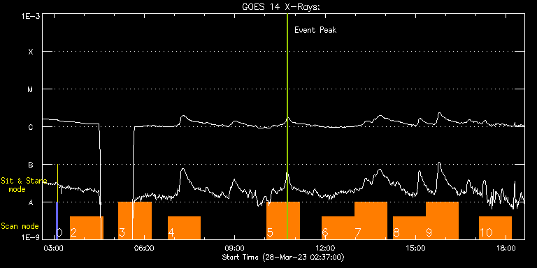 EIS Observation timeline overlay to GOES-Xray curve Code 1" 2" 40" 266" EIS Observations list for this event: STUDY ACRONYM ID DATE OBSERVED DESCRIPTION NOAA# TARGET 0 PRY_slot_contextLITE | 85642 | 2023/03/28 03:04:18 | Pointing Monitoring | | Active Region TIMELINE ID DATE OBSERVED FITS FILE XCEN (+W/-E) YCEN (+N/-S) DUR ----------------------------------------------------------------------------------------------------------------- 85642 | 2023/03/28 03:04:18.000 | eis_l0_20230328_030418.fits.gz | 0.88 | -194.92 | 2m56s 1 XRT_synop_AIA | 85643 | 2023/03/28 03:07:33 | Pointing Monitoring | | Quiet Sun TIMELINE ID DATE OBSERVED FITS FILE XCEN (+W/-E) YCEN (+N/-S) DUR ----------------------------------------------------------------------------------------------------------------- 85643 | 2023/03/28 03:07:33.000 | eis_l0_20230328_030733.fits.gz | 0.38 | -207.00 | 10s 2 DHB_007_v3 | 85620 | 2023/03/28 03:32:48 | HOP453 09T/15 (EIS & SPICE Composition | | Active Region TIMELINE ID DATE OBSERVED FITS FILE XCEN (+W/-E) YCEN (+N/-S) DUR ----------------------------------------------------------------------------------------------------------------- 85620 | 2023/03/28 03:32:48.000 | eis_l0_20230328_033248.fits.gz | -19.92 | -788.11 | 1h4m53s 3 DHB_007_v3 | 85621 | 2023/03/28 05:09:11 | HOP453 09B/15 (EIS & SPICE Composition | | Active Region TIMELINE ID DATE OBSERVED FITS FILE XCEN (+W/-E) YCEN (+N/-S) DUR ----------------------------------------------------------------------------------------------------------------- 85621 | 2023/03/28 05:09:11.000 | eis_l0_20230328_050911.fits.gz | -19.77 | -1731.95 | 1h4m52s 4 DHB_007_v3 | 85622 | 2023/03/28 06:47:11 | HOP453 10T/15 (EIS & SPICE Composition | | Active Region TIMELINE ID DATE OBSERVED FITS FILE XCEN (+W/-E) YCEN (+N/-S) DUR ----------------------------------------------------------------------------------------------------------------- 85622 | 2023/03/28 06:47:11.000 | eis_l0_20230328_064711.fits.gz | -430.48 | 898.52 | 1h4m54s 5 DHB_007_v3 | 85623 | 2023/03/28 10:03:41 | HOP453 10B/15 (EIS & SPICE Composition | 3266 | Active Region TIMELINE ID DATE OBSERVED FITS FILE XCEN (+W/-E) YCEN (+N/-S) DUR ----------------------------------------------------------------------------------------------------------------- 85623 | 2023/03/28 10:03:41.000 | eis_l0_20230328_100341.fits.gz | -430.55 | 56.10 | 1h4m50s 6 DHB_007_v3 | 85646 | 2023/03/28 11:53:13 | HOP453 11T/15 (EIS & SPICE Composition | 3266 | Active Region TIMELINE ID DATE OBSERVED FITS FILE XCEN (+W/-E) YCEN (+N/-S) DUR ----------------------------------------------------------------------------------------------------------------- 85646 | 2023/03/28 11:53:13.000 | eis_l0_20230328_115313.fits.gz | -430.63 | 152.85 | 1h4m54s 7 DHB_007_v3 | 85647 | 2023/03/28 12:58:14 | HOP453 11B/15 (EIS & SPICE Composition | | Active Region TIMELINE ID DATE OBSERVED FITS FILE XCEN (+W/-E) YCEN (+N/-S) DUR ----------------------------------------------------------------------------------------------------------------- 85647 | 2023/03/28 12:58:14.000 | eis_l0_20230328_125814.fits.gz | -430.55 | -790.92 | 1h4m51s 8 DHB_007_v3 | 85648 | 2023/03/28 14:15:13 | HOP453 12T/15 (EIS & SPICE Composition | | Active Region TIMELINE ID DATE OBSERVED FITS FILE XCEN (+W/-E) YCEN (+N/-S) DUR ----------------------------------------------------------------------------------------------------------------- 85648 | 2023/03/28 14:15:13.000 | eis_l0_20230328_141513.fits.gz | -430.80 | -694.25 | 1h4m53s 9 DHB_007_v3 | 85649 | 2023/03/28 15:20:13 | HOP453 12B/15 (EIS & SPICE Composition | | Active Region TIMELINE ID DATE OBSERVED FITS FILE XCEN (+W/-E) YCEN (+N/-S) DUR ----------------------------------------------------------------------------------------------------------------- 85649 | 2023/03/28 15:20:13.000 | eis_l0_20230328_152013.fits.gz | -430.88 | -1638.10 | 1h4m51s 10 DHB_007_v3 | 85650 | 2023/03/28 17:06:13 | HOP453 13T/15 (EIS & SPICE Composition | | Active Region TIMELINE ID DATE OBSERVED FITS FILE XCEN (+W/-E) YCEN (+N/-S) DUR ----------------------------------------------------------------------------------------------------------------- 85650 | 2023/03/28 17:06:13.000 | eis_l0_20230328_170613.fits.gz | -834.73 | 623.28 | 1h4m54s : Check study information : Download file : View thumbnails For this event, also check for: