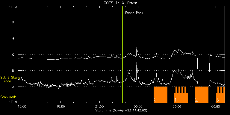 EIS Observation timeline overlay to GOES-Xray curve Code 1" 2" 40" 266" EIS Observations list for this event: STUDY ACRONYM ID DATE OBSERVED DESCRIPTION NOAA# TARGET 0 Atlas_60 | 85716 | 2023/04/04 01:12:49 | HOP457 [SOOP: Nanoflares] QS | | Quiet Sun TIMELINE ID DATE OBSERVED FITS FILE XCEN (+W/-E) YCEN (+N/-S) DUR ----------------------------------------------------------------------------------------------------------------- 85716 | 2023/04/04 01:12:49.000 | eis_l0_20230404_011249.fits.gz | 401.48 | -59.23 | 1h1m39s 1 EL_DHB_02_v2 | 85717 | 2023/04/04 02:46:39 | HOP457 [SOOP: Nanoflares] QS | | Flare TIMELINE ID DATE OBSERVED FITS FILE XCEN (+W/-E) YCEN (+N/-S) DUR ----------------------------------------------------------------------------------------------------------------- 85717 | 2023/04/04 02:46:39.000 | eis_l0_20230404_024639.fits.gz | 414.30 | -56.00 | 6m55s 85717 | 2023/04/04 02:53:37.000 | eis_l0_20230404_025337.fits.gz | 415.23 | -56.08 | 6m55s 85717 | 2023/04/04 03:00:35.000 | eis_l0_20230404_030035.fits.gz | 416.23 | -56.15 | 6m56s 85717 | 2023/04/04 03:07:34.000 | eis_l0_20230404_030734.fits.gz | 417.16 | -56.15 | 6m55s 85717 | 2023/04/04 03:14:31.000 | eis_l0_20230404_031431.fits.gz | 418.08 | -56.31 | 6m56s 85717 | 2023/04/04 03:21:29.000 | eis_l0_20230404_032129.fits.gz | 419.01 | -56.38 | 6m56s 85717 | 2023/04/04 03:28:27.000 | eis_l0_20230404_032827.fits.gz | 419.94 | -56.46 | 6m55s 85717 | 2023/04/04 03:35:25.000 | eis_l0_20230404_033525.fits.gz | 420.86 | -56.54 | 6m55s 85717 | 2023/04/04 03:42:23.000 | eis_l0_20230404_034223.fits.gz | 421.79 | -56.46 | 6m55s 2 Atlas_60 | 85699 | 2023/04/04 04:23:39 | HOP457 [SOOP: Nanoflares] QS | | Quiet Sun TIMELINE ID DATE OBSERVED FITS FILE XCEN (+W/-E) YCEN (+N/-S) DUR ----------------------------------------------------------------------------------------------------------------- 85699 | 2023/04/04 04:23:39.000 | eis_l0_20230404_042339.fits.gz | 427.43 | -60.85 | 1h1m40s 3 EL_DHB_02_v2 | 85700 | 2023/04/04 06:01:09 | HOP457 [SOOP: Nanoflares] QS | | Flare TIMELINE ID DATE OBSERVED FITS FILE XCEN (+W/-E) YCEN (+N/-S) DUR ----------------------------------------------------------------------------------------------------------------- 85700 | 2023/04/04 06:01:09.000 | eis_l0_20230404_060109.fits.gz | 440.56 | -57.77 | 6m55s 85700 | 2023/04/04 06:08:07.000 | eis_l0_20230404_060807.fits.gz | 441.49 | -57.77 | 6m55s 85700 | 2023/04/04 06:15:05.000 | eis_l0_20230404_061505.fits.gz | 442.42 | -57.77 | 6m55s 85700 | 2023/04/04 06:22:03.000 | eis_l0_20230404_062203.fits.gz | 443.34 | -57.93 | 6m55s 85700 | 2023/04/04 06:29:01.000 | eis_l0_20230404_062901.fits.gz | 444.27 | -58.01 | 6m55s 85700 | 2023/04/04 06:35:59.000 | eis_l0_20230404_063559.fits.gz | 445.20 | -58.08 | 6m55s 85700 | 2023/04/04 06:42:57.000 | eis_l0_20230404_064257.fits.gz | 446.12 | -58.16 | 6m55s 85700 | 2023/04/04 06:49:55.000 | eis_l0_20230404_064955.fits.gz | 447.13 | -58.24 | 6m54s 85700 | 2023/04/04 06:56:52.000 | eis_l0_20230404_065652.fits.gz | 448.06 | -58.24 | 6m56s : Check study information : Download file : View thumbnails For this event, also check for: