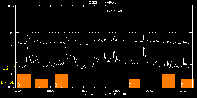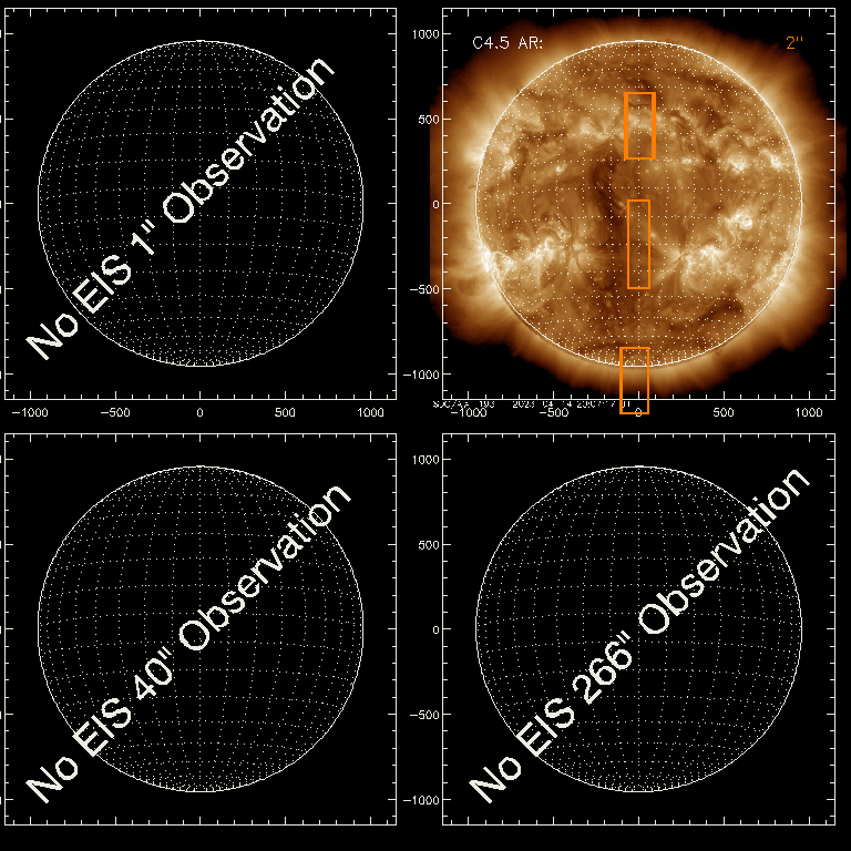 EIS Observation timeline overlay to GOES-Xray curve Code 1" 2" 40" 266" EIS Observations list for this event: STUDY ACRONYM ID DATE OBSERVED DESCRIPTION NOAA# TARGET 0 HOP81_new_study | 85834 | 2023/04/14 12:02:13 | Polar monitoring campaign. | | Coronal Hole TIMELINE ID DATE OBSERVED FITS FILE XCEN (+W/-E) YCEN (+N/-S) DUR ----------------------------------------------------------------------------------------------------------------- 85834 | 2023/04/14 12:02:13.000 | eis_l0_20230414_120213.fits.gz | -20.06 | -1042.11 | 1h9m45s 1 HOP81_new_study | 85835 | 2023/04/14 13:39:43 | Polar monitoring campaign. | | Coronal Hole TIMELINE ID DATE OBSERVED FITS FILE XCEN (+W/-E) YCEN (+N/-S) DUR ----------------------------------------------------------------------------------------------------------------- 85835 | 2023/04/14 13:39:43.000 | eis_l0_20230414_133943.fits.gz | -19.99 | -1041.87 | 1h9m44s 2 HOP81_new_study | 85836 | 2023/04/14 15:23:43 | Polar monitoring campaign. | | Coronal Hole TIMELINE ID DATE OBSERVED FITS FILE XCEN (+W/-E) YCEN (+N/-S) DUR ----------------------------------------------------------------------------------------------------------------- 85836 | 2023/04/14 15:23:43.000 | eis_l0_20230414_152343.fits.gz | -19.91 | -1042.03 | 1h9m45s 3 Large_CH_Map | 85837 | 2023/04/14 22:04:12 | Cycle 24/25 equatorial transition. | | Quiet Sun TIMELINE ID DATE OBSERVED FITS FILE XCEN (+W/-E) YCEN (+N/-S) DUR ----------------------------------------------------------------------------------------------------------------- 85837 | 2023/04/14 22:04:12.000 | eis_l0_20230414_220412.fits.gz | 4.64 | -240.78 | 1h1m53s 4 HOP81_new_study | 85838 | 2023/04/15 01:08:12 | Prominence and/or AR at the limb (as s | 3275 | Coronal Hole TIMELINE ID DATE OBSERVED FITS FILE XCEN (+W/-E) YCEN (+N/-S) DUR ----------------------------------------------------------------------------------------------------------------- 85838 | 2023/04/15 01:08:12.000 | eis_l0_20230415_010812.fits.gz | 5.35 | 452.25 | 1h9m45s 5 HOP81_new_study | 85839 | 2023/04/15 02:46:42 | Prominence and/or AR at the limb (as s | 3275 | Coronal Hole TIMELINE ID DATE OBSERVED FITS FILE XCEN (+W/-E) YCEN (+N/-S) DUR ----------------------------------------------------------------------------------------------------------------- 85839 | 2023/04/15 02:46:42.000 | eis_l0_20230415_024642.fits.gz | 17.79 | 452.17 | 1h9m44s : Check study information : Download file : View thumbnails For this event, also check for: