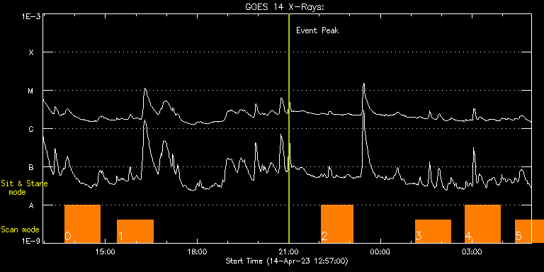 EIS Observation timeline overlay to GOES-Xray curve Code 1" 2" 40" 266" EIS Observations list for this event: STUDY ACRONYM ID DATE OBSERVED DESCRIPTION NOAA# TARGET 0 HOP81_new_study | 85835 | 2023/04/14 13:39:43 | Polar monitoring campaign. | | Coronal Hole TIMELINE ID DATE OBSERVED FITS FILE XCEN (+W/-E) YCEN (+N/-S) DUR ----------------------------------------------------------------------------------------------------------------- 85835 | 2023/04/14 13:39:43.000 | eis_l0_20230414_133943.fits.gz | -19.99 | -1041.87 | 1h9m44s 1 HOP81_new_study | 85836 | 2023/04/14 15:23:43 | Polar monitoring campaign. | | Coronal Hole TIMELINE ID DATE OBSERVED FITS FILE XCEN (+W/-E) YCEN (+N/-S) DUR ----------------------------------------------------------------------------------------------------------------- 85836 | 2023/04/14 15:23:43.000 | eis_l0_20230414_152343.fits.gz | -19.91 | -1042.03 | 1h9m45s 2 Large_CH_Map | 85837 | 2023/04/14 22:04:12 | Cycle 24/25 equatorial transition. | | Quiet Sun TIMELINE ID DATE OBSERVED FITS FILE XCEN (+W/-E) YCEN (+N/-S) DUR ----------------------------------------------------------------------------------------------------------------- 85837 | 2023/04/14 22:04:12.000 | eis_l0_20230414_220412.fits.gz | 4.64 | -240.78 | 1h1m53s 3 HOP81_new_study | 85838 | 2023/04/15 01:08:12 | Prominence and/or AR at the limb (as s | 3275 | Coronal Hole TIMELINE ID DATE OBSERVED FITS FILE XCEN (+W/-E) YCEN (+N/-S) DUR ----------------------------------------------------------------------------------------------------------------- 85838 | 2023/04/15 01:08:12.000 | eis_l0_20230415_010812.fits.gz | 5.35 | 452.25 | 1h9m45s 4 HOP81_new_study | 85839 | 2023/04/15 02:46:42 | Prominence and/or AR at the limb (as s | 3275 | Coronal Hole TIMELINE ID DATE OBSERVED FITS FILE XCEN (+W/-E) YCEN (+N/-S) DUR ----------------------------------------------------------------------------------------------------------------- 85839 | 2023/04/15 02:46:42.000 | eis_l0_20230415_024642.fits.gz | 17.79 | 452.17 | 1h9m44s 5 HOP81_new_study | 85840 | 2023/04/15 04:25:12 | Prominence and/or AR at the limb (as s | 3275 | Coronal Hole TIMELINE ID DATE OBSERVED FITS FILE XCEN (+W/-E) YCEN (+N/-S) DUR ----------------------------------------------------------------------------------------------------------------- 85840 | 2023/04/15 04:25:12.000 | eis_l0_20230415_042512.fits.gz | 30.22 | 452.02 | 1h9m44s : Check study information : Download file : View thumbnails For this event, also check for: