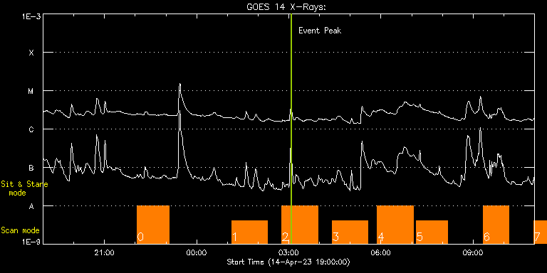 EIS Observation timeline overlay to GOES-Xray curve Code 1" 2" 40" 266" EIS Observations list for this event: STUDY ACRONYM ID DATE OBSERVED DESCRIPTION NOAA# TARGET 0 Large_CH_Map | 85837 | 2023/04/14 22:04:12 | Cycle 24/25 equatorial transition. | | Quiet Sun TIMELINE ID DATE OBSERVED FITS FILE XCEN (+W/-E) YCEN (+N/-S) DUR ----------------------------------------------------------------------------------------------------------------- 85837 | 2023/04/14 22:04:12.000 | eis_l0_20230414_220412.fits.gz | 4.64 | -240.78 | 1h1m53s 1 HOP81_new_study | 85838 | 2023/04/15 01:08:12 | Prominence and/or AR at the limb (as s | 3275 | Coronal Hole TIMELINE ID DATE OBSERVED FITS FILE XCEN (+W/-E) YCEN (+N/-S) DUR ----------------------------------------------------------------------------------------------------------------- 85838 | 2023/04/15 01:08:12.000 | eis_l0_20230415_010812.fits.gz | 5.35 | 452.25 | 1h9m45s 2 HOP81_new_study | 85839 | 2023/04/15 02:46:42 | Prominence and/or AR at the limb (as s | 3275 | Coronal Hole TIMELINE ID DATE OBSERVED FITS FILE XCEN (+W/-E) YCEN (+N/-S) DUR ----------------------------------------------------------------------------------------------------------------- 85839 | 2023/04/15 02:46:42.000 | eis_l0_20230415_024642.fits.gz | 17.79 | 452.17 | 1h9m44s 3 HOP81_new_study | 85840 | 2023/04/15 04:25:12 | Prominence and/or AR at the limb (as s | 3275 | Coronal Hole TIMELINE ID DATE OBSERVED FITS FILE XCEN (+W/-E) YCEN (+N/-S) DUR ----------------------------------------------------------------------------------------------------------------- 85840 | 2023/04/15 04:25:12.000 | eis_l0_20230415_042512.fits.gz | 30.22 | 452.02 | 1h9m44s 4 HOP81_new_study | 85841 | 2023/04/15 05:53:12 | Prominence and/or AR at the limb (as s | 3275 | Coronal Hole TIMELINE ID DATE OBSERVED FITS FILE XCEN (+W/-E) YCEN (+N/-S) DUR ----------------------------------------------------------------------------------------------------------------- 85841 | 2023/04/15 05:53:12.000 | eis_l0_20230415_055312.fits.gz | 41.27 | 451.86 | 1h9m45s 5 Atlas_60 | 85842 | 2023/04/15 07:09:12 | Prominence and/or AR at the limb (as s | | Quiet Sun TIMELINE ID DATE OBSERVED FITS FILE XCEN (+W/-E) YCEN (+N/-S) DUR ----------------------------------------------------------------------------------------------------------------- 85842 | 2023/04/15 07:09:12.000 | eis_l0_20230415_070912.fits.gz | 50.68 | 563.63 | 1h1m39s 6 HOP81_new_study | 85843 | 2023/04/15 09:20:12 | Prominence and/or AR at the limb (as s | 3275 | Coronal Hole TIMELINE ID DATE OBSERVED FITS FILE XCEN (+W/-E) YCEN (+N/-S) DUR ----------------------------------------------------------------------------------------------------------------- 85843 | 2023/04/15 09:20:12.000 | eis_l0_20230415_092012.fits.gz | 67.23 | 451.55 | 49m56s 7 HOP81_new_study | 85847 | 2023/04/15 10:58:13 | Prominence and/or AR at the limb (as s | 3275 | Coronal Hole TIMELINE ID DATE OBSERVED FITS FILE XCEN (+W/-E) YCEN (+N/-S) DUR ----------------------------------------------------------------------------------------------------------------- 85847 | 2023/04/15 10:58:13.000 | eis_l0_20230415_105813.fits.gz | 79.48 | 412.10 | 1h9m45s : Check study information : Download file : View thumbnails For this event, also check for: