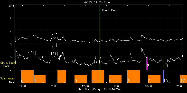 EIS Observation timeline overlay to GOES-Xray curve Code 1" 2" 40" 266" EIS Observations list for this event: STUDY ACRONYM ID DATE OBSERVED DESCRIPTION NOAA# TARGET 0 HOP81_new_study | 85841 | 2023/04/15 05:53:12 | Prominence and/or AR at the limb (as s | 3275 | Coronal Hole TIMELINE ID DATE OBSERVED FITS FILE XCEN (+W/-E) YCEN (+N/-S) DUR ----------------------------------------------------------------------------------------------------------------- 85841 | 2023/04/15 05:53:12.000 | eis_l0_20230415_055312.fits.gz | 41.27 | 451.86 | 1h9m45s 1 Atlas_60 | 85842 | 2023/04/15 07:09:12 | Prominence and/or AR at the limb (as s | | Quiet Sun TIMELINE ID DATE OBSERVED FITS FILE XCEN (+W/-E) YCEN (+N/-S) DUR ----------------------------------------------------------------------------------------------------------------- 85842 | 2023/04/15 07:09:12.000 | eis_l0_20230415_070912.fits.gz | 50.68 | 563.63 | 1h1m39s 2 HOP81_new_study | 85843 | 2023/04/15 09:20:12 | Prominence and/or AR at the limb (as s | 3275 | Coronal Hole TIMELINE ID DATE OBSERVED FITS FILE XCEN (+W/-E) YCEN (+N/-S) DUR ----------------------------------------------------------------------------------------------------------------- 85843 | 2023/04/15 09:20:12.000 | eis_l0_20230415_092012.fits.gz | 67.23 | 451.55 | 49m56s 3 HOP81_new_study | 85847 | 2023/04/15 10:58:13 | Prominence and/or AR at the limb (as s | 3275 | Coronal Hole TIMELINE ID DATE OBSERVED FITS FILE XCEN (+W/-E) YCEN (+N/-S) DUR ----------------------------------------------------------------------------------------------------------------- 85847 | 2023/04/15 10:58:13.000 | eis_l0_20230415_105813.fits.gz | 79.48 | 412.10 | 1h9m45s 4 HOP81_new_study | 85848 | 2023/04/15 12:36:13 | Prominence and/or AR at the limb (as s | 3275 | Coronal Hole TIMELINE ID DATE OBSERVED FITS FILE XCEN (+W/-E) YCEN (+N/-S) DUR ----------------------------------------------------------------------------------------------------------------- 85848 | 2023/04/15 12:36:13.000 | eis_l0_20230415_123613.fits.gz | 91.68 | 411.87 | 1h9m45s 5 HOP81_new_study | 85849 | 2023/04/15 14:15:13 | Prominence and/or AR at the limb (as s | 3275 | Coronal Hole TIMELINE ID DATE OBSERVED FITS FILE XCEN (+W/-E) YCEN (+N/-S) DUR ----------------------------------------------------------------------------------------------------------------- 85849 | 2023/04/15 14:15:13.000 | eis_l0_20230415_141513.fits.gz | 104.04 | 411.64 | 1h9m45s 6 HOP81_new_study | 85850 | 2023/04/15 16:00:43 | Prominence and/or AR at the limb (as s | 3275 | Coronal Hole TIMELINE ID DATE OBSERVED FITS FILE XCEN (+W/-E) YCEN (+N/-S) DUR ----------------------------------------------------------------------------------------------------------------- 85850 | 2023/04/15 16:00:43.000 | eis_l0_20230415_160043.fits.gz | 117.17 | 411.33 | 1h9m45s 7 regcal071 | 85865 | 2023/04/15 17:49:12 | Dark exposures, CCD bottom rows (100s | | Engineering TIMELINE ID DATE OBSERVED FITS FILE XCEN (+W/-E) YCEN (+N/-S) DUR ----------------------------------------------------------------------------------------------------------------- 85865 | 2023/04/15 17:49:12.000 | eis_l0_20230415_174912.fits.gz | 165.72 | -245.06 | 3m21s 8 regcal072 | 85866 | 2023/04/15 17:53:00 | Dark exposures, top CCD rows (100s exp | | Engineering TIMELINE ID DATE OBSERVED FITS FILE XCEN (+W/-E) YCEN (+N/-S) DUR ----------------------------------------------------------------------------------------------------------------- 85866 | 2023/04/15 17:53:00.000 | eis_l0_20230415_175300.fits.gz | 166.11 | 776.94 | 3m22s 9 HOP81_new_study | 85851 | 2023/04/15 17:58:13 | Prominence and/or AR at the limb (as s | 3275 | Coronal Hole TIMELINE ID DATE OBSERVED FITS FILE XCEN (+W/-E) YCEN (+N/-S) DUR ----------------------------------------------------------------------------------------------------------------- 85851 | 2023/04/15 17:58:13.000 | eis_l0_20230415_175813.fits.gz | 131.77 | 410.86 | 1h9m45s 10 PRY_slot_contextLITE | 85859 | 2023/04/15 19:24:21 | Pointing Monitoring | 3276 | Active Region TIMELINE ID DATE OBSERVED FITS FILE XCEN (+W/-E) YCEN (+N/-S) DUR ----------------------------------------------------------------------------------------------------------------- 85859 | 2023/04/15 19:24:21.000 | eis_l0_20230415_192421.fits.gz | 0.68 | -195.00 | 2m56s 11 XRT_synop_AIA | 85860 | 2023/04/15 19:27:36 | Pointing Monitoring | 3276 | Quiet Sun TIMELINE ID DATE OBSERVED FITS FILE XCEN (+W/-E) YCEN (+N/-S) DUR ----------------------------------------------------------------------------------------------------------------- 85860 | 2023/04/15 19:27:36.000 | eis_l0_20230415_192736.fits.gz | 0.43 | -206.92 | 10s 12 Atlas_60 | 85872 | 2023/04/15 21:01:20 | Active region study - spectral atlas | | Quiet Sun TIMELINE ID DATE OBSERVED FITS FILE XCEN (+W/-E) YCEN (+N/-S) DUR ----------------------------------------------------------------------------------------------------------------- 85872 | 2023/04/15 21:01:20.000 | eis_l0_20230415_210120.fits.gz | -654.01 | 170.69 | 1h1m39s : Check study information : Download file : View thumbnails For this event, also check for: