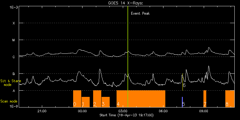 EIS Observation timeline overlay to GOES-Xray curve Code 1" 2" 40" 266" EIS Observations list for this event: STUDY ACRONYM ID DATE OBSERVED DESCRIPTION NOAA# TARGET 0 EL_FULL_CCD_RASTER | 85889 | 2023/04/19 23:18:49 | EIS observations in support of total e | | Active Region TIMELINE ID DATE OBSERVED FITS FILE XCEN (+W/-E) YCEN (+N/-S) DUR ----------------------------------------------------------------------------------------------------------------- 85889 | 2023/04/19 23:18:49.000 | eis_l0_20230419_231849.fits.gz | -20.27 | -1616.90 | 35m12s 1 EL_FULL_CCD_RASTER | 85890 | 2023/04/19 23:56:13 | EIS observations in support of total e | | Active Region TIMELINE ID DATE OBSERVED FITS FILE XCEN (+W/-E) YCEN (+N/-S) DUR ----------------------------------------------------------------------------------------------------------------- 85890 | 2023/04/19 23:56:13.000 | eis_l0_20230419_235613.fits.gz | -20.27 | -1616.74 | 35m11s 2 EL_FULL_CCD_RASTER | 85891 | 2023/04/20 00:47:40 | EIS observations in support of total e | | Active Region TIMELINE ID DATE OBSERVED FITS FILE XCEN (+W/-E) YCEN (+N/-S) DUR ----------------------------------------------------------------------------------------------------------------- 85891 | 2023/04/20 00:47:40.000 | eis_l0_20230420_004740.fits.gz | -20.19 | -1616.90 | 35m11s 3 EL_FULL_CCD_RASTER | 85892 | 2023/04/20 01:25:13 | EIS observations in support of total e | | Active Region TIMELINE ID DATE OBSERVED FITS FILE XCEN (+W/-E) YCEN (+N/-S) DUR ----------------------------------------------------------------------------------------------------------------- 85892 | 2023/04/20 01:25:13.000 | eis_l0_20230420_012513.fits.gz | -20.27 | -1616.90 | 35m11s 4 dhb_polar_scan | 85886 | 2023/04/20 02:32:13 | EIS observations in support of total e | | Quiet Sun TIMELINE ID DATE OBSERVED FITS FILE XCEN (+W/-E) YCEN (+N/-S) DUR ----------------------------------------------------------------------------------------------------------------- 85886 | 2023/04/20 02:32:13.000 | eis_l0_20230420_023213.fits.gz | 212.78 | -891.72 | 3h35m42s 5 PRY_slot_contextLITE | 85879 | 2023/04/20 07:23:20 | Pointing Monitoring | 3283 | Active Region TIMELINE ID DATE OBSERVED FITS FILE XCEN (+W/-E) YCEN (+N/-S) DUR ----------------------------------------------------------------------------------------------------------------- 85879 | 2023/04/20 07:23:20.000 | eis_l0_20230420_072320.fits.gz | 0.68 | -194.92 | 2m56s 6 XRT_synop_AIA | 85880 | 2023/04/20 07:26:34 | Pointing Monitoring | 3283 | Quiet Sun TIMELINE ID DATE OBSERVED FITS FILE XCEN (+W/-E) YCEN (+N/-S) DUR ----------------------------------------------------------------------------------------------------------------- 85880 | 2023/04/20 07:26:34.000 | eis_l0_20230420_072634.fits.gz | 0.43 | -207.00 | 10s 7 DRW_Alf_01 | 85884 | 2023/04/20 08:59:19 | Detection of the magnetic and velocity | | Active Region TIMELINE ID DATE OBSERVED FITS FILE XCEN (+W/-E) YCEN (+N/-S) DUR ----------------------------------------------------------------------------------------------------------------- 85884 | 2023/04/20 08:59:19.000 | eis_l0_20230420_085919.fits.gz | -171.52 | -365.73 | 1m9s 85884 | 2023/04/20 09:00:31.000 | eis_l0_20230420_090031.fits.gz | -171.37 | -365.73 | 1m8s 85884 | 2023/04/20 09:01:42.000 | eis_l0_20230420_090142.fits.gz | -171.21 | -365.65 | 1m8s 85884 | 2023/04/20 09:02:53.000 | eis_l0_20230420_090253.fits.gz | -170.98 | -365.73 | 1m8s 85884 | 2023/04/20 09:04:04.000 | eis_l0_20230420_090404.fits.gz | -170.82 | -365.73 | 1m9s 85884 | 2023/04/20 09:05:15.000 | eis_l0_20230420_090515.fits.gz | -170.67 | -365.73 | 1m9s 85884 | 2023/04/20 09:06:27.000 | eis_l0_20230420_090627.fits.gz | -170.52 | -365.73 | 1m8s 85884 | 2023/04/20 09:07:38.000 | eis_l0_20230420_090738.fits.gz | -170.36 | -365.73 | 1m8s 85884 | 2023/04/20 09:08:49.000 | eis_l0_20230420_090849.fits.gz | -170.21 | -365.73 | 1m8s 85884 | 2023/04/20 09:10:00.000 | eis_l0_20230420_091000.fits.gz | -170.05 | -365.73 | 22s 8 DRW_Alf_01 | 85893 | 2023/04/20 10:37:13 | Detection of the magnetic and velocity | | Active Region TIMELINE ID DATE OBSERVED FITS FILE XCEN (+W/-E) YCEN (+N/-S) DUR ----------------------------------------------------------------------------------------------------------------- 85893 | 2023/04/20 10:37:13.000 | eis_l0_20230420_103713.fits.gz | -157.92 | -365.58 | 1m8s 85893 | 2023/04/20 10:38:24.000 | eis_l0_20230420_103824.fits.gz | -157.77 | -365.65 | 1m9s 85893 | 2023/04/20 10:39:36.000 | eis_l0_20230420_103936.fits.gz | -157.62 | -365.58 | 1m8s 85893 | 2023/04/20 10:40:47.000 | eis_l0_20230420_104047.fits.gz | -157.38 | -365.65 | 1m8s 85893 | 2023/04/20 10:41:58.000 | eis_l0_20230420_104158.fits.gz | -157.23 | -365.65 | 1m8s 85893 | 2023/04/20 10:43:09.000 | eis_l0_20230420_104309.fits.gz | -157.07 | -365.65 | 1m9s 85893 | 2023/04/20 10:44:20.000 | eis_l0_20230420_104420.fits.gz | -156.92 | -365.65 | 1m9s 85893 | 2023/04/20 10:45:32.000 | eis_l0_20230420_104532.fits.gz | -156.77 | -365.73 | 1m8s 85893 | 2023/04/20 10:46:43.000 | eis_l0_20230420_104643.fits.gz | -156.61 | -365.65 | 1m9s 85893 | 2023/04/20 10:47:54.000 | eis_l0_20230420_104754.fits.gz | -156.53 | -365.65 | 1m9s 85893 | 2023/04/20 10:49:05.000 | eis_l0_20230420_104905.fits.gz | -156.30 | -365.73 | 1m9s 85893 | 2023/04/20 10:50:17.000 | eis_l0_20230420_105017.fits.gz | -156.07 | -365.65 | 1m8s 85893 | 2023/04/20 10:51:28.000 | eis_l0_20230420_105128.fits.gz | -155.99 | -365.65 | 1m8s 85893 | 2023/04/20 10:52:39.000 | eis_l0_20230420_105239.fits.gz | -155.84 | -365.58 | 1m9s 85893 | 2023/04/20 10:53:50.000 | eis_l0_20230420_105350.fits.gz | -155.61 | -365.65 | 1m9s 85893 | 2023/04/20 10:55:02.000 | eis_l0_20230420_105502.fits.gz | -155.53 | -365.65 | 1m8s 85893 | 2023/04/20 10:56:13.000 | eis_l0_20230420_105613.fits.gz | -155.30 | -365.73 | 1m9s 85893 | 2023/04/20 10:57:24.000 | eis_l0_20230420_105724.fits.gz | -155.07 | -365.73 | 1m9s 85893 | 2023/04/20 10:58:36.000 | eis_l0_20230420_105836.fi