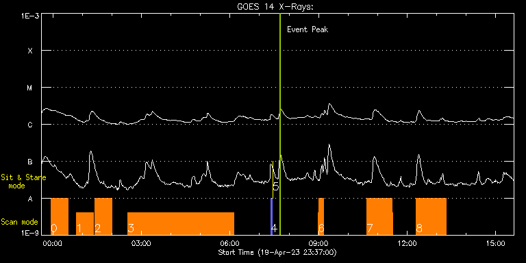EIS Observation timeline overlay to GOES-Xray curve Code 1" 2" 40" 266" EIS Observations list for this event: STUDY ACRONYM ID DATE OBSERVED DESCRIPTION NOAA# TARGET 0 EL_FULL_CCD_RASTER | 85890 | 2023/04/19 23:56:13 | EIS observations in support of total e | | Active Region TIMELINE ID DATE OBSERVED FITS FILE XCEN (+W/-E) YCEN (+N/-S) DUR ----------------------------------------------------------------------------------------------------------------- 85890 | 2023/04/19 23:56:13.000 | eis_l0_20230419_235613.fits.gz | -20.27 | -1616.74 | 35m11s 1 EL_FULL_CCD_RASTER | 85891 | 2023/04/20 00:47:40 | EIS observations in support of total e | | Active Region TIMELINE ID DATE OBSERVED FITS FILE XCEN (+W/-E) YCEN (+N/-S) DUR ----------------------------------------------------------------------------------------------------------------- 85891 | 2023/04/20 00:47:40.000 | eis_l0_20230420_004740.fits.gz | -20.19 | -1616.90 | 35m11s 2 EL_FULL_CCD_RASTER | 85892 | 2023/04/20 01:25:13 | EIS observations in support of total e | | Active Region TIMELINE ID DATE OBSERVED FITS FILE XCEN (+W/-E) YCEN (+N/-S) DUR ----------------------------------------------------------------------------------------------------------------- 85892 | 2023/04/20 01:25:13.000 | eis_l0_20230420_012513.fits.gz | -20.27 | -1616.90 | 35m11s 3 dhb_polar_scan | 85886 | 2023/04/20 02:32:13 | EIS observations in support of total e | | Quiet Sun TIMELINE ID DATE OBSERVED FITS FILE XCEN (+W/-E) YCEN (+N/-S) DUR ----------------------------------------------------------------------------------------------------------------- 85886 | 2023/04/20 02:32:13.000 | eis_l0_20230420_023213.fits.gz | 212.78 | -891.72 | 3h35m42s 4 PRY_slot_contextLITE | 85879 | 2023/04/20 07:23:20 | Pointing Monitoring | 3283 | Active Region TIMELINE ID DATE OBSERVED FITS FILE XCEN (+W/-E) YCEN (+N/-S) DUR ----------------------------------------------------------------------------------------------------------------- 85879 | 2023/04/20 07:23:20.000 | eis_l0_20230420_072320.fits.gz | 0.68 | -194.92 | 2m56s 5 XRT_synop_AIA | 85880 | 2023/04/20 07:26:34 | Pointing Monitoring | 3283 | Quiet Sun TIMELINE ID DATE OBSERVED FITS FILE XCEN (+W/-E) YCEN (+N/-S) DUR ----------------------------------------------------------------------------------------------------------------- 85880 | 2023/04/20 07:26:34.000 | eis_l0_20230420_072634.fits.gz | 0.43 | -207.00 | 10s 6 DRW_Alf_01 | 85884 | 2023/04/20 08:59:19 | Detection of the magnetic and velocity | | Active Region TIMELINE ID DATE OBSERVED FITS FILE XCEN (+W/-E) YCEN (+N/-S) DUR ----------------------------------------------------------------------------------------------------------------- 85884 | 2023/04/20 08:59:19.000 | eis_l0_20230420_085919.fits.gz | -171.52 | -365.73 | 1m9s 85884 | 2023/04/20 09:00:31.000 | eis_l0_20230420_090031.fits.gz | -171.37 | -365.73 | 1m8s 85884 | 2023/04/20 09:01:42.000 | eis_l0_20230420_090142.fits.gz | -171.21 | -365.65 | 1m8s 85884 | 2023/04/20 09:02:53.000 | eis_l0_20230420_090253.fits.gz | -170.98 | -365.73 | 1m8s 85884 | 2023/04/20 09:04:04.000 | eis_l0_20230420_090404.fits.gz | -170.82 | -365.73 | 1m9s 85884 | 2023/04/20 09:05:15.000 | eis_l0_20230420_090515.fits.gz | -170.67 | -365.73 | 1m9s 85884 | 2023/04/20 09:06:27.000 | eis_l0_20230420_090627.fits.gz | -170.52 | -365.73 | 1m8s 85884 | 2023/04/20 09:07:38.000 | eis_l0_20230420_090738.fits.gz | -170.36 | -365.73 | 1m8s 85884 | 2023/04/20 09:08:49.000 | eis_l0_20230420_090849.fits.gz | -170.21 | -365.73 | 1m8s 85884 | 2023/04/20 09:10:00.000 | eis_l0_20230420_091000.fits.gz | -170.05 | -365.73 | 22s 7 DRW_Alf_01 | 85893 | 2023/04/20 10:37:13 | Detection of the magnetic and velocity | | Active Region TIMELINE ID DATE OBSERVED FITS FILE XCEN (+W/-E) YCEN (+N/-S) DUR ----------------------------------------------------------------------------------------------------------------- 85893 | 2023/04/20 10:37:13.000 | eis_l0_20230420_103713.fits.gz | -157.92 | -365.58 | 1m8s 85893 | 2023/04/20 10:38:24.000 | eis_l0_20230420_103824.fits.gz | -157.77 | -365.65 | 1m9s 85893 | 2023/04/20 10:39:36.000 | eis_l0_20230420_103936.fits.gz | -157.62 | -365.58 | 1m8s 85893 | 2023/04/20 10:40:47.000 | eis_l0_20230420_104047.fits.gz | -157.38 | -365.65 | 1m8s 85893 | 2023/04/20 10:41:58.000 | eis_l0_20230420_104158.fits.gz | -157.23 | -365.65 | 1m8s 85893 | 2023/04/20 10:43:09.000 | eis_l0_20230420_104309.fits.gz | -157.07 | -365.65 | 1m9s 85893 | 2023/04/20 10:44:20.000 | eis_l0_20230420_104420.fits.gz | -156.92 | -365.65 | 1m9s 85893 | 2023/04/20 10:45:32.000 | eis_l0_20230420_104532.fits.gz | -156.77 | -365.73 | 1m8s 85893 | 2023/04/20 10:46:43.000 | eis_l0_20230420_104643.fits.gz | -156.61 | -365.65 | 1m9s 85893 | 2023/04/20 10:47:54.000 | eis_l0_20230420_104754.fits.gz | -156.53 | -365.65 | 1m9s 85893 | 2023/04/20 10:49:05.000 | eis_l0_20230420_104905.fits.gz | -156.30 | -365.73 | 1m9s 85893 | 2023/04/20 10:50:17.000 | eis_l0_20230420_105017.fits.gz | -156.07 | -365.65 | 1m8s 85893 | 2023/04/20 10:51:28.000 | eis_l0_20230420_105128.fits.gz | -155.99 | -365.65 | 1m8s 85893 | 2023/04/20 10:52:39.000 | eis_l0_20230420_105239.fits.gz | -155.84 | -365.58 | 1m9s 85893 | 2023/04/20 10:53:50.000 | eis_l0_20230420_105350.fits.gz | -155.61 | -365.65 | 1m9s 85893 | 2023/04/20 10:55:02.000 | eis_l0_20230420_105502.fits.gz | -155.53 | -365.65 | 1m8s 85893 | 2023/04/20 10:56:13.000 | eis_l0_20230420_105613.fits.gz | -155.30 | -365.73 | 1m9s 85893 | 2023/04/20 10:57:24.000 | eis_l0_20230420_105724.fits.gz | -155.07 | -365.73 | 1m9s 85893 | 2023/04/20 10:58:36.000 | eis_l0_20230420_105836.fits.gz | -154.99 | -365.73 | 1m8s 85893 | 2023/04/20 10:59:47.000 | eis_l0_20230420_105947.fits.gz | -154.83 | -365.81 | 1m8s 85893 | 2023/04/20 11:00:58.000 | eis_l0_20230420_110058.fits.gz | -154.60 | -365.81 | 1m8s 85893 | 2023/04/20 11:02:09.000 | eis_l0_20230420_110209.fits.gz | -154.45 | -365.81 | 1m9s 85893 | 2023/04/20 11:03:20.000 | eis_l0_20230420_110320.fits.gz | -154.37 