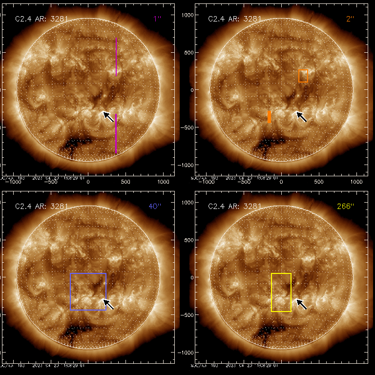 EIS Observation timeline overlay to GOES-Xray curve Code 1" 2" 40" 266" EIS Observations list for this event: STUDY ACRONYM ID DATE OBSERVED DESCRIPTION NOAA# TARGET 0 PRY_slot_contextLITE | 85879 | 2023/04/20 07:23:20 | Pointing Monitoring | 3283 | Active Region TIMELINE ID DATE OBSERVED FITS FILE XCEN (+W/-E) YCEN (+N/-S) DUR ----------------------------------------------------------------------------------------------------------------- 85879 | 2023/04/20 07:23:20.000 | eis_l0_20230420_072320.fits.gz | 0.68 | -194.92 | 2m56s 1 XRT_synop_AIA | 85880 | 2023/04/20 07:26:34 | Pointing Monitoring | 3283 | Quiet Sun TIMELINE ID DATE OBSERVED FITS FILE XCEN (+W/-E) YCEN (+N/-S) DUR ----------------------------------------------------------------------------------------------------------------- 85880 | 2023/04/20 07:26:34.000 | eis_l0_20230420_072634.fits.gz | 0.43 | -207.00 | 10s 2 DRW_Alf_01 | 85884 | 2023/04/20 08:59:19 | Detection of the magnetic and velocity | | Active Region TIMELINE ID DATE OBSERVED FITS FILE XCEN (+W/-E) YCEN (+N/-S) DUR ----------------------------------------------------------------------------------------------------------------- 85884 | 2023/04/20 08:59:19.000 | eis_l0_20230420_085919.fits.gz | -171.52 | -365.73 | 1m9s 85884 | 2023/04/20 09:00:31.000 | eis_l0_20230420_090031.fits.gz | -171.37 | -365.73 | 1m8s 85884 | 2023/04/20 09:01:42.000 | eis_l0_20230420_090142.fits.gz | -171.21 | -365.65 | 1m8s 85884 | 2023/04/20 09:02:53.000 | eis_l0_20230420_090253.fits.gz | -170.98 | -365.73 | 1m8s 85884 | 2023/04/20 09:04:04.000 | eis_l0_20230420_090404.fits.gz | -170.82 | -365.73 | 1m9s 85884 | 2023/04/20 09:05:15.000 | eis_l0_20230420_090515.fits.gz | -170.67 | -365.73 | 1m9s 85884 | 2023/04/20 09:06:27.000 | eis_l0_20230420_090627.fits.gz | -170.52 | -365.73 | 1m8s 85884 | 2023/04/20 09:07:38.000 | eis_l0_20230420_090738.fits.gz | -170.36 | -365.73 | 1m8s 85884 | 2023/04/20 09:08:49.000 | eis_l0_20230420_090849.fits.gz | -170.21 | -365.73 | 1m8s 85884 | 2023/04/20 09:10:00.000 | eis_l0_20230420_091000.fits.gz | -170.05 | -365.73 | 22s 3 DRW_Alf_01 | 85893 | 2023/04/20 10:37:13 | Detection of the magnetic and velocity | | Active Region TIMELINE ID DATE OBSERVED FITS FILE XCEN (+W/-E) YCEN (+N/-S) DUR ----------------------------------------------------------------------------------------------------------------- 85893 | 2023/04/20 10:37:13.000 | eis_l0_20230420_103713.fits.gz | -157.92 | -365.58 | 1m8s 85893 | 2023/04/20 10:38:24.000 | eis_l0_20230420_103824.fits.gz | -157.77 | -365.65 | 1m9s 85893 | 2023/04/20 10:39:36.000 | eis_l0_20230420_103936.fits.gz | -157.62 | -365.58 | 1m8s 85893 | 2023/04/20 10:40:47.000 | eis_l0_20230420_104047.fits.gz | -157.38 | -365.65 | 1m8s 85893 | 2023/04/20 10:41:58.000 | eis_l0_20230420_104158.fits.gz | -157.23 | -365.65 | 1m8s 85893 | 2023/04/20 10:43:09.000 | eis_l0_20230420_104309.fits.gz | -157.07 | -365.65 | 1m9s 85893 | 2023/04/20 10:44:20.000 | eis_l0_20230420_104420.fits.gz | -156.92 | -365.65 | 1m9s 85893 | 2023/04/20 10:45:32.000 | eis_l0_20230420_104532.fits.gz | -156.77 | -365.73 | 1m8s 85893 | 2023/04/20 10:46:43.000 | eis_l0_20230420_104643.fits.gz | -156.61 | -365.65 | 1m9s 85893 | 2023/04/20 10:47:54.000 | eis_l0_20230420_104754.fits.gz | -156.53 | -365.65 | 1m9s 85893 | 2023/04/20 10:49:05.000 | eis_l0_20230420_104905.fits.gz | -156.30 | -365.73 | 1m9s 85893 | 2023/04/20 10:50:17.000 | eis_l0_20230420_105017.fits.gz | -156.07 | -365.65 | 1m8s 85893 | 2023/04/20 10:51:28.000 | eis_l0_20230420_105128.fits.gz | -155.99 | -365.65 | 1m8s 85893 | 2023/04/20 10:52:39.000 | eis_l0_20230420_105239.fits.gz | -155.84 | -365.58 | 1m9s 85893 | 2023/04/20 10:53:50.000 | eis_l0_20230420_105350.fits.gz | -155.61 | -365.65 | 1m9s 85893 | 2023/04/20 10:55:02.000 | eis_l0_20230420_105502.fits.gz | -155.53 | -365.65 | 1m8s 85893 | 2023/04/20 10:56:13.000 | eis_l0_20230420_105613.fits.gz | -155.30 | -365.73 | 1m9s 85893 | 2023/04/20 10:57:24.000 | eis_l0_20230420_105724.fits.gz | -155.07 | -365.73 | 1m9s 85893 | 2023/04/20 10:58:36.000 | eis_l0_20230420_105836.fits.gz | -154.99 | -365.73 | 1m8s 85893 | 2023/04/20 10:59:47.000 | eis_l0_20230420_105947.fits.gz | -154.83 | -365.81 | 1m8s 85893 | 2023/04/20 11:00:58.000 | eis_l0_20230420_110058.fits.gz | -154.60 | -365.81 | 1m8s 85893 | 2023/04/20 11:02:09.000 | eis_l0_20230420_110209.fits.gz | -154.45 | -365.81 | 1m9s 85893 | 2023/04/20 11:03:20.000 | eis_l0_20230420_110320.fits.gz | -154.37 | -365.73 | 1m9s 85893 | 2023/04/20 11:04:32.000 | eis_l0_20230420_110432.fits.gz | -154.22 | -365.73 | 1m8s 85893 | 2023/04/20 11:05:43.000 | eis_l0_20230420_110543.fits.gz | -154.06 | -365.65 | 1m9s 85893 | 2023/04/20 11:06:55.000 | eis_l0_20230420_110655.fits.gz | -153.91 | -365.65 | 1m8s 85893 | 2023/04/20 11:08:06.000 | eis_l0_20230420_110806.fits.gz | -153.68 | -365.73 | 1m8s 85893 | 2023/04/20 11:09:17.000 | eis_l0_20230420_110917.fits.gz | -153.44 | -365.73 | 1m8s 85893 | 2023/04/20 11:10:28.000 | eis_l0_20230420_111028.fits.gz | -153.37 | -365.73 | 1m9s 85893 | 2023/04/20 11:11:40.000 | eis_l0_20230420_111140.fits.gz | -153.21 | -365.73 | 1m8s 85893 | 2023/04/20 11:12:51.000 | eis_l0_20230420_111251.fits.gz | -152.98 | -365.81 | 1m8s 85893 | 2023/04/20 11:14:02.000 | eis_l0_20230420_111402.fits.gz | -152.83 | -365.73 | 1m9s 85893 | 2023/04/20 11:15:14.000 | eis_l0_20230420_111514.fits.gz | -152.67 | -365.73 | 1m8s 85893 | 2023/04/20 11:16:25.000 | eis_l0_20230420_111625.fits.gz | -152.52 | -365.73 | 1m8s 85893 | 2023/04/20 11:17:36.000 | eis_l0_20230420_111736.fits.gz | -152.29 | -365.73 | 1m8s 85893 | 2023/04/20 11:18:47.000 | eis_l0_20230420_111847.fits.gz | -152.21 | -365.65 | 1m9s 85893 | 2023/04/20 11:19:59.000 | eis_l0_20230420_111959.fits.gz | -152.05 | -365.73 | 1m8s 85893 | 2023/04/20 11:21:10.000 | eis_l0_20230420_112110.fits.gz | -151.82 | -365.73 | 1m8s 85893 | 2023/04/20 11:22:21.000 | eis_l0_20230420_112221.fits.gz | -151.74 | -365.73 | 1m9s 85893 | 2023/04/20 11:23:32.000 | eis_l0