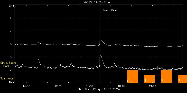 EIS Observation timeline overlay to GOES-Xray curve Code 1" 2" 40" 266" EIS Observations list for this event: STUDY ACRONYM ID DATE OBSERVED DESCRIPTION NOAA# TARGET 0 HPW021VEL260x512v2 | 85960 | 2023/04/22 18:34:42 | Active Region Studies | 3283 | Active Region TIMELINE ID DATE OBSERVED FITS FILE XCEN (+W/-E) YCEN (+N/-S) DUR ----------------------------------------------------------------------------------------------------------------- 85960 | 2023/04/22 18:34:42.000 | eis_l0_20230422_183442.fits.gz | 365.61 | -447.42 | 1h0m45s 1 HPW021VEL260x512v2 | 85961 | 2023/04/22 20:11:42 | Active Region Studies | 3283 | Active Region TIMELINE ID DATE OBSERVED FITS FILE XCEN (+W/-E) YCEN (+N/-S) DUR ----------------------------------------------------------------------------------------------------------------- 85961 | 2023/04/22 20:11:42.000 | eis_l0_20230422_201142.fits.gz | 378.05 | -448.19 | 1h0m45s 2 HPW021VEL260x512v2 | 85962 | 2023/04/22 21:48:42 | Active Region Studies | 3283 | Active Region TIMELINE ID DATE OBSERVED FITS FILE XCEN (+W/-E) YCEN (+N/-S) DUR ----------------------------------------------------------------------------------------------------------------- 85962 | 2023/04/22 21:48:42.000 | eis_l0_20230422_214842.fits.gz | 390.33 | -448.65 | 1h0m45s 3 HPW021VEL260x512v2 | 85963 | 2023/04/22 23:24:42 | Active Region Studies | 3283 | Active Region TIMELINE ID DATE OBSERVED FITS FILE XCEN (+W/-E) YCEN (+N/-S) DUR ----------------------------------------------------------------------------------------------------------------- 85963 | 2023/04/22 23:24:42.000 | eis_l0_20230422_232442.fits.gz | 402.46 | -449.35 | 1h0m44s : Check study information : Download file : View thumbnails For this event, also check for: