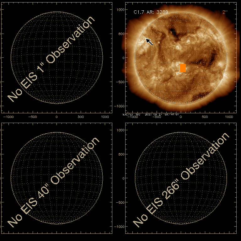 EIS Observation timeline overlay to GOES-Xray curve Code 1" 2" 40" 266" EIS Observations list for this event: STUDY ACRONYM ID DATE OBSERVED DESCRIPTION NOAA# TARGET 0 EL_DHB_01_v2 | 86022 | 2023/04/27 11:27:19 | Coronal Magnetic Field Measurements in | | Flare TIMELINE ID DATE OBSERVED FITS FILE XCEN (+W/-E) YCEN (+N/-S) DUR ----------------------------------------------------------------------------------------------------------------- 86022 | 2023/04/27 11:27:19.000 | eis_l0_20230427_112719.fits.gz | 18.67 | -217.89 | 6m56s 86022 | 2023/04/27 11:34:17.000 | eis_l0_20230427_113417.fits.gz | 19.59 | -217.89 | 6m56s 86022 | 2023/04/27 11:41:15.000 | eis_l0_20230427_114115.fits.gz | 20.75 | -217.97 | 6m56s 86022 | 2023/04/27 11:48:14.000 | eis_l0_20230427_114814.fits.gz | 21.68 | -217.97 | 6m55s 86022 | 2023/04/27 11:55:12.000 | eis_l0_20230427_115512.fits.gz | 22.76 | -217.97 | 6m55s 86022 | 2023/04/27 12:02:10.000 | eis_l0_20230427_120210.fits.gz | 23.76 | -218.05 | 6m55s 86022 | 2023/04/27 12:09:07.000 | eis_l0_20230427_120907.fits.gz | 24.69 | -217.97 | 6m55s 86022 | 2023/04/27 12:16:05.000 | eis_l0_20230427_121605.fits.gz | 25.77 | -218.05 | 6m56s 86022 | 2023/04/27 12:23:04.000 | eis_l0_20230427_122304.fits.gz | 26.85 | -218.05 | 6m55s 86022 | 2023/04/27 12:30:02.000 | eis_l0_20230427_123002.fits.gz | 27.78 | -218.05 | 6m55s 1 EL_DHB_01_v2 | 86023 | 2023/04/27 13:05:43 | Coronal Magnetic Field Measurements in | | Flare TIMELINE ID DATE OBSERVED FITS FILE XCEN (+W/-E) YCEN (+N/-S) DUR ----------------------------------------------------------------------------------------------------------------- 86023 | 2023/04/27 13:05:43.000 | eis_l0_20230427_130543.fits.gz | 32.96 | -217.97 | 6m55s 86023 | 2023/04/27 13:12:40.000 | eis_l0_20230427_131240.fits.gz | 34.04 | -218.12 | 6m55s 86023 | 2023/04/27 13:19:38.000 | eis_l0_20230427_131938.fits.gz | 35.04 | -218.12 | 6m56s 86023 | 2023/04/27 13:26:36.000 | eis_l0_20230427_132636.fits.gz | 36.05 | -218.20 | 6m55s 86023 | 2023/04/27 13:33:34.000 | eis_l0_20230427_133334.fits.gz | 37.05 | -218.12 | 6m56s 86023 | 2023/04/27 13:40:33.000 | eis_l0_20230427_134033.fits.gz | 38.06 | -218.20 | 6m55s 86023 | 2023/04/27 13:47:30.000 | eis_l0_20230427_134730.fits.gz | 39.06 | -218.20 | 6m56s 86023 | 2023/04/27 13:54:29.000 | eis_l0_20230427_135429.fits.gz | 40.06 | -218.20 | 6m55s 86023 | 2023/04/27 14:01:27.000 | eis_l0_20230427_140127.fits.gz | 41.15 | -218.28 | 6m55s 86023 | 2023/04/27 14:08:25.000 | eis_l0_20230427_140825.fits.gz | 42.15 | -218.28 | 6m54s 2 EL_DHB_01_v2 | 86024 | 2023/04/27 14:44:13 | Coronal Magnetic Field Measurements in | | Flare TIMELINE ID DATE OBSERVED FITS FILE XCEN (+W/-E) YCEN (+N/-S) DUR ----------------------------------------------------------------------------------------------------------------- 86024 | 2023/04/27 14:44:13.000 | eis_l0_20230427_144413.fits.gz | 47.33 | -218.20 | 6m55s 86024 | 2023/04/27 14:51:11.000 | eis_l0_20230427_145111.fits.gz | 48.33 | -218.35 | 6m55s 86024 | 2023/04/27 14:58:08.000 | eis_l0_20230427_145808.fits.gz | 49.33 | -218.28 | 6m56s 86024 | 2023/04/27 15:05:07.000 | eis_l0_20230427_150507.fits.gz | 50.34 | -218.35 | 6m55s 86024 | 2023/04/27 15:12:05.000 | eis_l0_20230427_151205.fits.gz | 51.34 | -218.35 | 6m55s 86024 | 2023/04/27 15:19:03.000 | eis_l0_20230427_151903.fits.gz | 52.35 | -218.35 | 6m55s 86024 | 2023/04/27 15:26:00.000 | eis_l0_20230427_152600.fits.gz | 53.35 | -218.43 | 6m56s 86024 | 2023/04/27 15:32:59.000 | eis_l0_20230427_153259.fits.gz | 54.35 | -218.35 | 6m55s 86024 | 2023/04/27 15:39:57.000 | eis_l0_20230427_153957.fits.gz | 55.44 | -218.51 | 6m55s 86024 | 2023/04/27 15:46:55.000 | eis_l0_20230427_154655.fits.gz | 56.44 | -218.43 | 6m55s 3 EL_DHB_01_v2 | 86025 | 2023/04/27 16:36:43 | Coronal Magnetic Field Measurements in | | Flare TIMELINE ID DATE OBSERVED FITS FILE XCEN (+W/-E) YCEN (+N/-S) DUR ----------------------------------------------------------------------------------------------------------------- 86025 | 2023/04/27 16:36:43.000 | eis_l0_20230427_163643.fits.gz | 63.62 | -218.51 | 6m55s 86025 | 2023/04/27 16:43:41.000 | eis_l0_20230427_164341.fits.gz | 64.63 | -218.51 | 6m55s 86025 | 2023/04/27 16:50:39.000 | eis_l0_20230427_165039.fits.gz | 65.63 | -218.59 | 6m55s 86025 | 2023/04/27 16:57:37.000 | eis_l0_20230427_165737.fits.gz | 66.64 | -218.59 | 6m55s 86025 | 2023/04/27 17:04:35.000 | eis_l0_20230427_170435.fits.gz | 67.64 | -218.59 | 6m55s 86025 | 2023/04/27 17:11:33.000 | eis_l0_20230427_171133.fits.gz | 68.65 | -218.59 | 6m55s 86025 | 2023/04/27 17:18:31.000 | eis_l0_20230427_171831.fits.gz | 69.65 | -218.59 | 6m55s 86025 | 2023/04/27 17:25:29.000 | eis_l0_20230427_172529.fits.gz | 70.73 | -218.66 | 6m56s : Check study information : Download file : View thumbnails For this event, also check for: